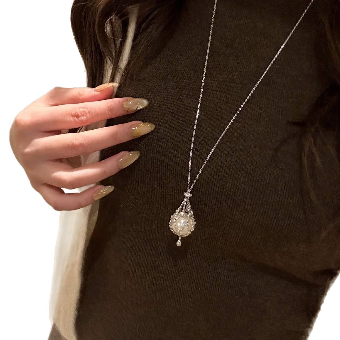 드림 캐처 플래시 다이아몬드 메쉬 백 진주 목걸이 틈새 디자인 탈착식 골드 느낌의 가벼운 럭셔리 스웨터 체인 여성용
