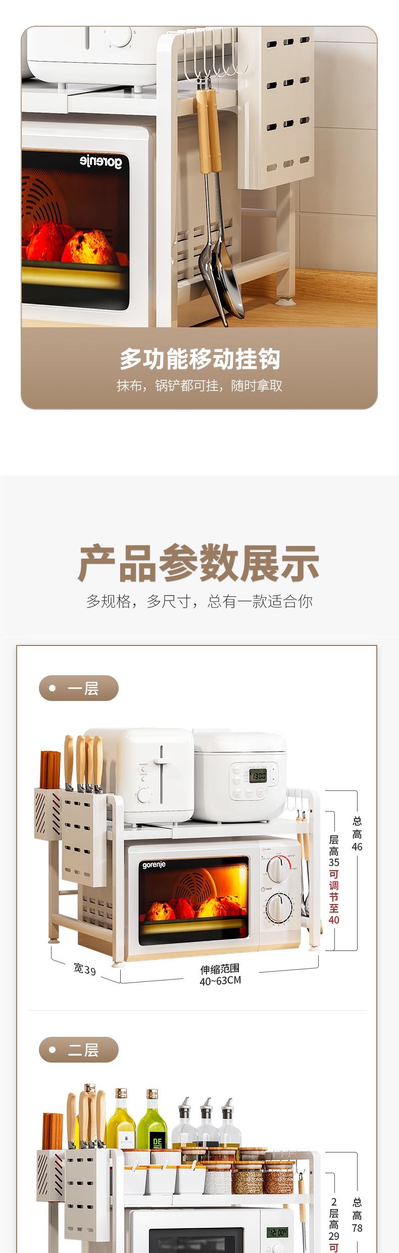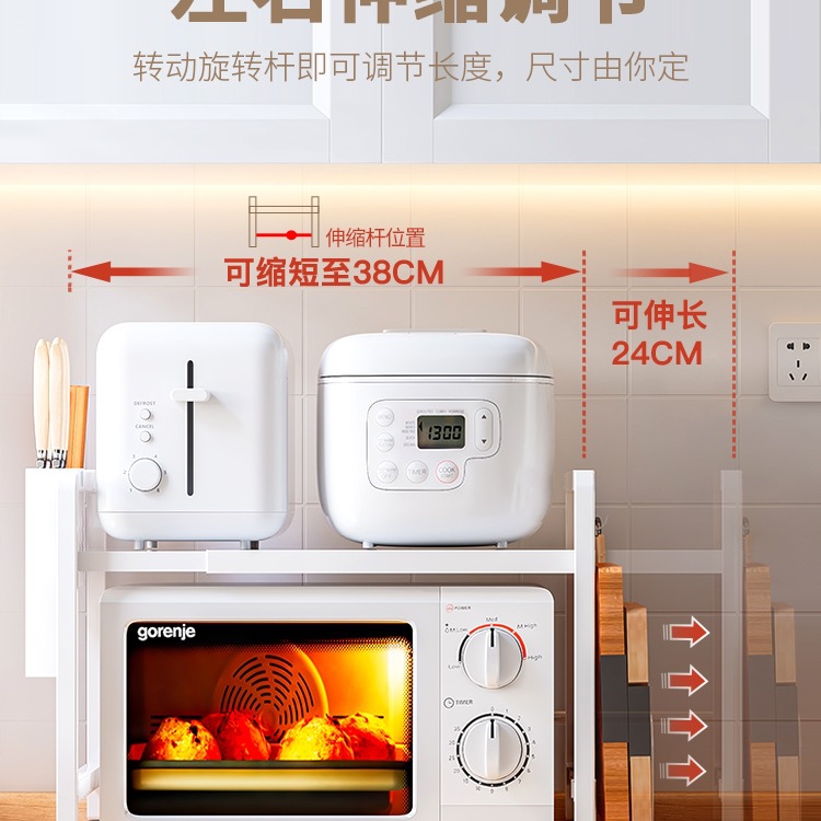 개폐식 주방 선반 전자 레인지 선반 가정용 더블 레이어 조리대 데스크탑 밥솥 스탠드 보관