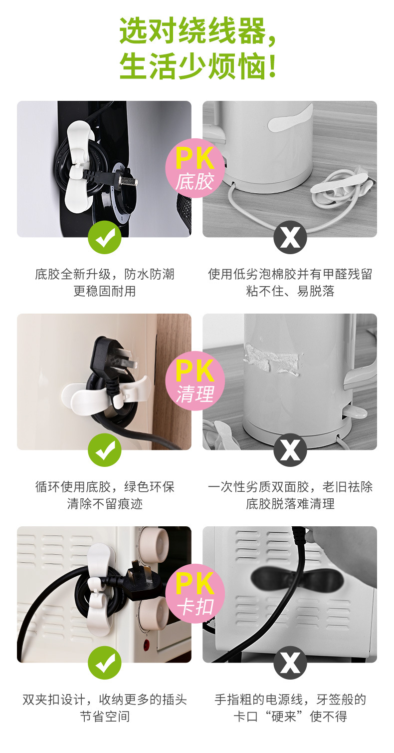 주방수납 케이블 와인더, 가전제품 케이블 정리기, 플러그 홀더, 케이블 클립, 전원 코드 정리용품