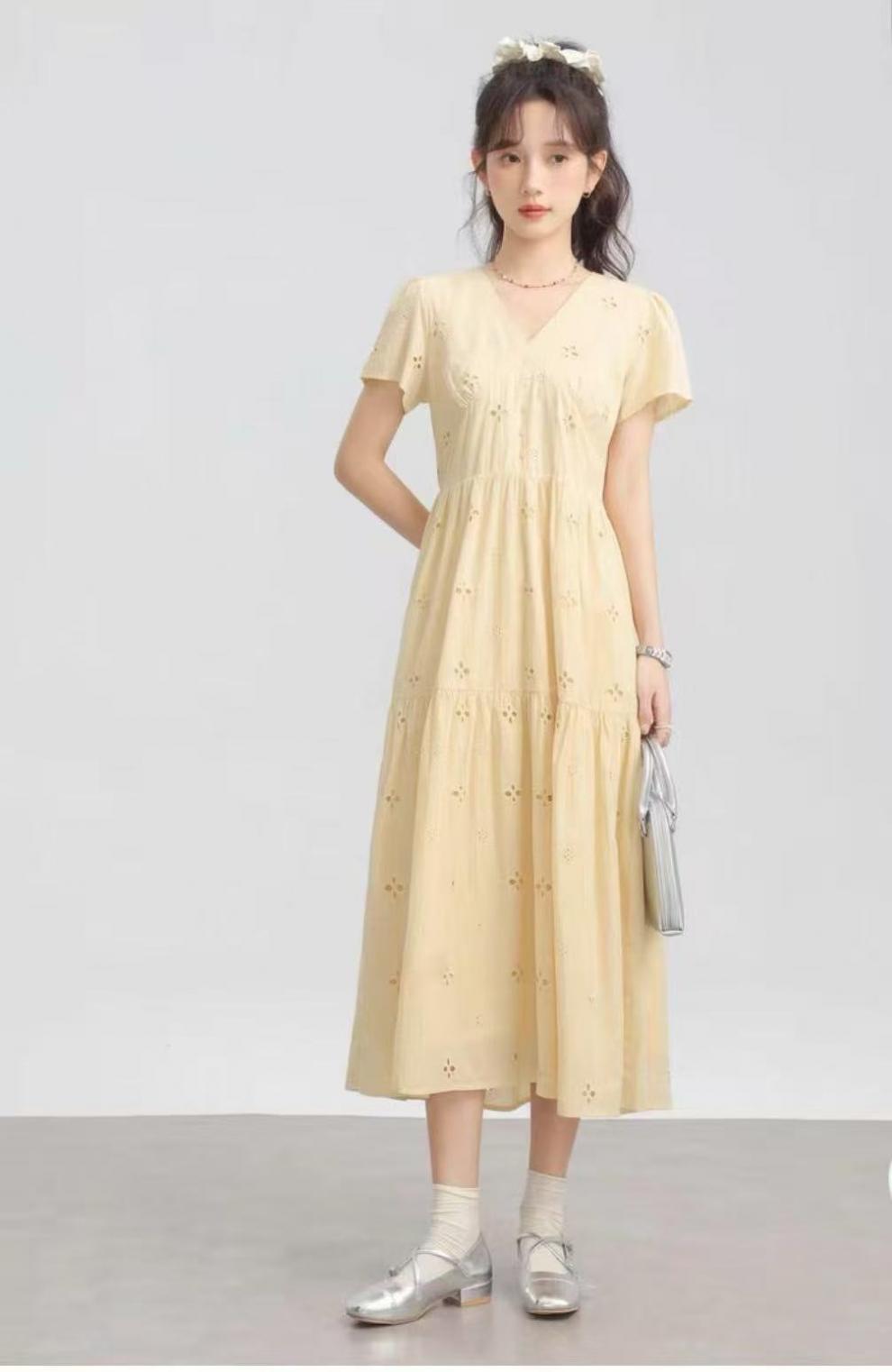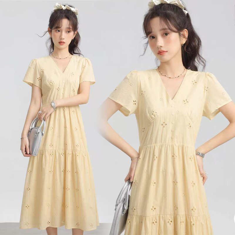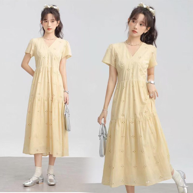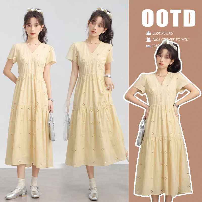 핫맘들을 위한 여름 수유복, 산후 수유복, 프렌치 할로우 자수 브이넥 수유원피스