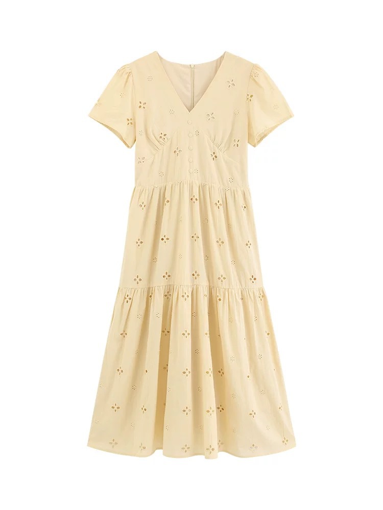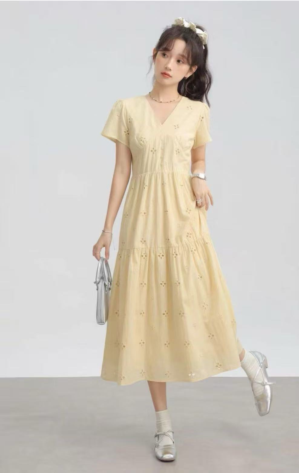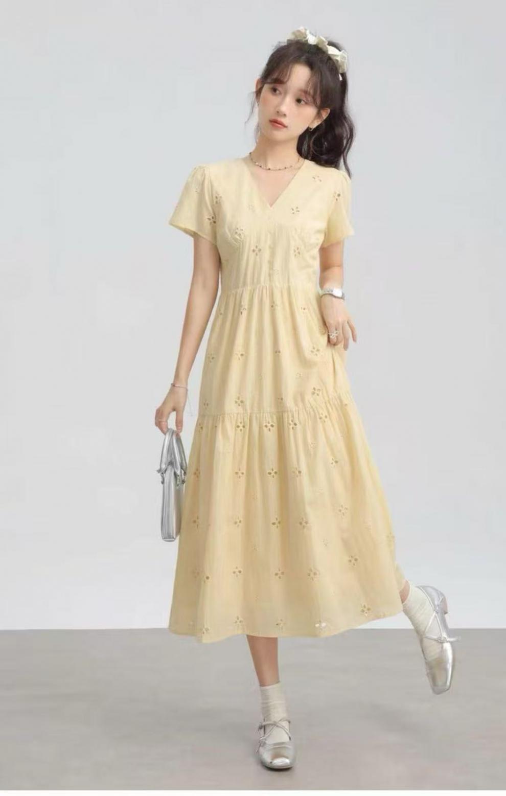 핫맘들을 위한 여름 수유복, 산후 수유복, 프렌치 할로우 자수 브이넥 수유원피스