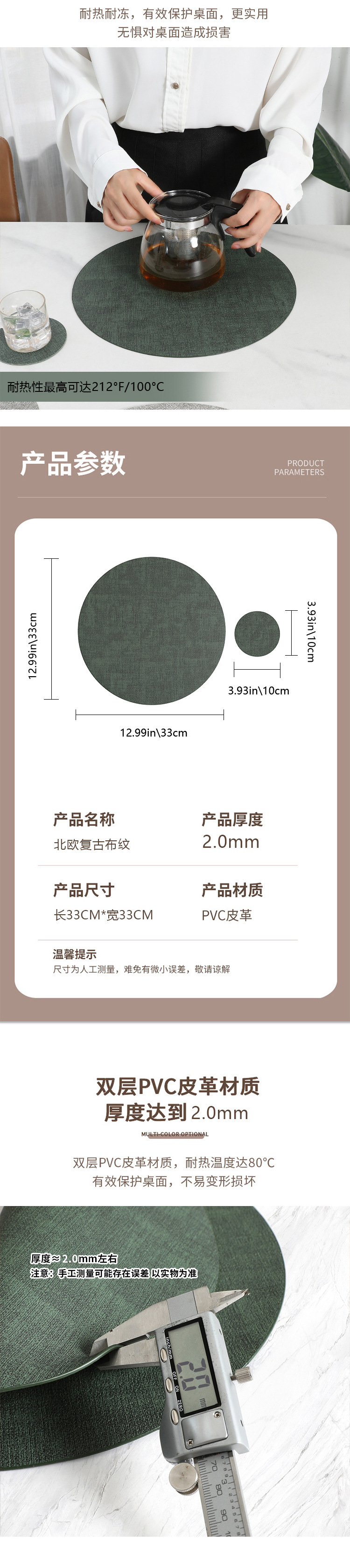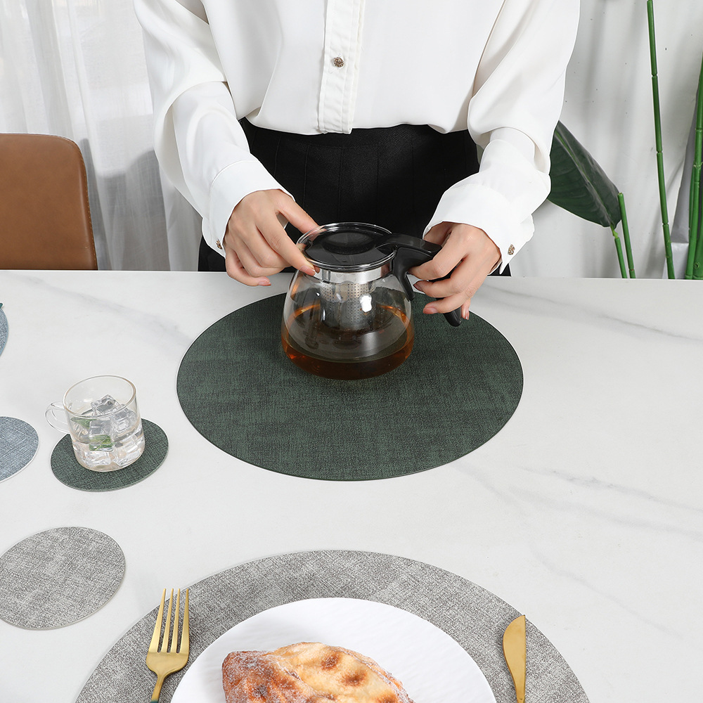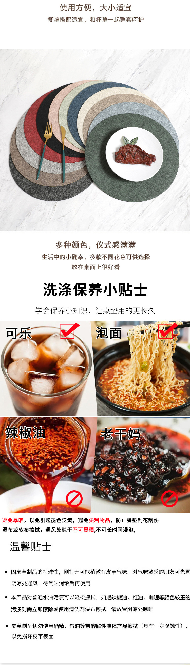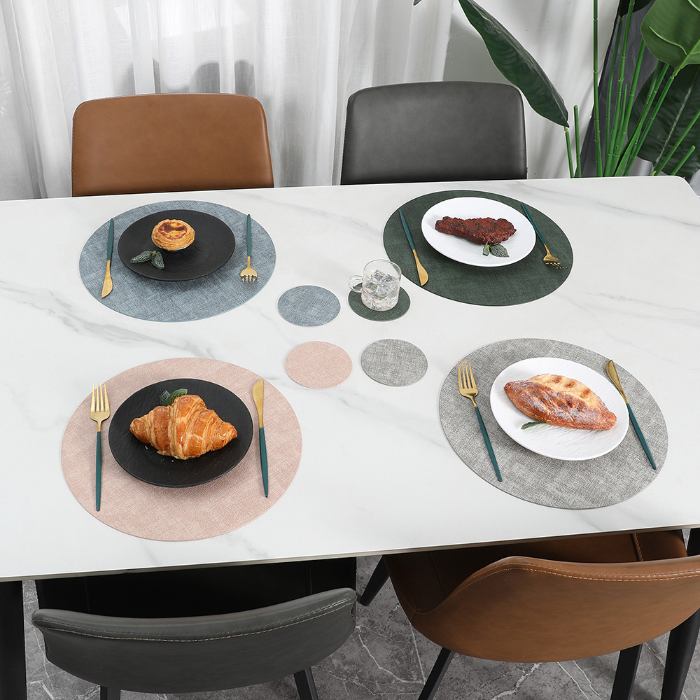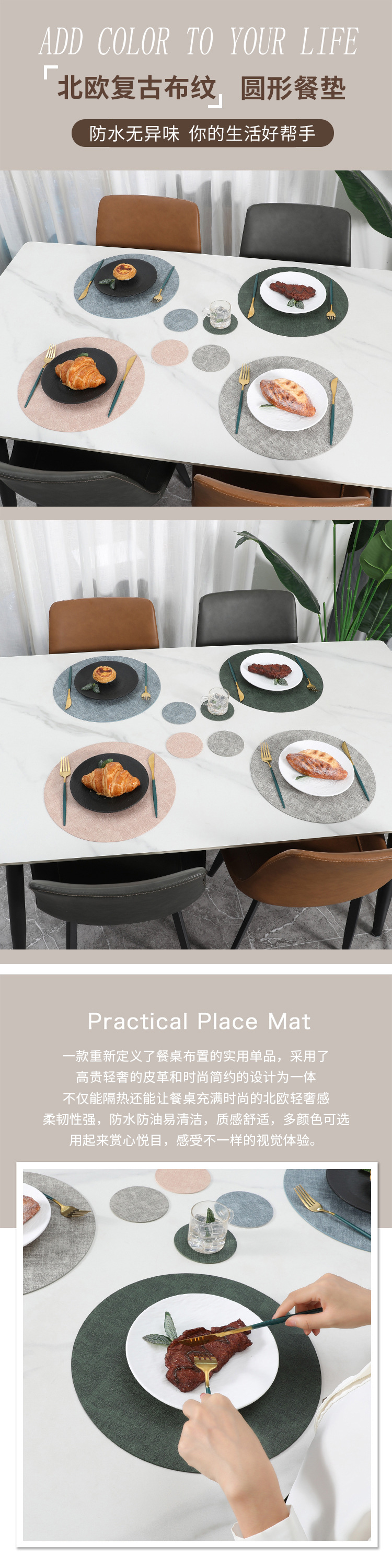 북유럽 인 천 원형 가죽 플레이스 매트 방수 및 내유성 식탁 매트 고급 식탁 매트 화상 방지 단열 매트