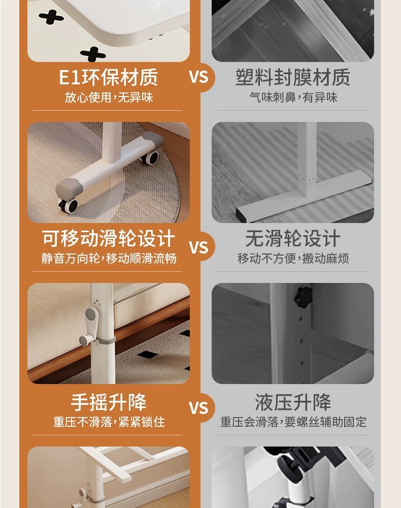 【이동식 + 높이 조절 가능】 원목 무늬 80x60cm
