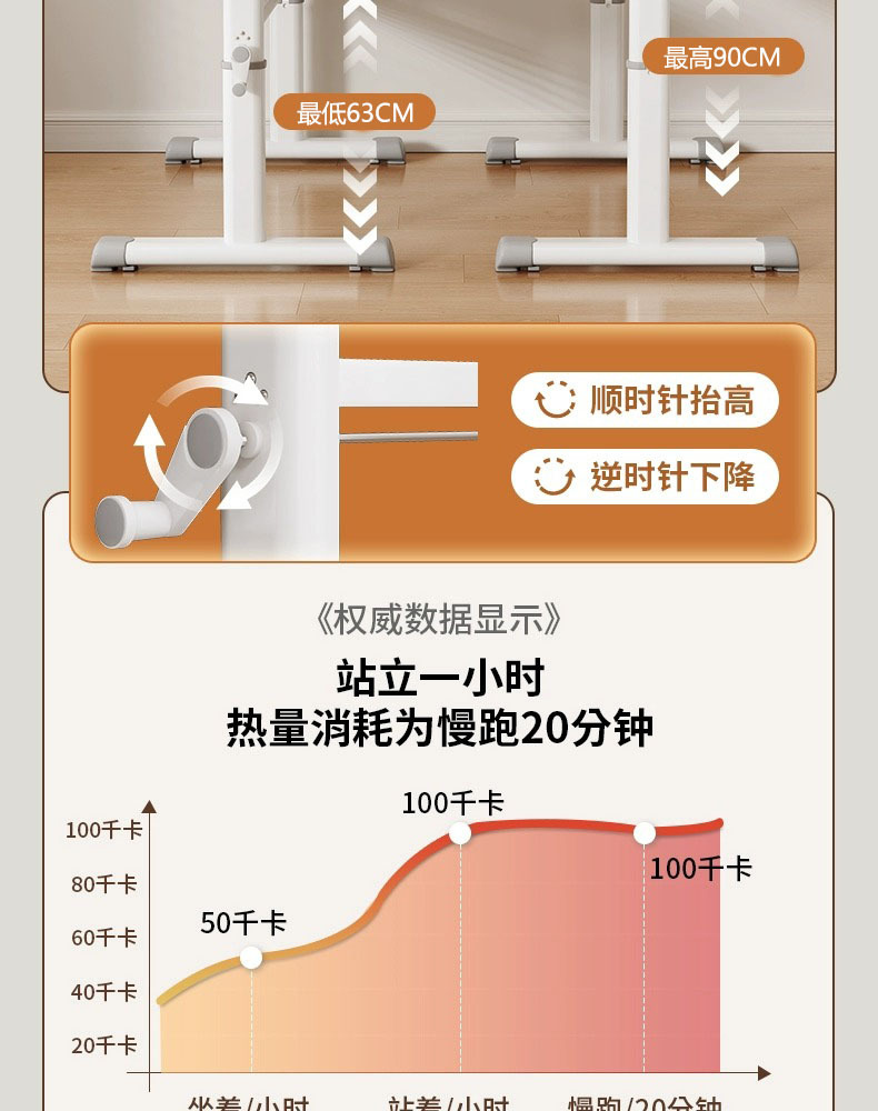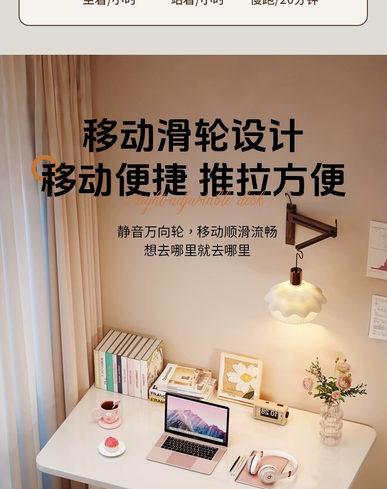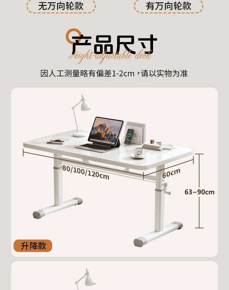 【이동식 + 높이 조절 가능】 따뜻한 흰색 100x60cm