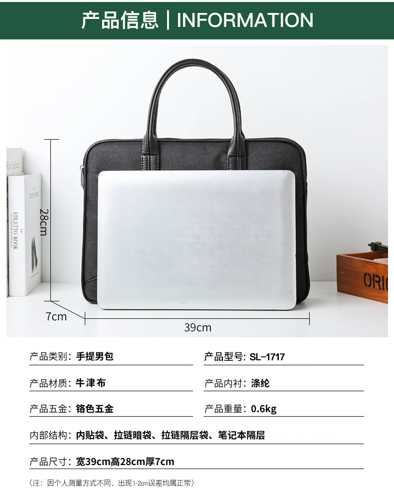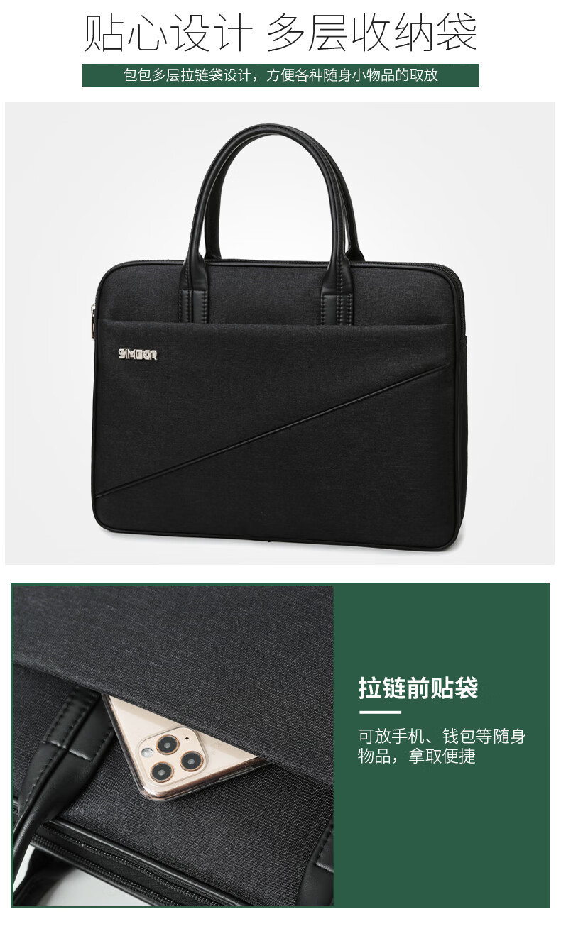 Smol 1717 노트북 가방 남자 사무실 a4 저장 가방 비즈니스 서류 가방 방수 지퍼 가방 인쇄