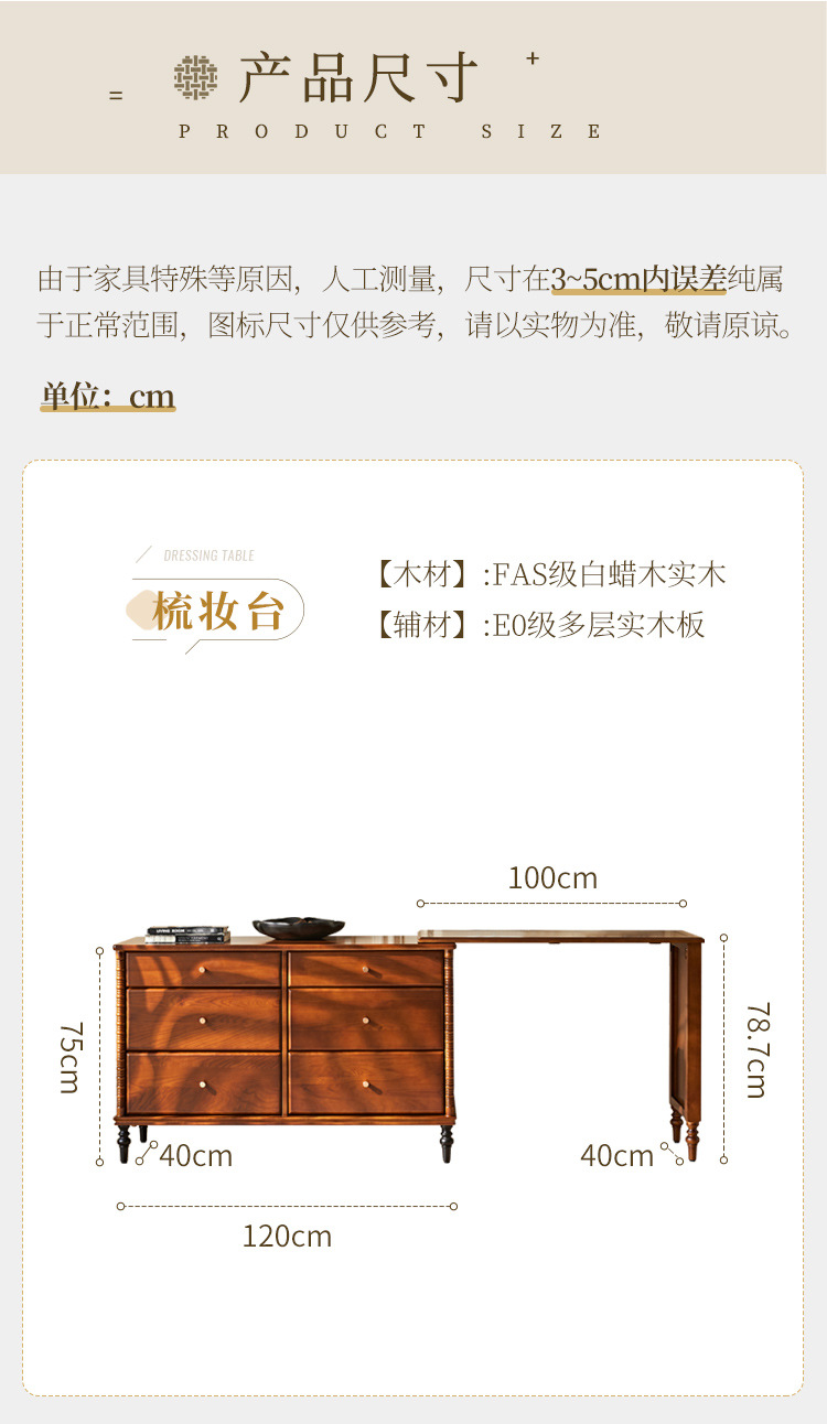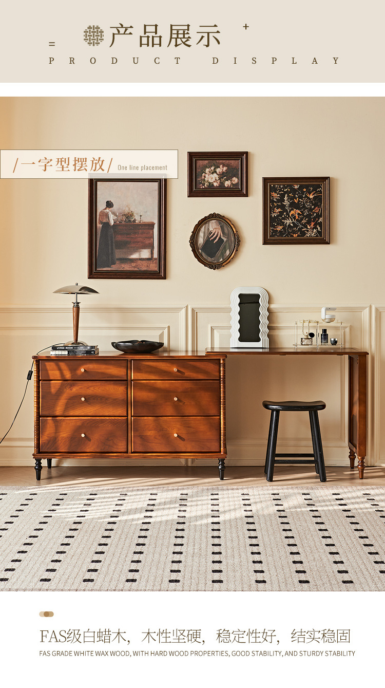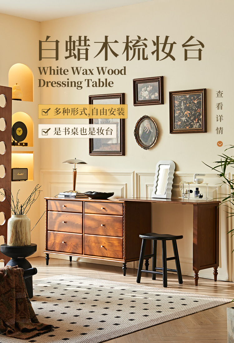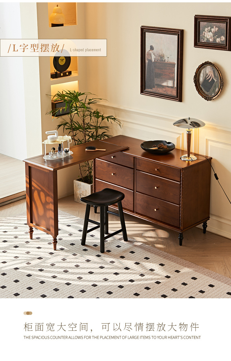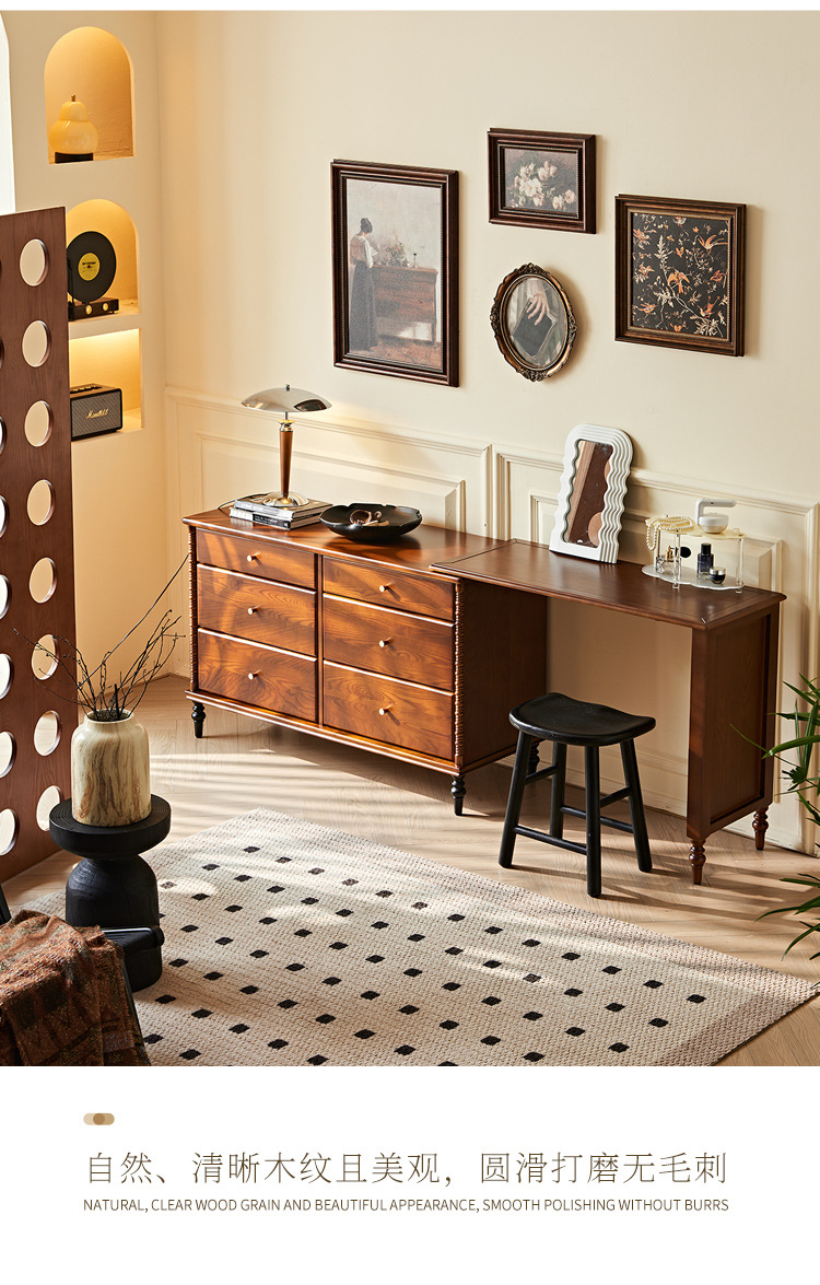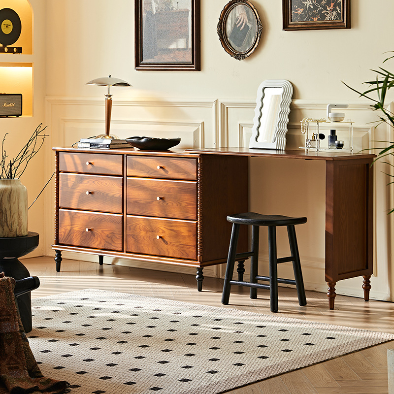 프랑스 복고풍 단단한 나무 서랍 캐비닛 드레싱 테이블 골동품 스타일 홈 침대 옆 개폐식 다기능 스토리지 메이크업 테이블