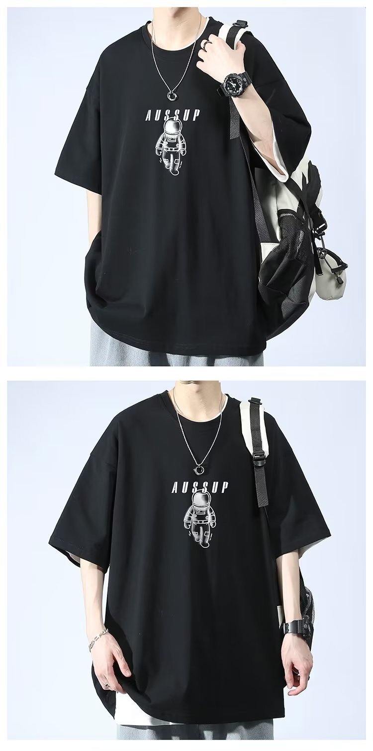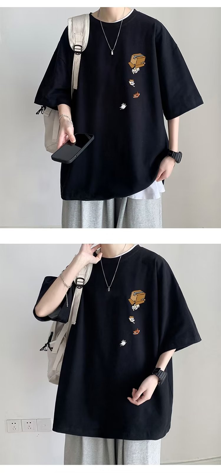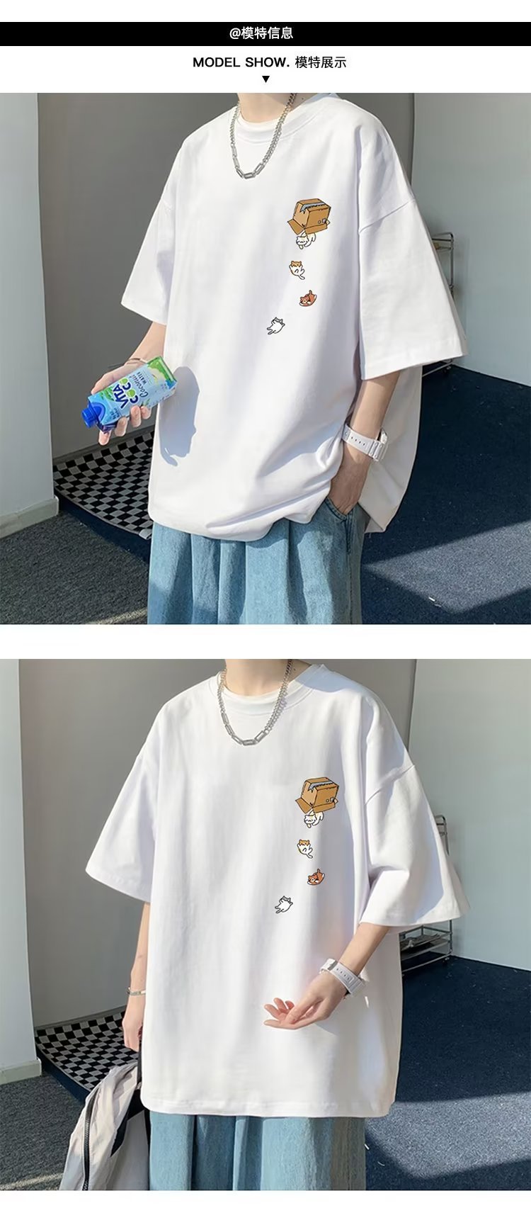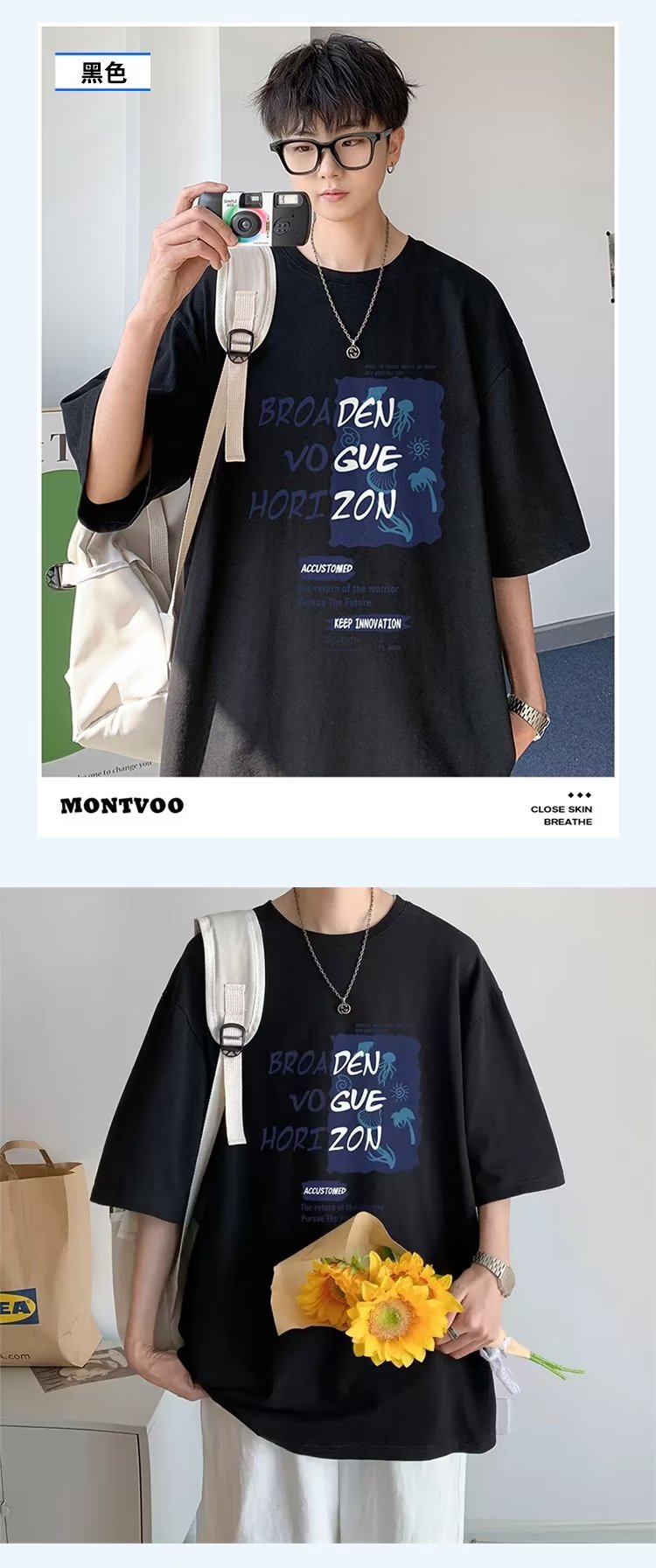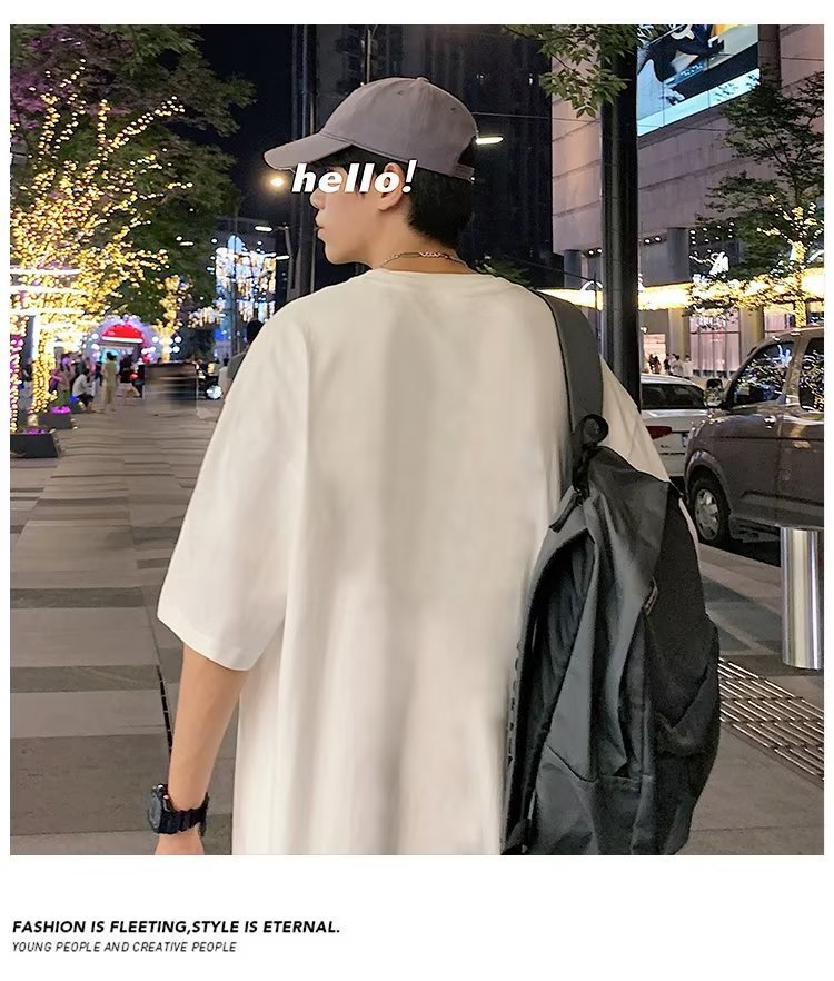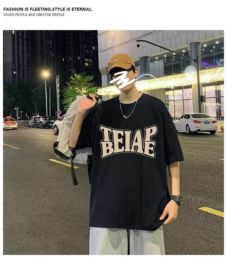 여름 신작 반팔 루즈 티셔츠 남성 트렌디 캐주얼 반팔 트렌디 티셔츠 바닥 셔츠 5부소매 탑