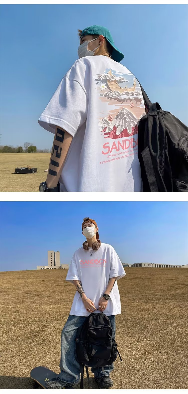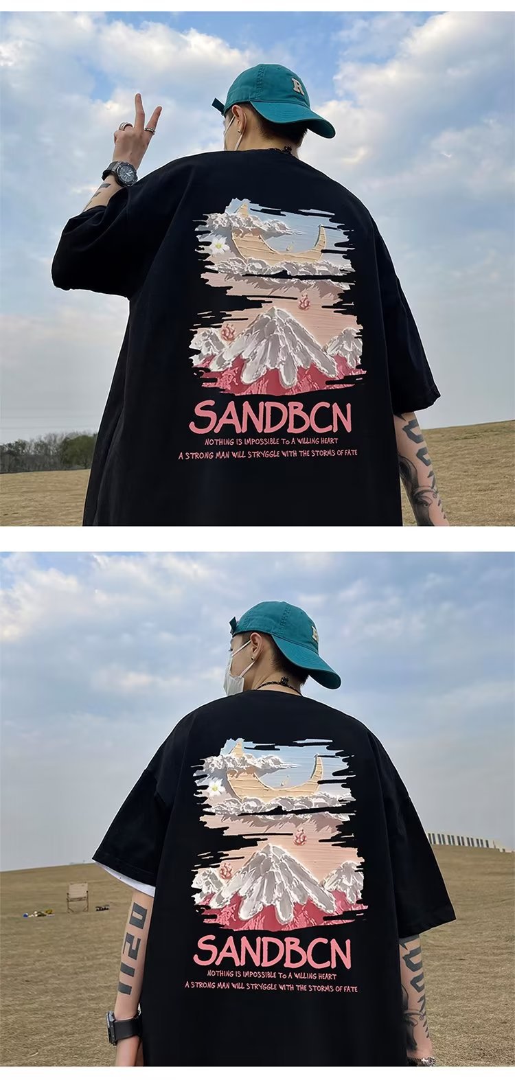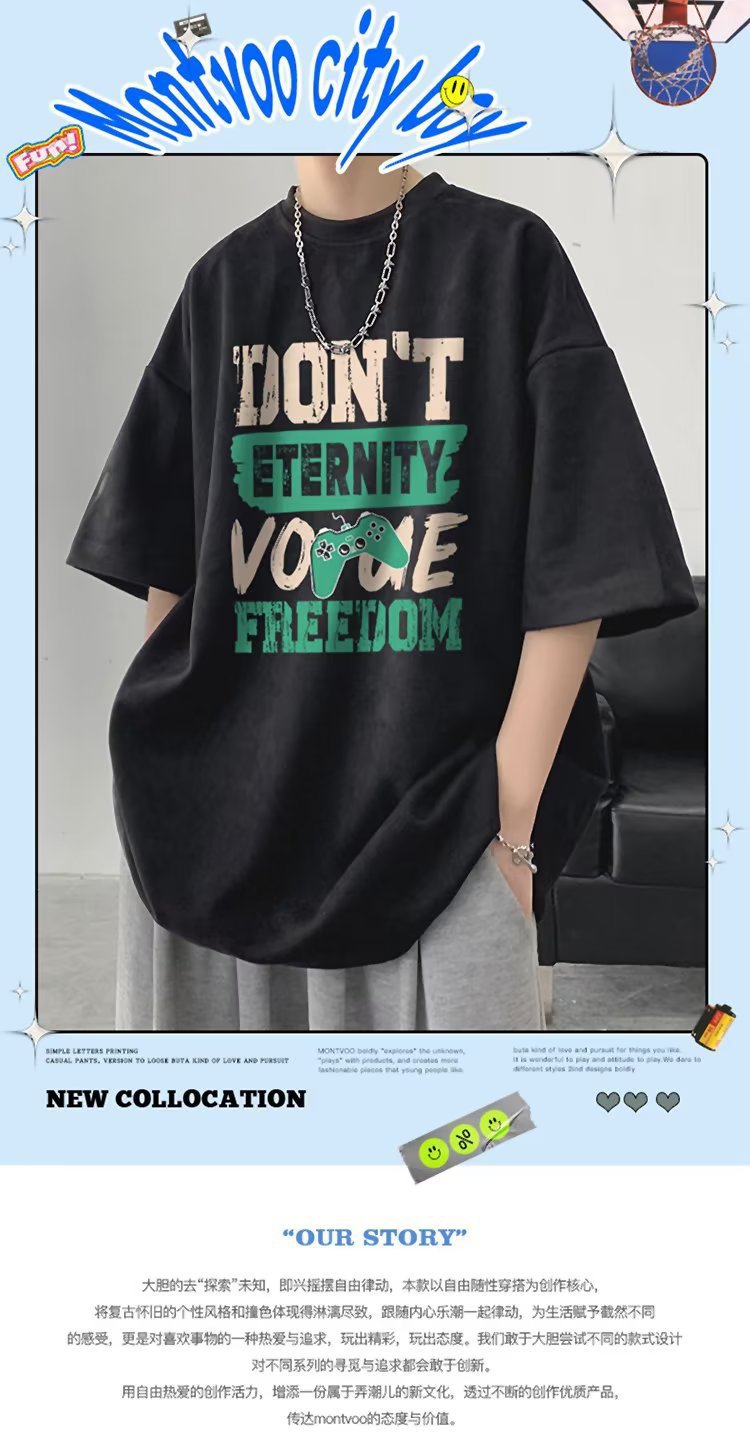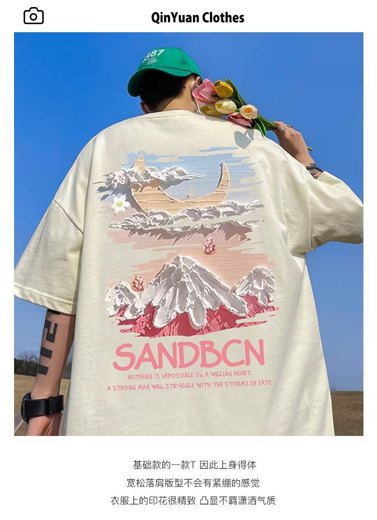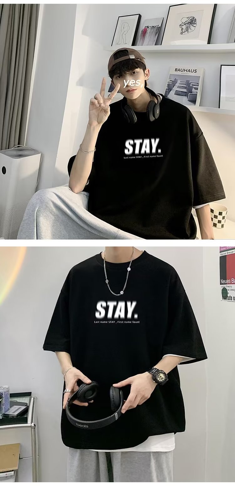 여름 신작 반팔 루즈 티셔츠 남성 트렌디 캐주얼 반팔 트렌디 티셔츠 바닥 셔츠 5부소매 탑