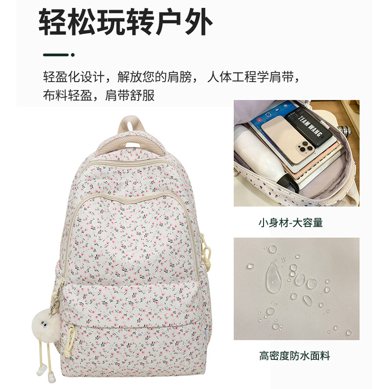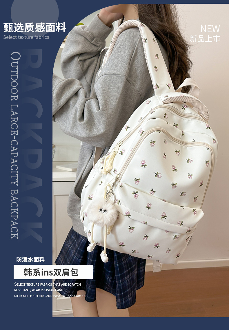 2025 새로운 배낭 여성 한국 대학생 작은 꽃 문학 스타일 학교 가방 ins 대학 스타일 캐주얼 배낭