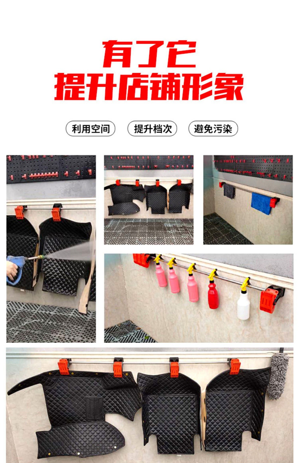 자동차 세차 매트 청소 클립 벽걸이 형 다기능 고정 플러시 매트 클립 후크 도구 세트