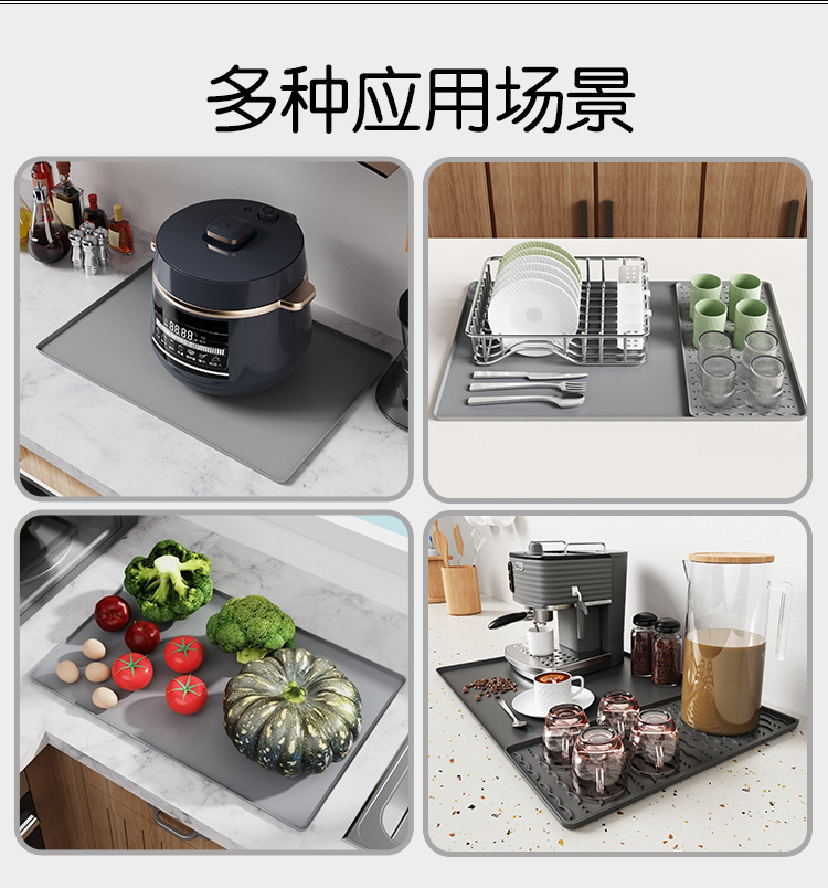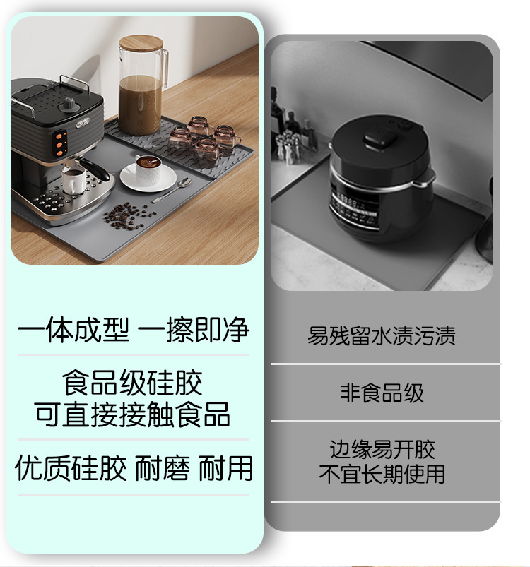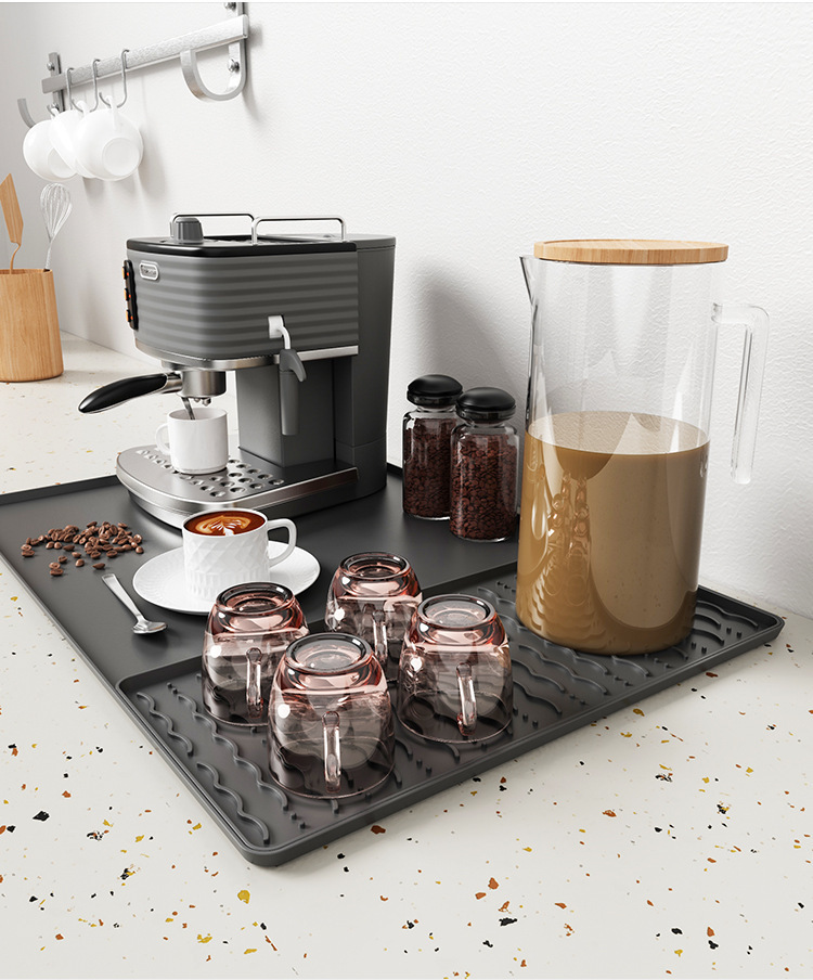 국경 간 인기 판매 실리콘 커피 머신 매트 바 테이블 미끄럼 방지 단열 대형 배수 트레이 커피 컵 건조 매트