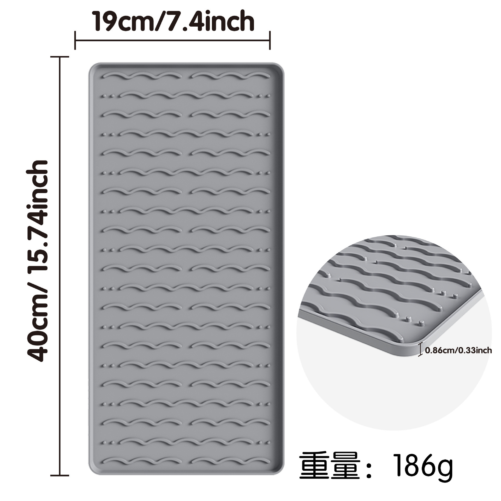 [세로줄무늬 2-in-1] 그레이 트레이매트 + 배수매트