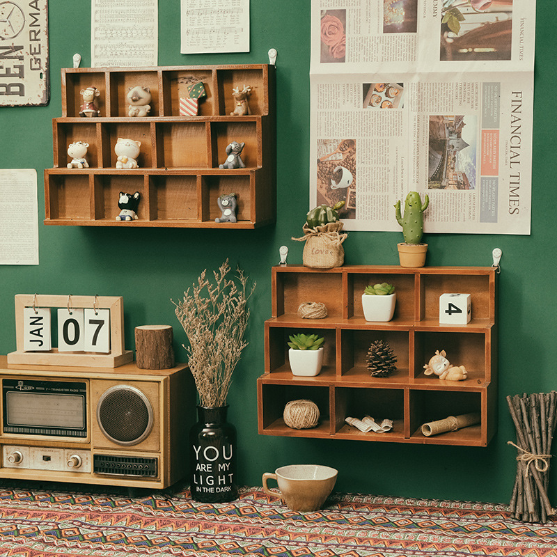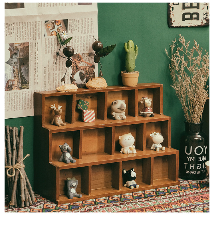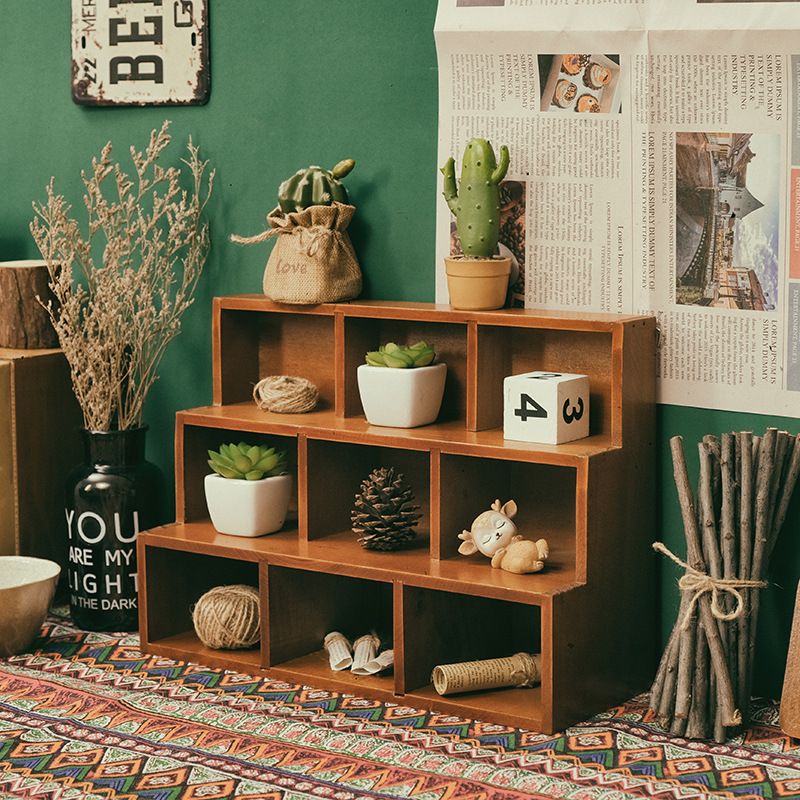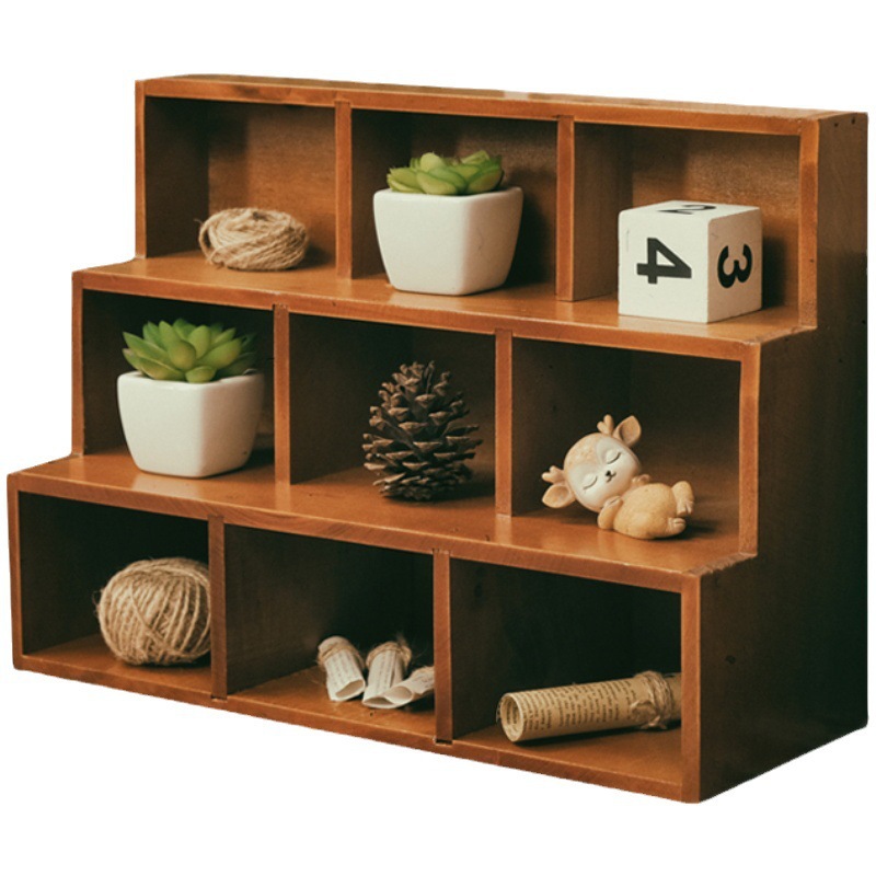 Zakka 사다리꼴 나무 데스크탑 스토리지 캐비닛 사다리 12 그리드 9 그리드 벽걸이 형 디스플레이 캐비닛 홈 잡화 보관 상자