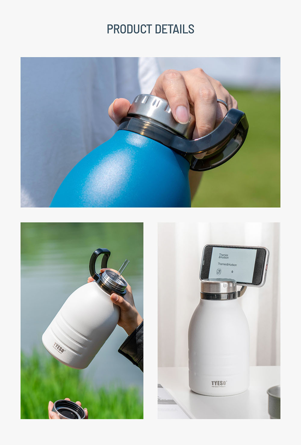 TYESO 대용량 휴대용 스포츠 야외 절연 컵 304 스테인레스 스틸 워터 컵