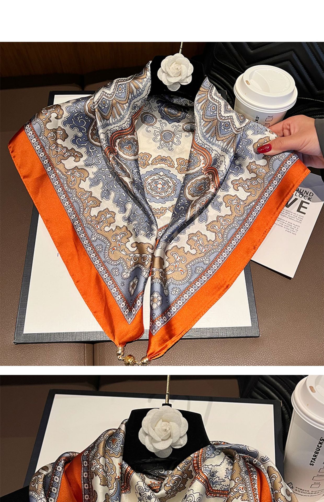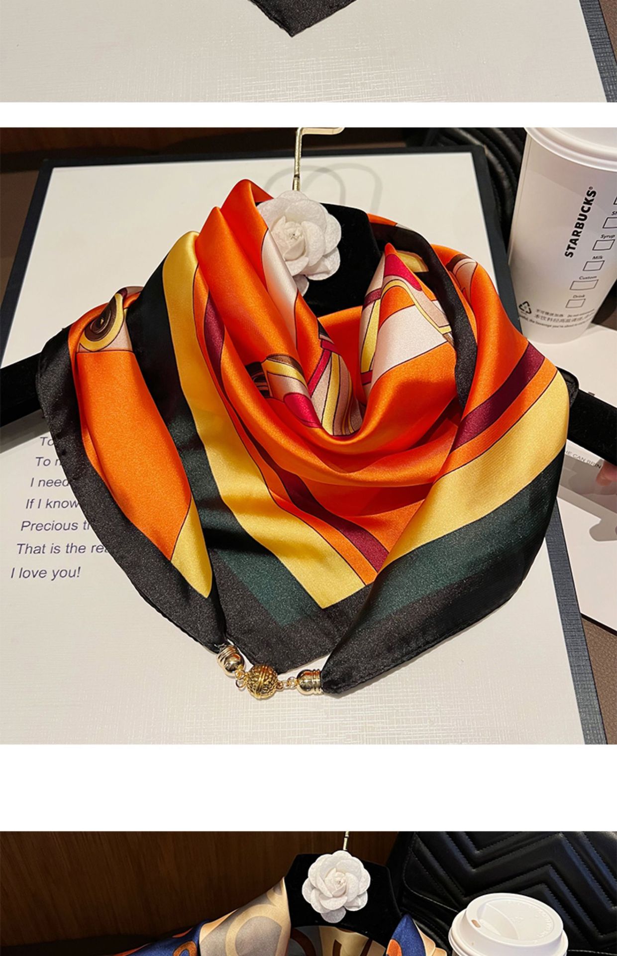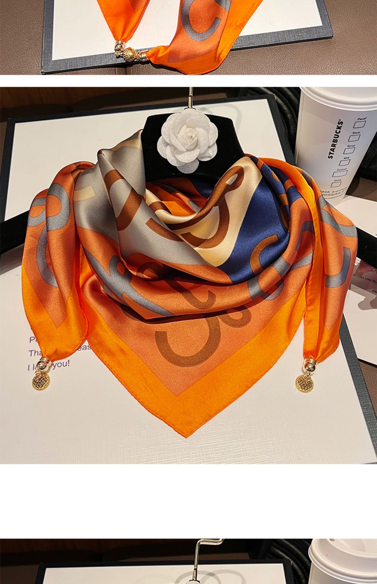 오렌지 H--[자석 새틴 스퀘어 스카프]