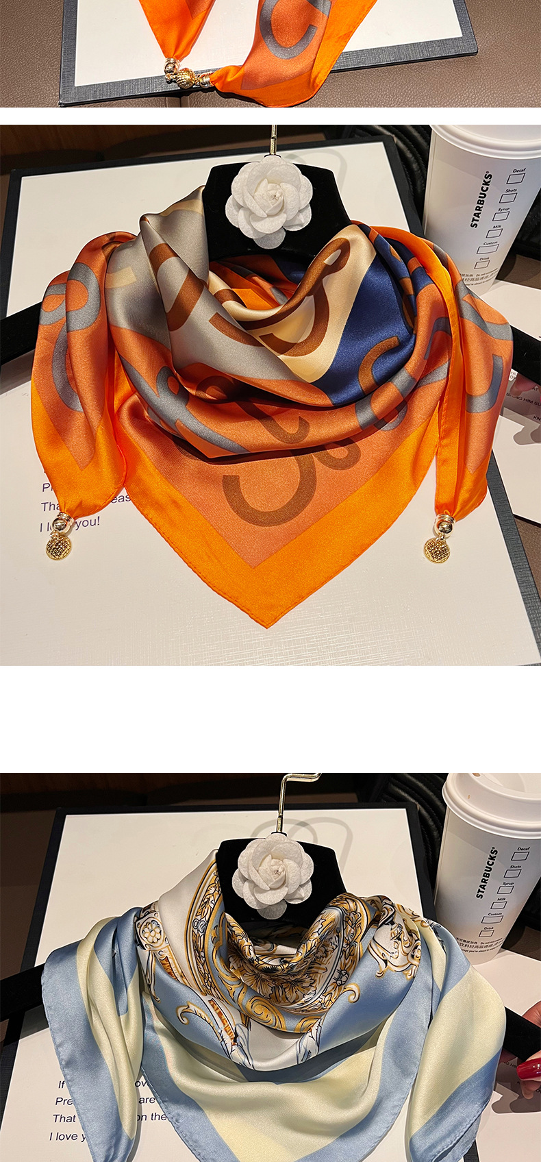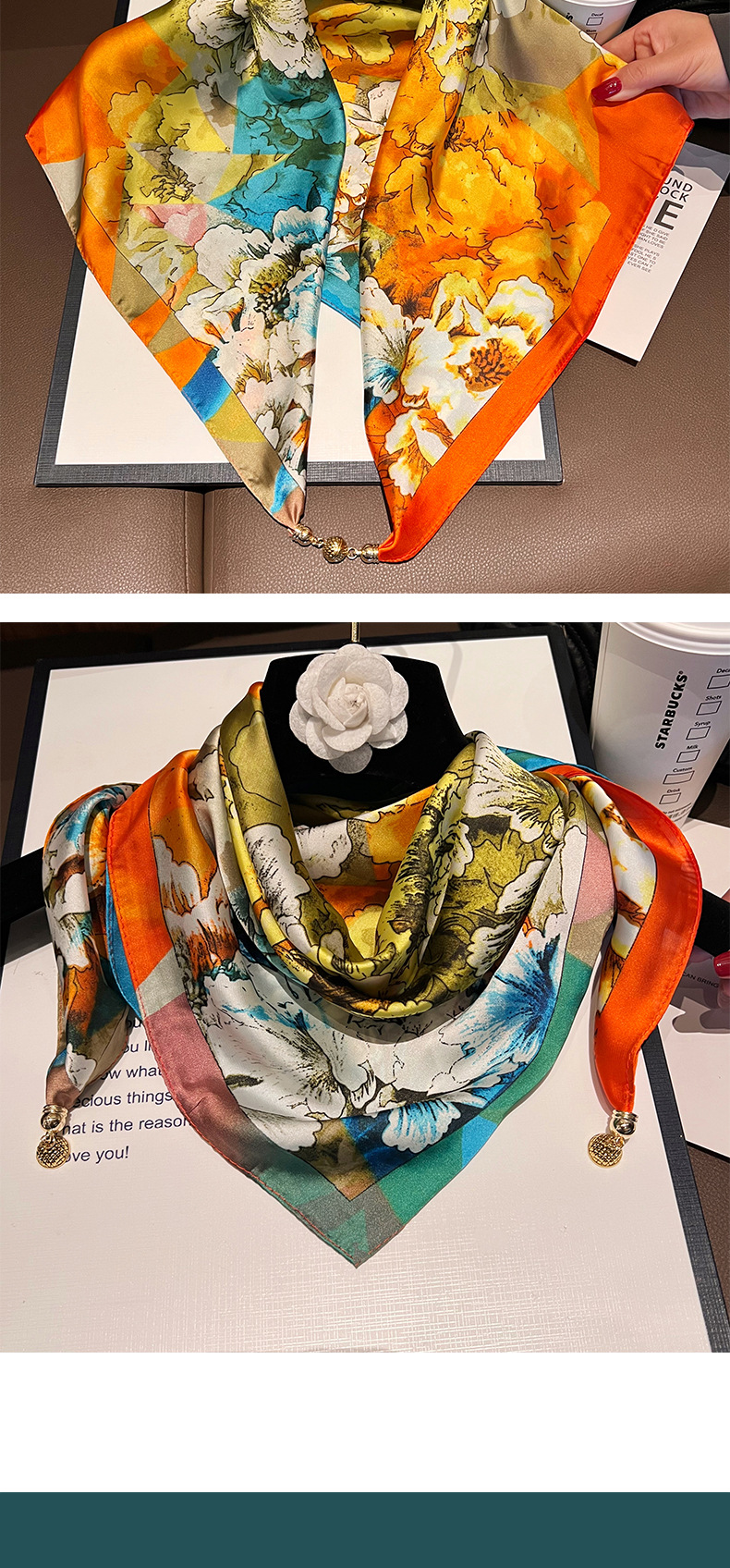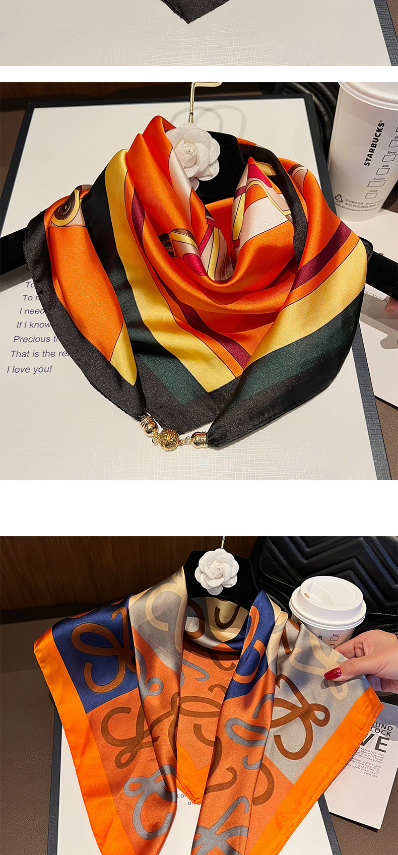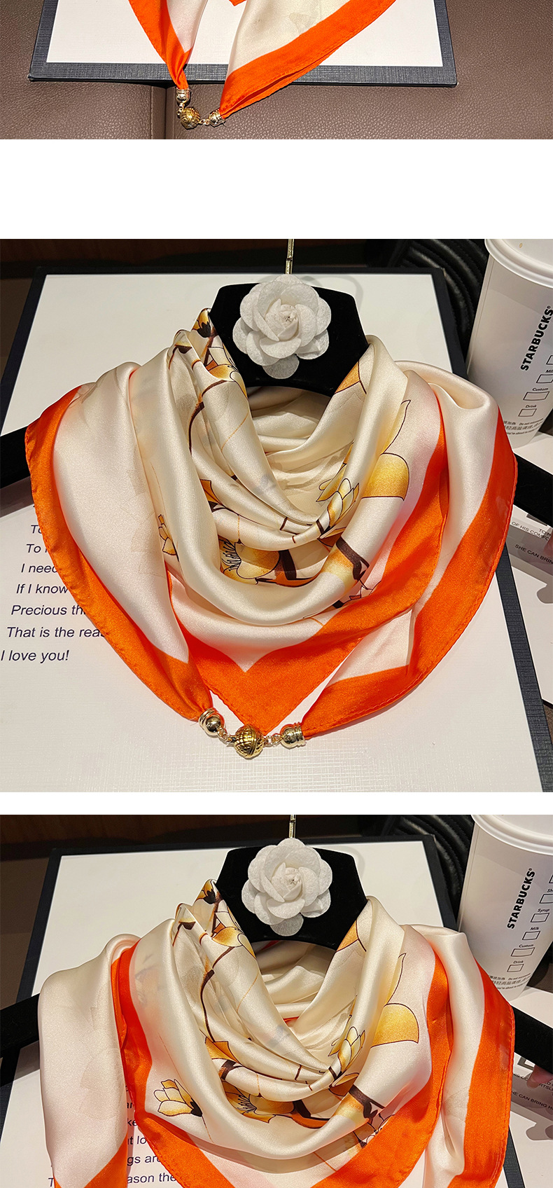 오렌지 H--[자석 새틴 스퀘어 스카프]