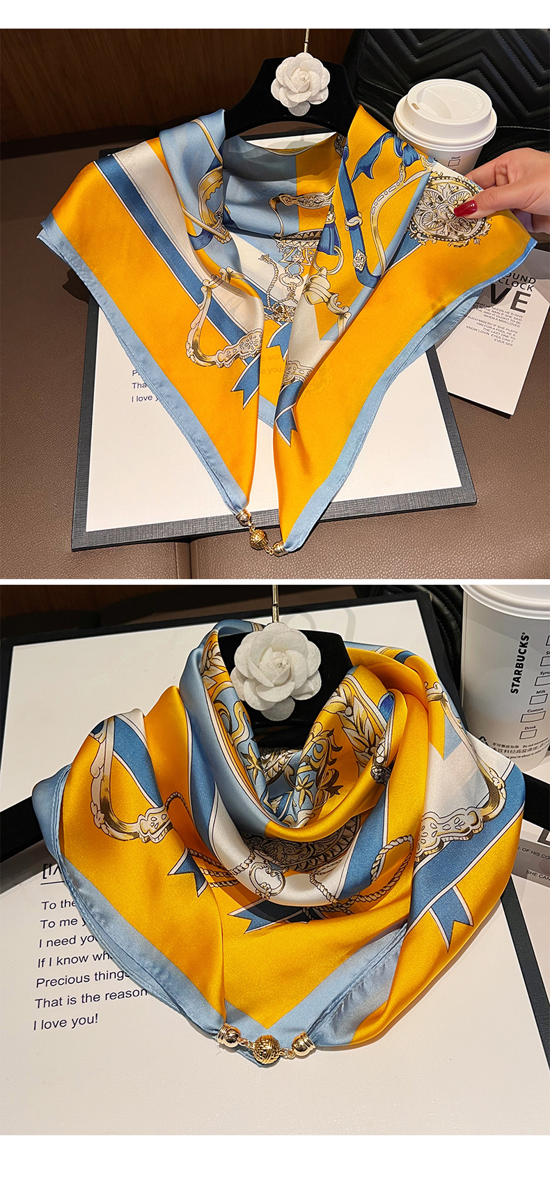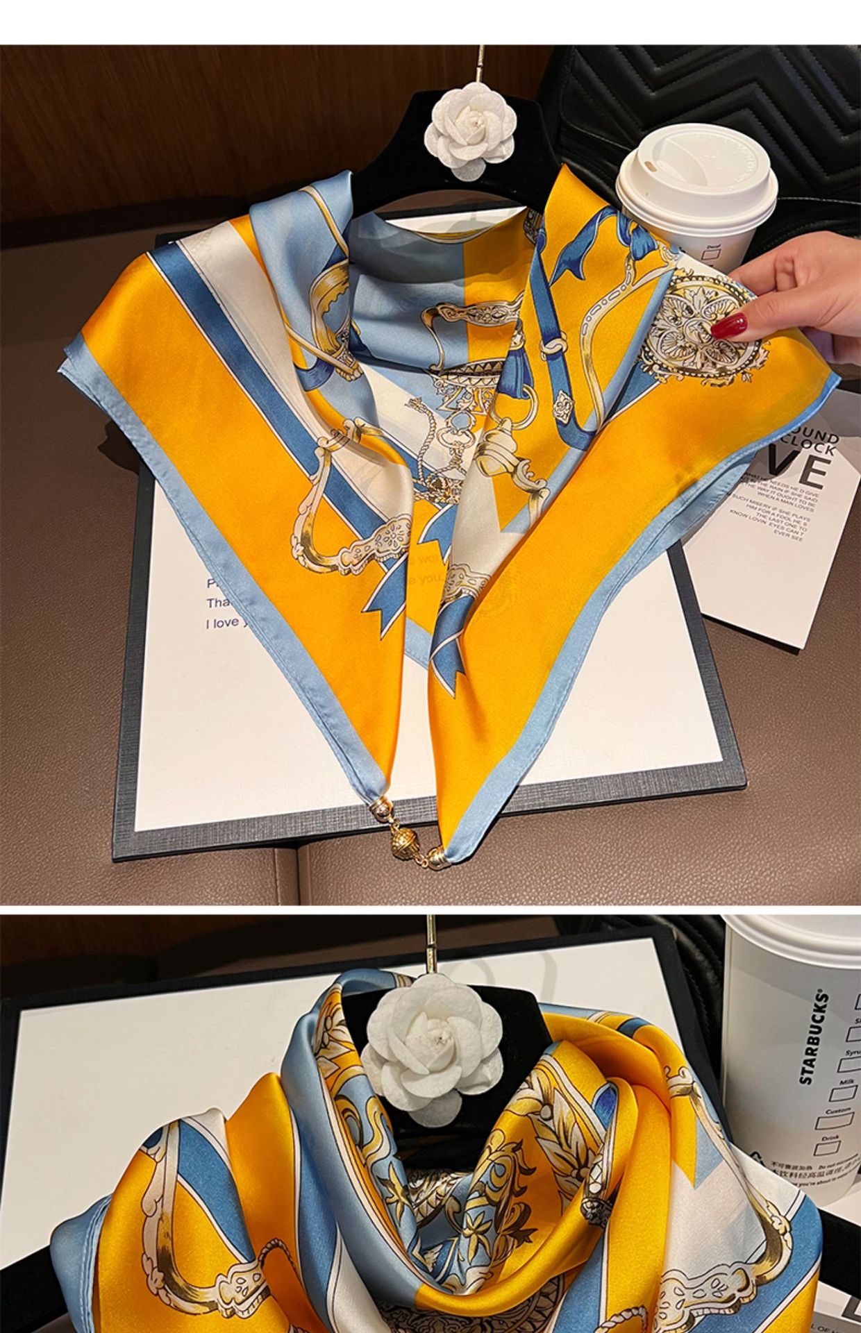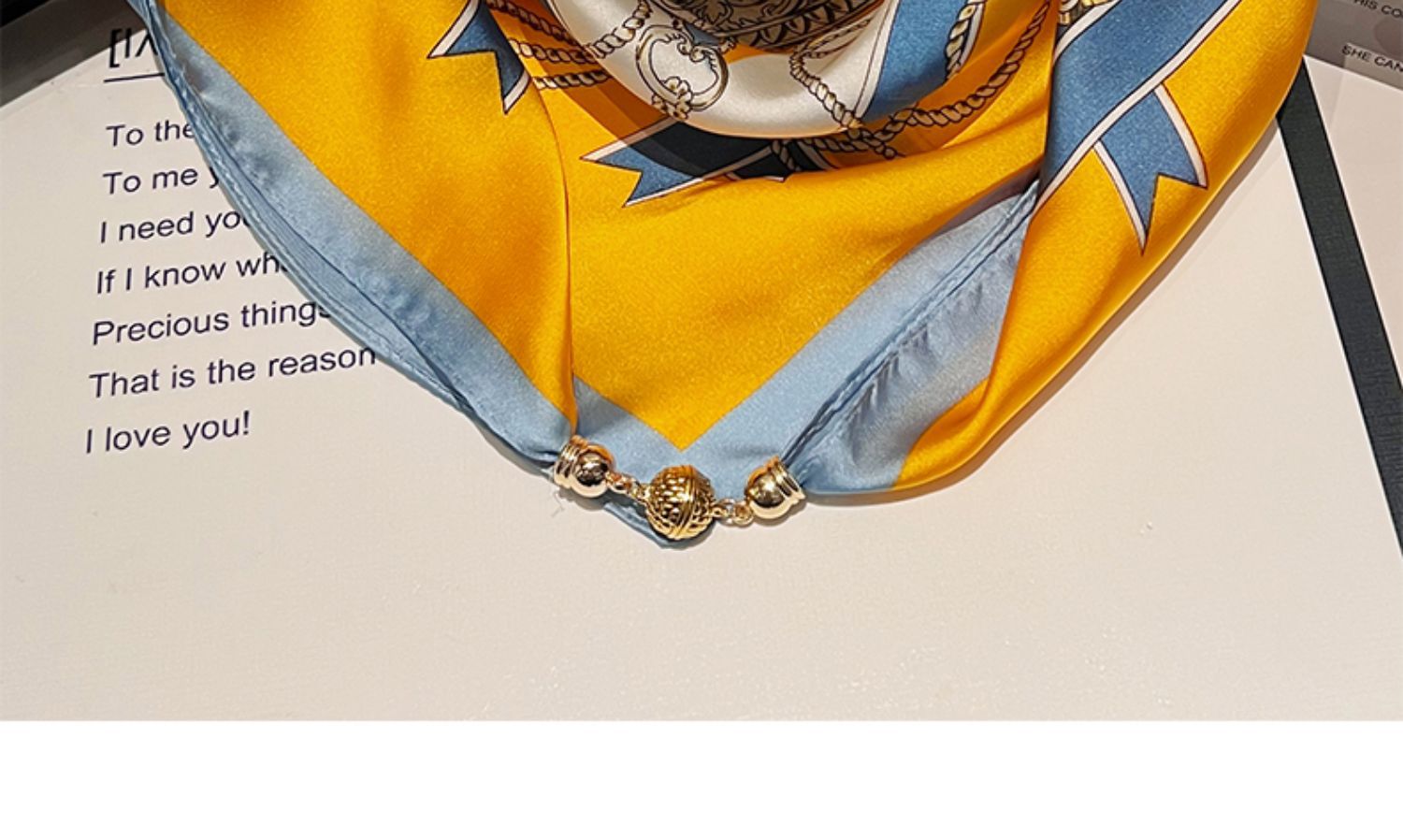 노란색과 파란색 체인--[자석 새틴 스퀘어 스카프]