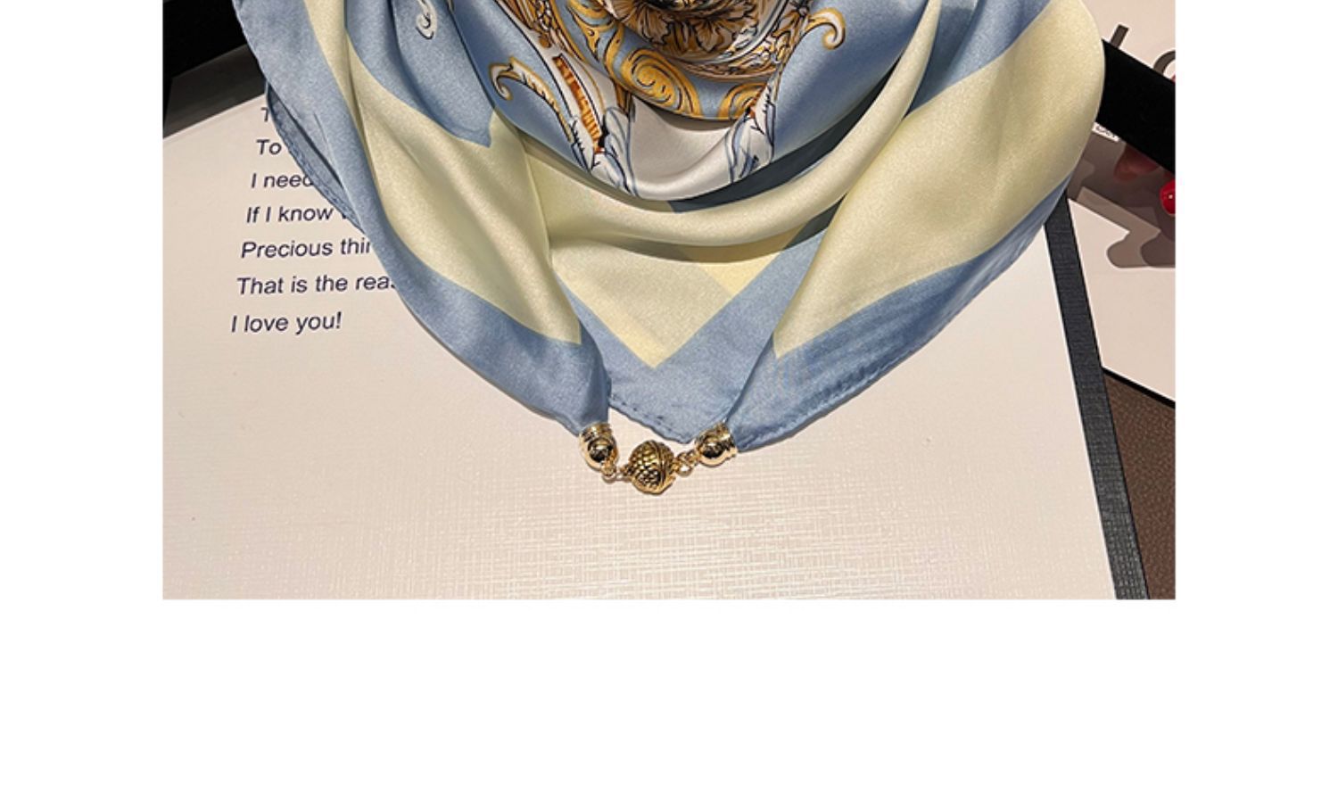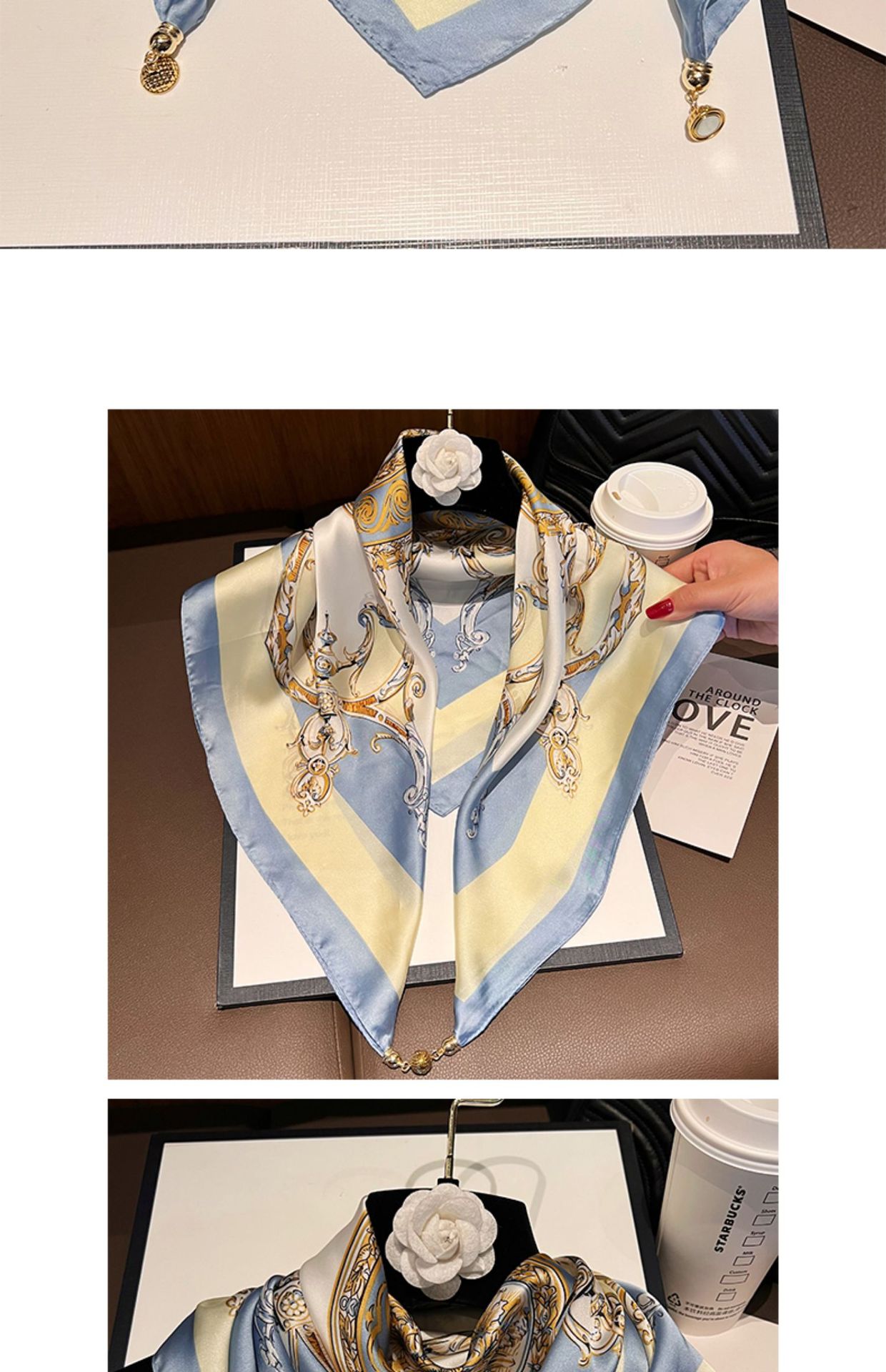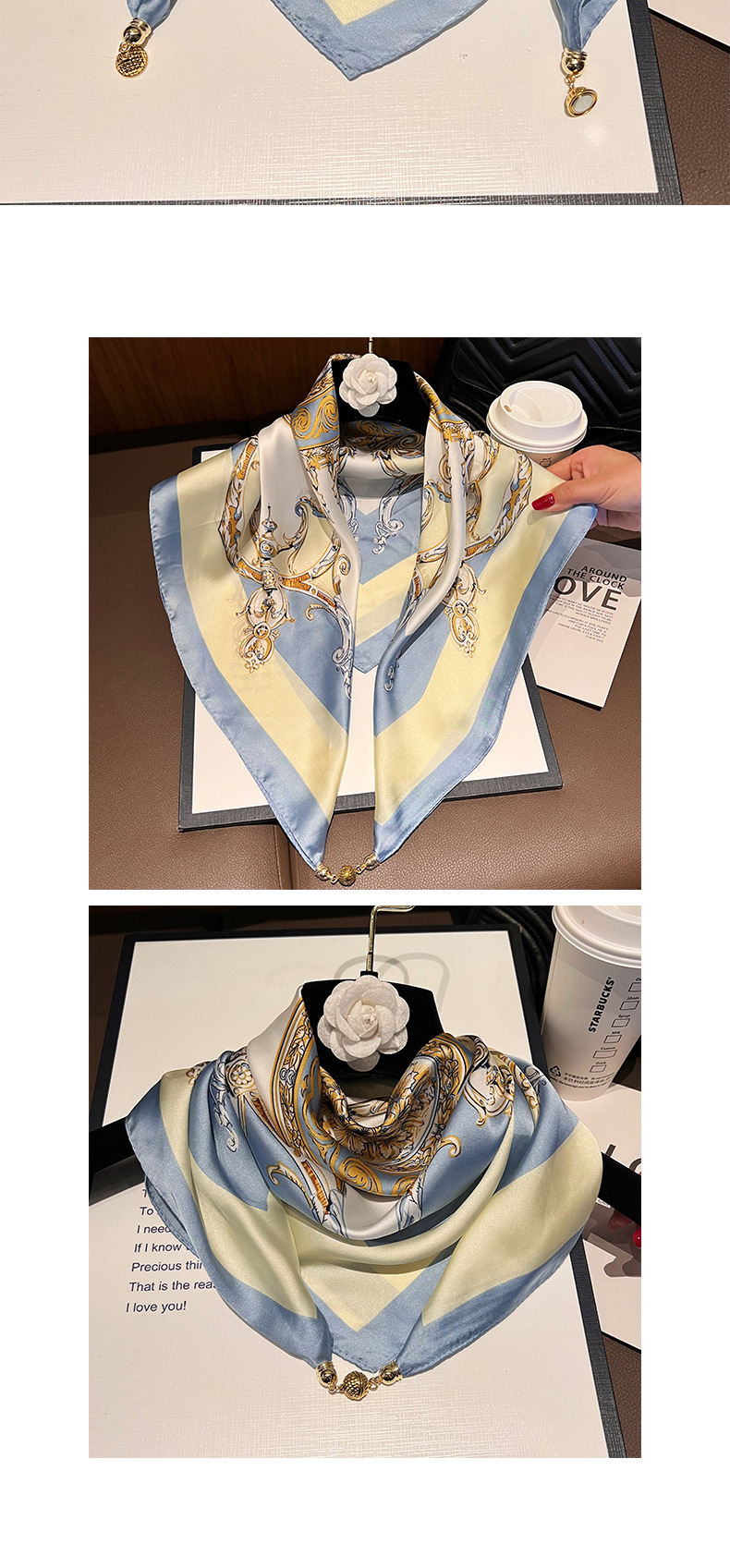 노란색과 파란색 체인--[자석 새틴 스퀘어 스카프]
