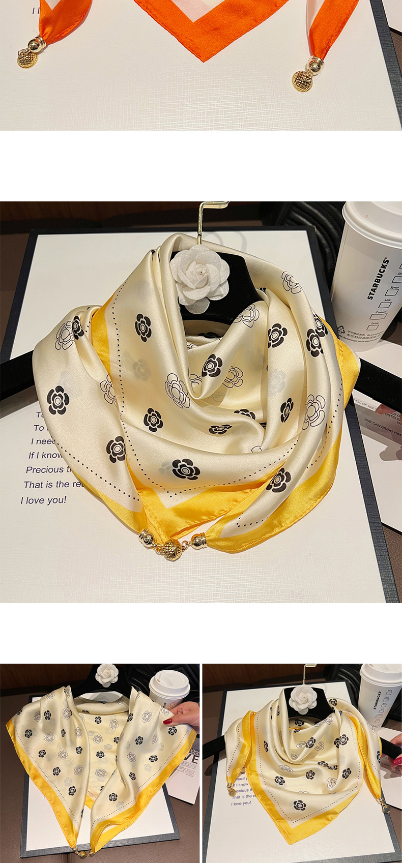 오렌지 엣지 화이트 목련--[마그네틱 새틴 스퀘어 스카프]