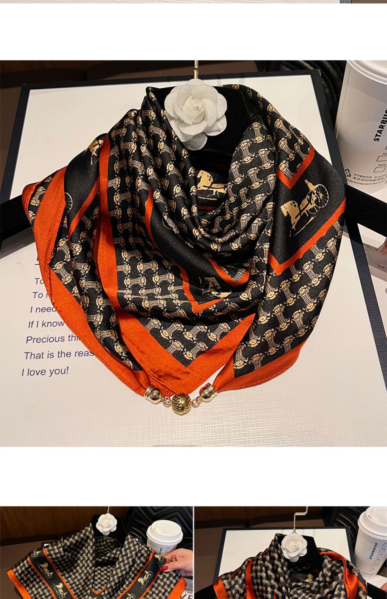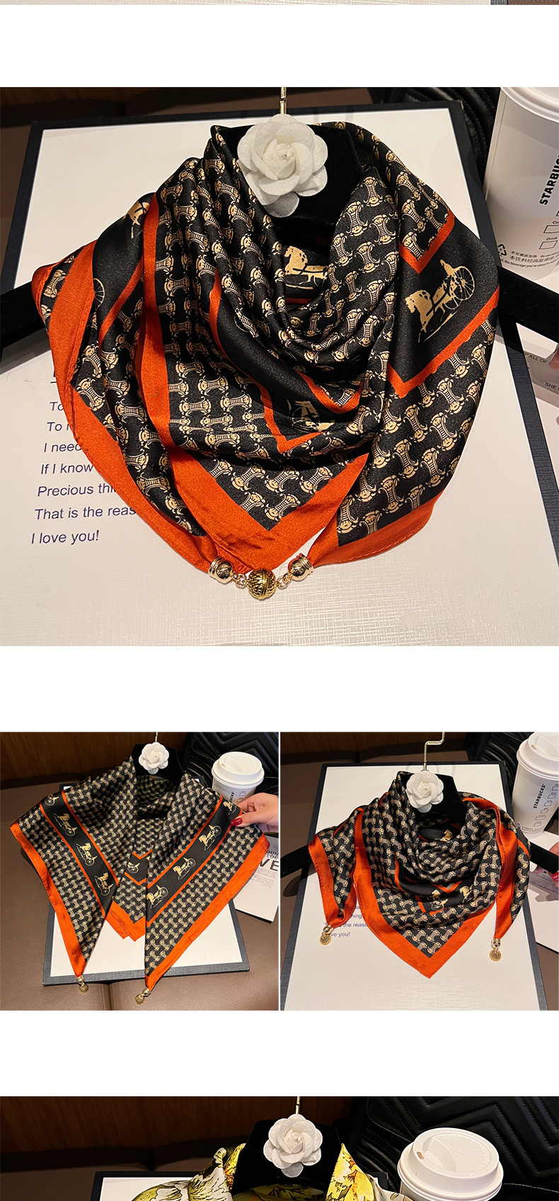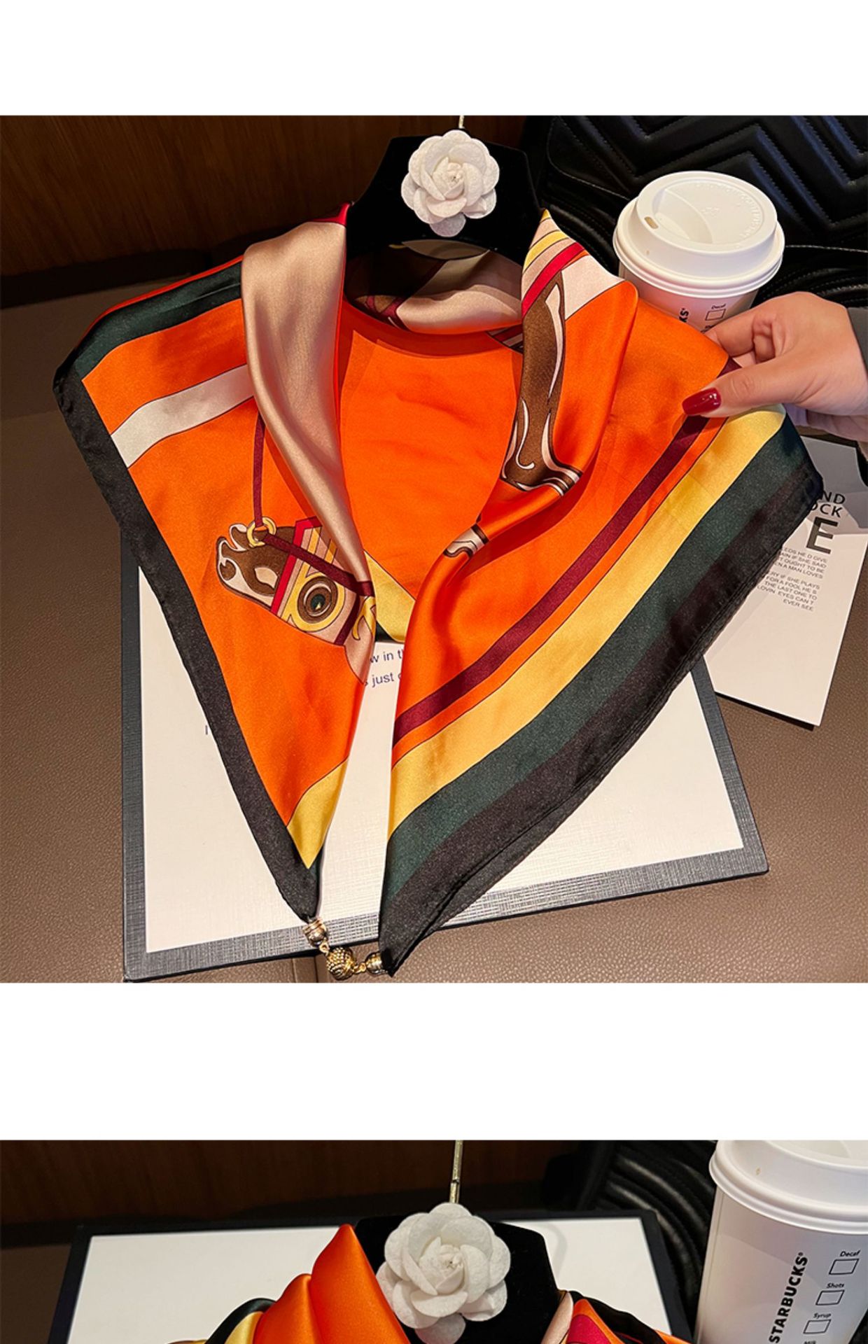 오렌지색과 검은색 마차--[자석 새틴 스퀘어 스카프]