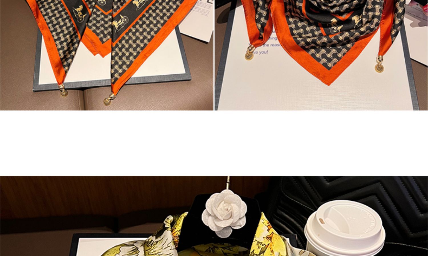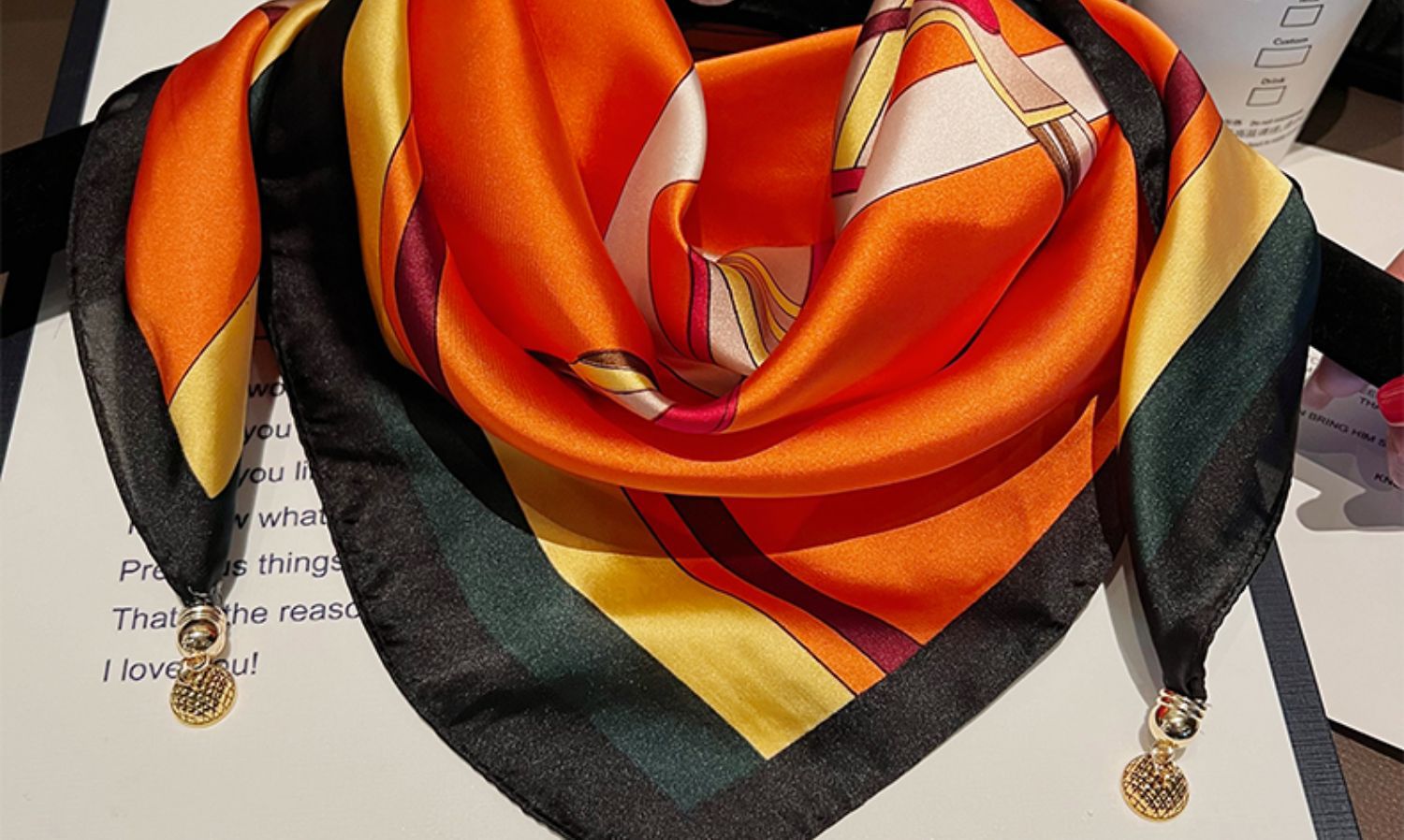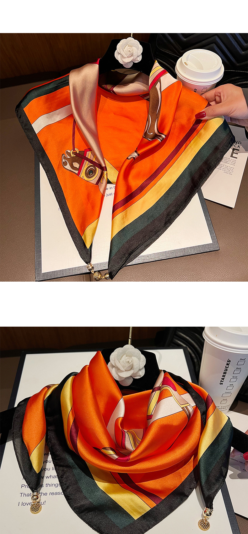 오렌지색과 검은색 마차--[자석 새틴 스퀘어 스카프]