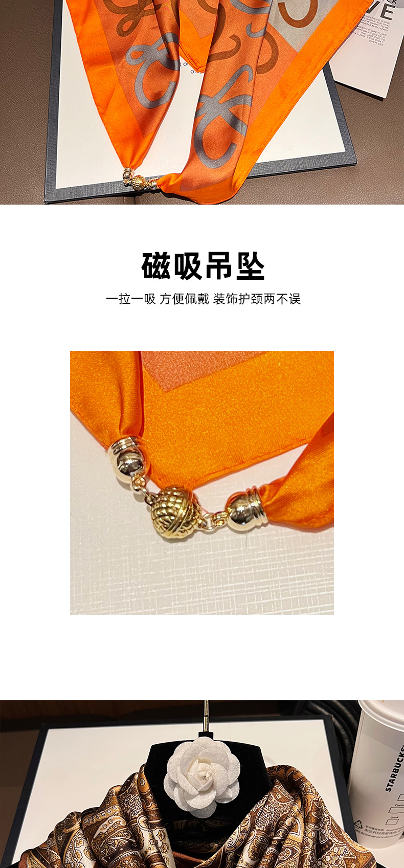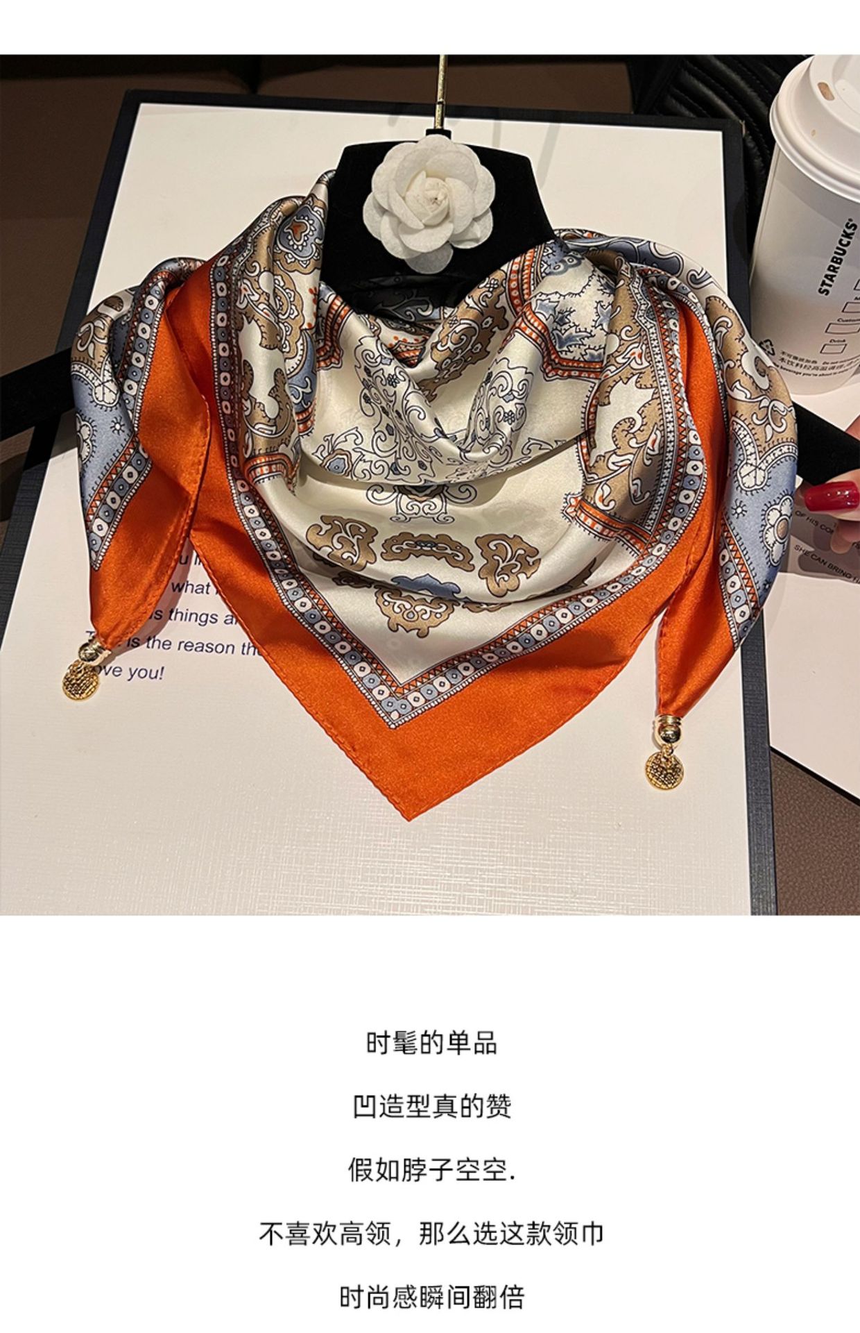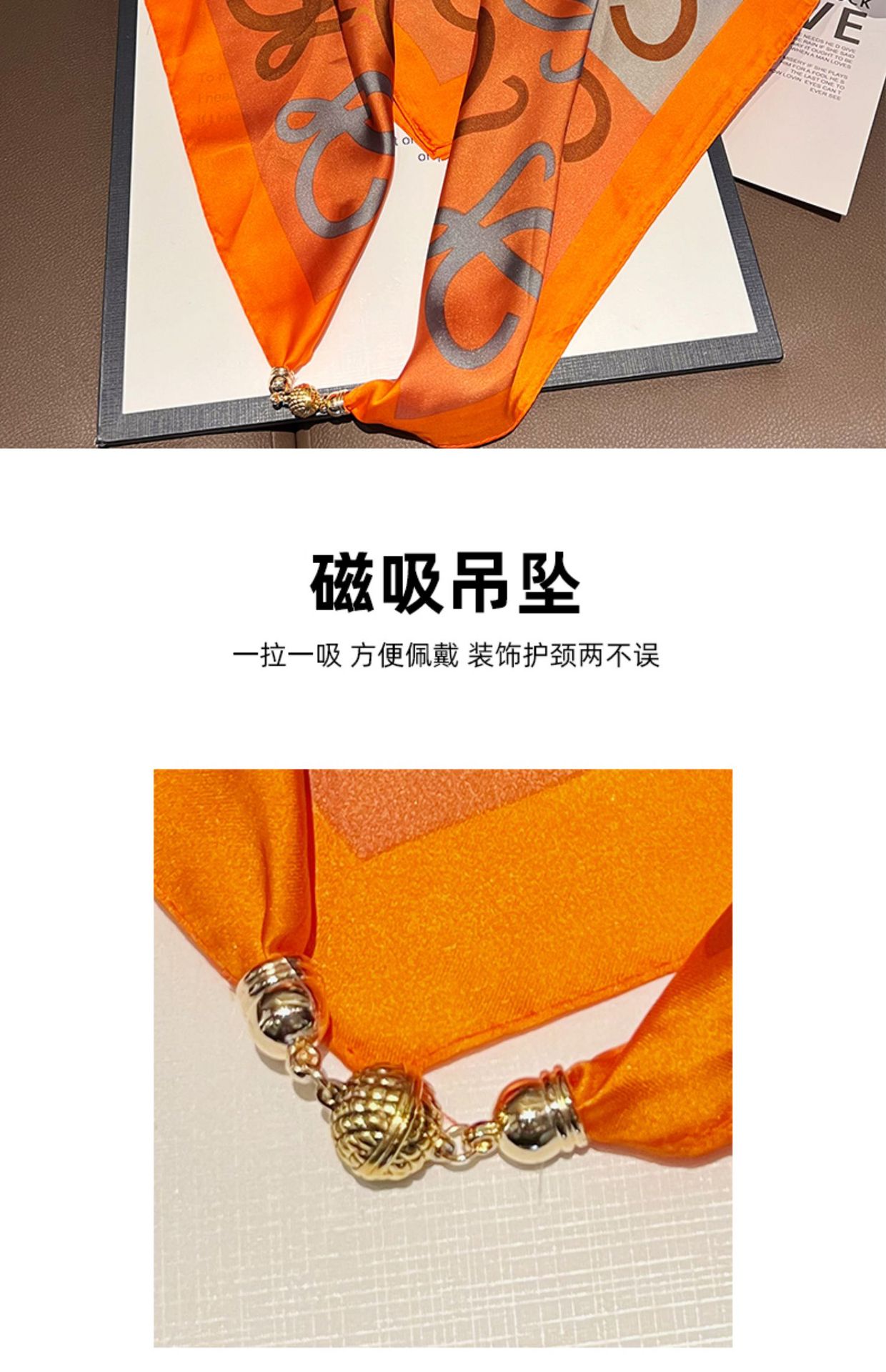 주황색 말--[자석 새틴 스퀘어 스카프]