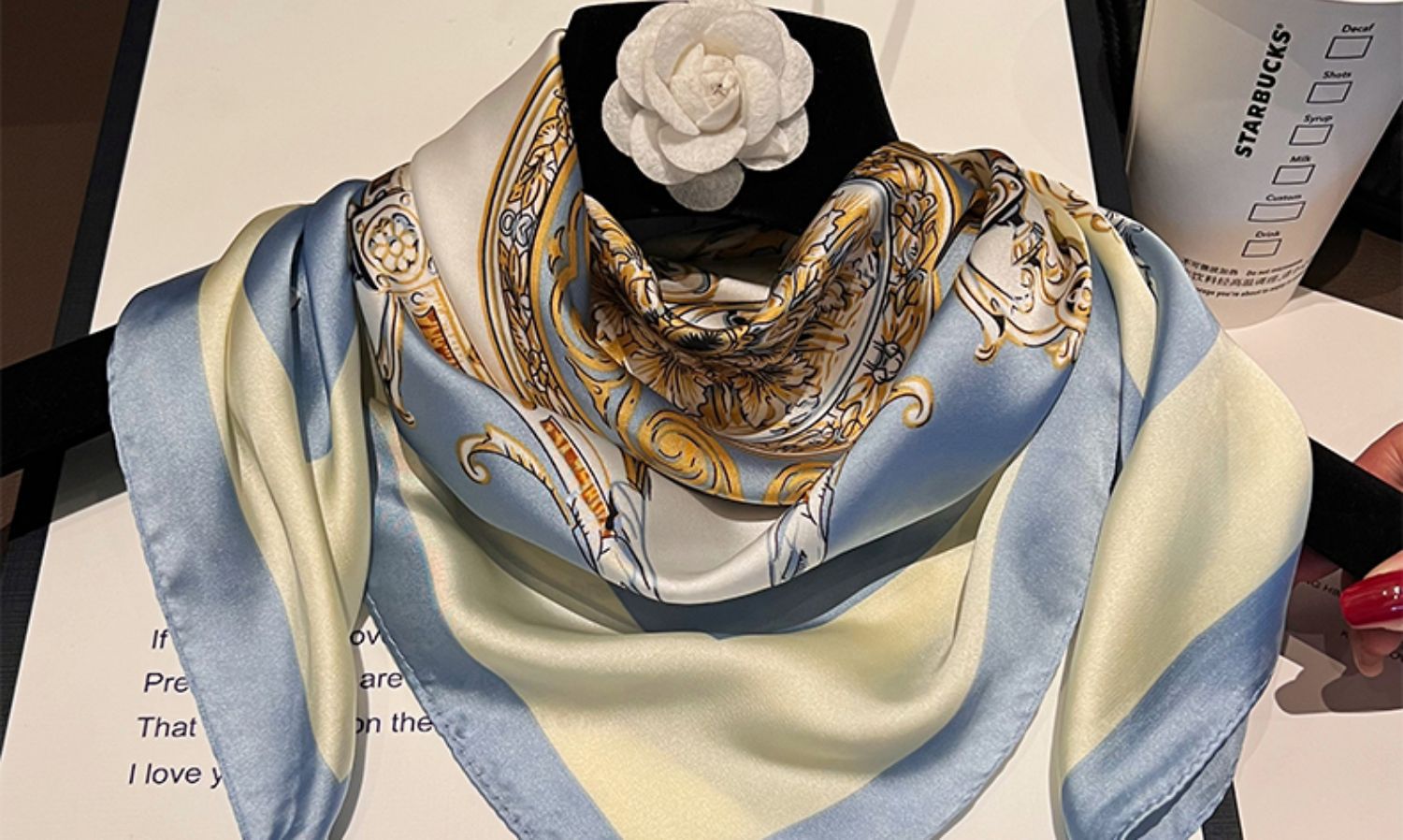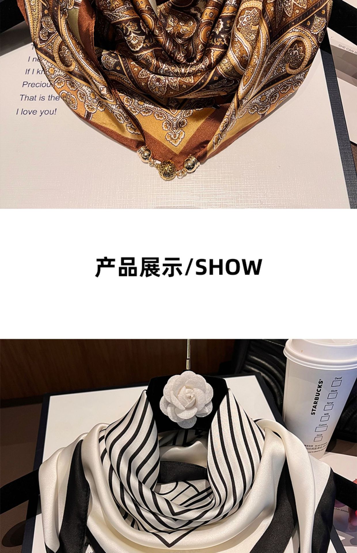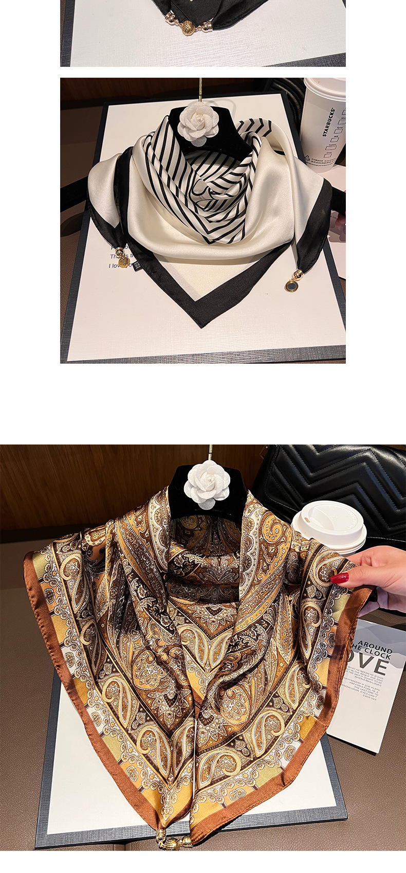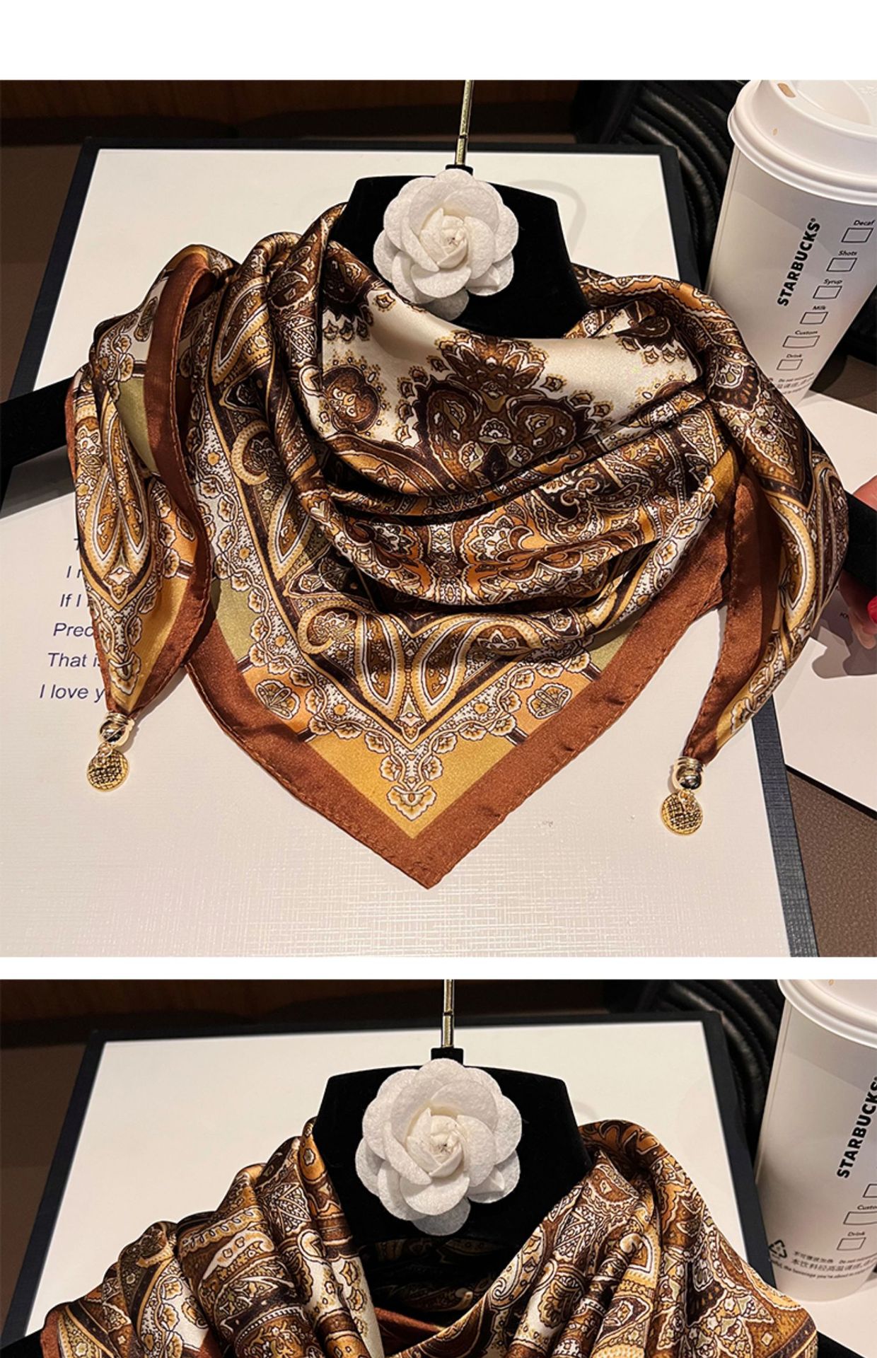 밀크 커피 꽃--[마그네틱 새틴 스퀘어 스카프]