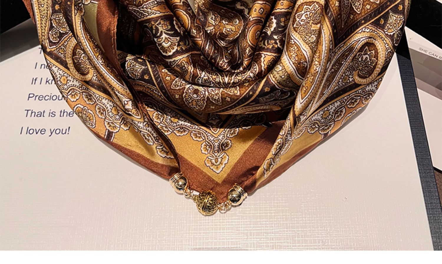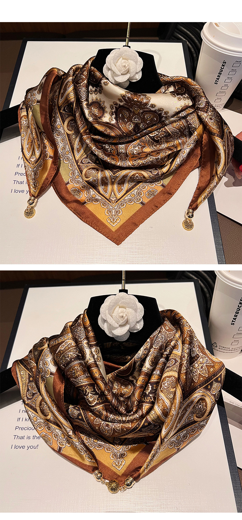 카멜 라이트 럭셔리 플라워--[마그네틱 새틴 스퀘어 스카프]