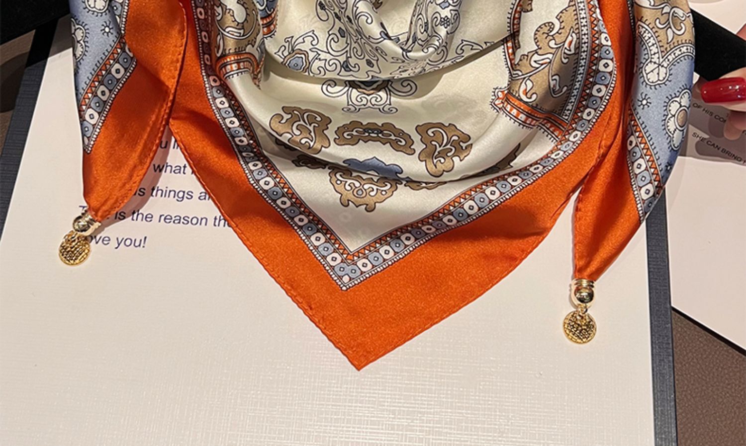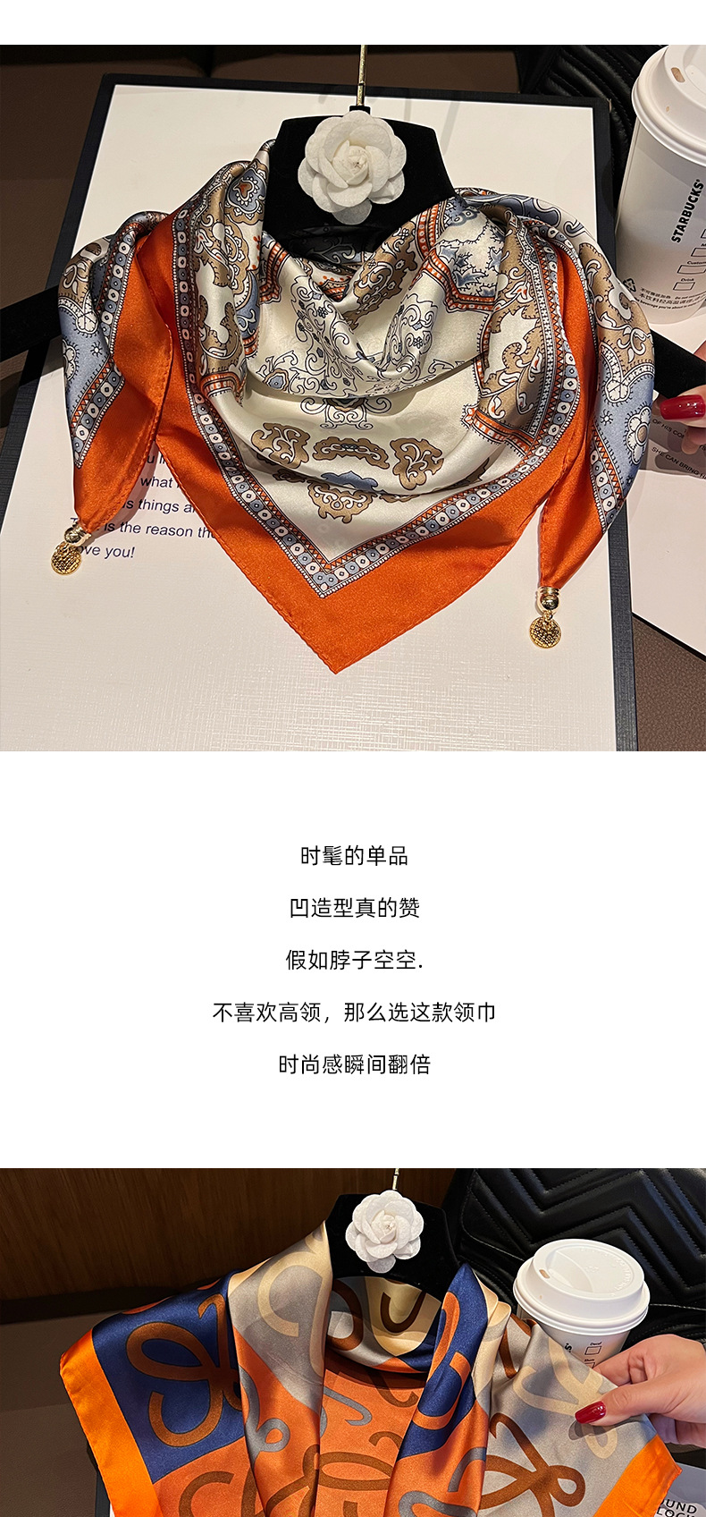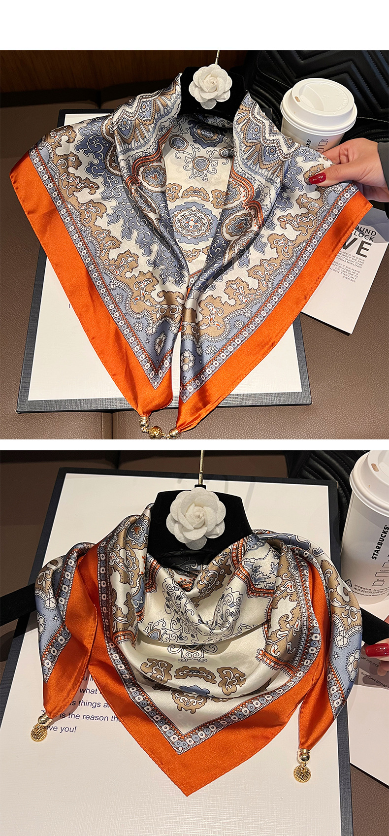 오렌지 엣지 캐슈--[마그네틱 새틴 스퀘어 스카프]