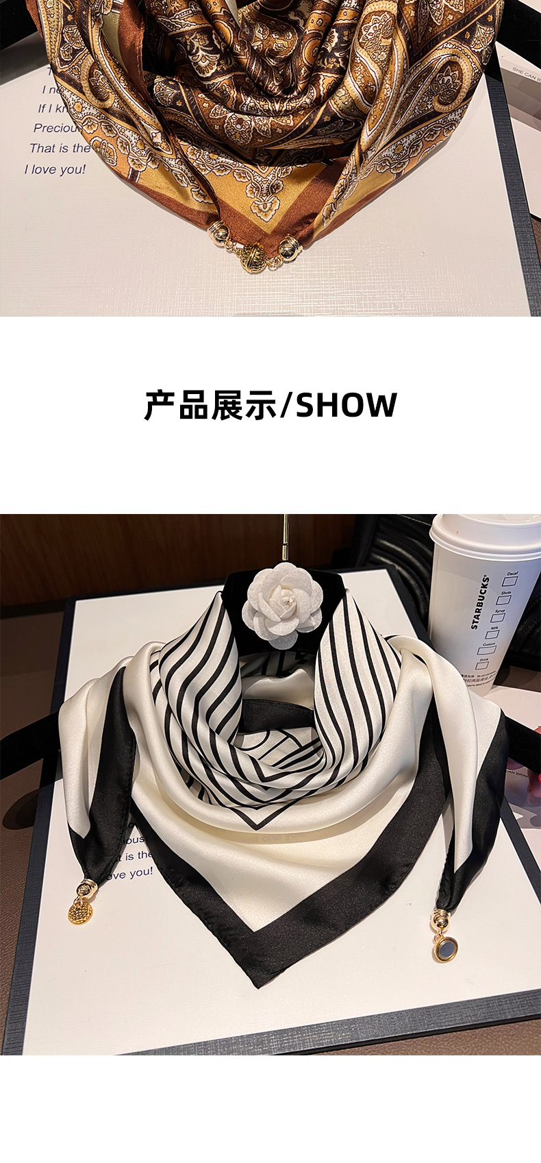 흑백 와이어프레임--[마그네틱 새틴 스퀘어 스카프]