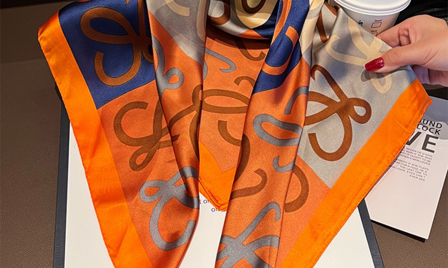 오렌지 라인 드로잉--[마그네틱 새틴 스퀘어 스카프]