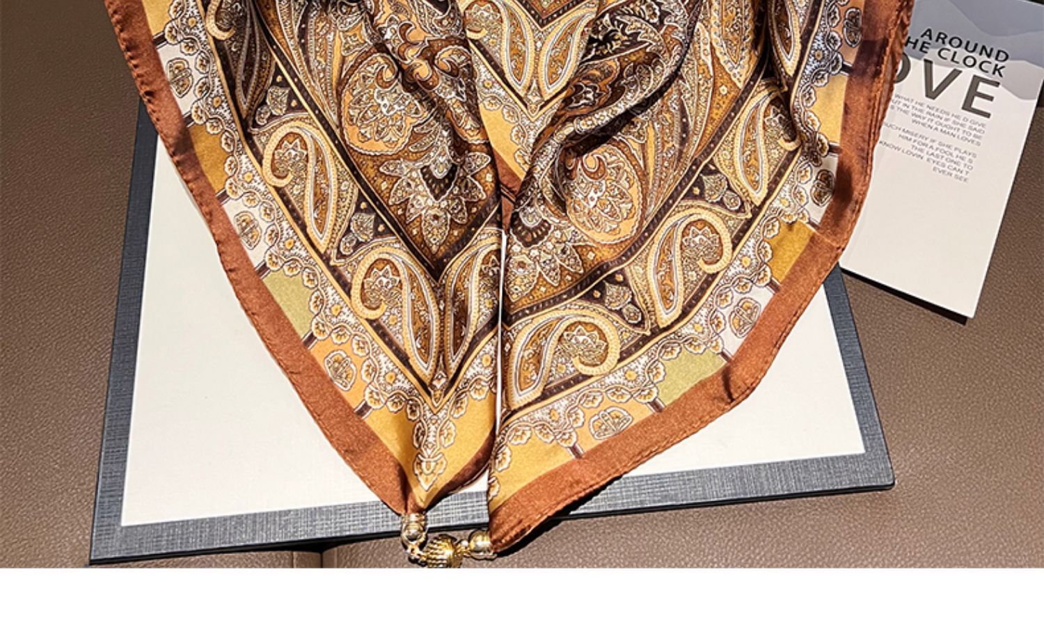 브라운-그린 커피-캐슈넛-(65 모조 실크 자석 버클 스퀘어 스카프)