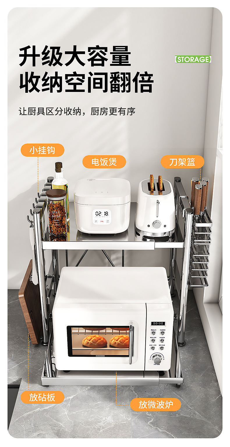 주방 수납 선반, 다층 냄비 선반, 조미료 선반, 전자 레인지 탁상 수납 선반, 스토브 밥솥 그릇 홀더