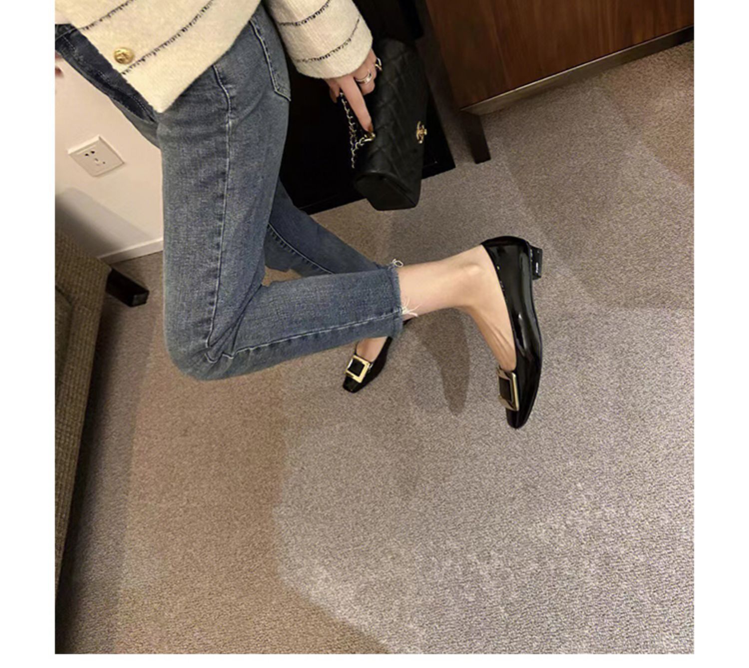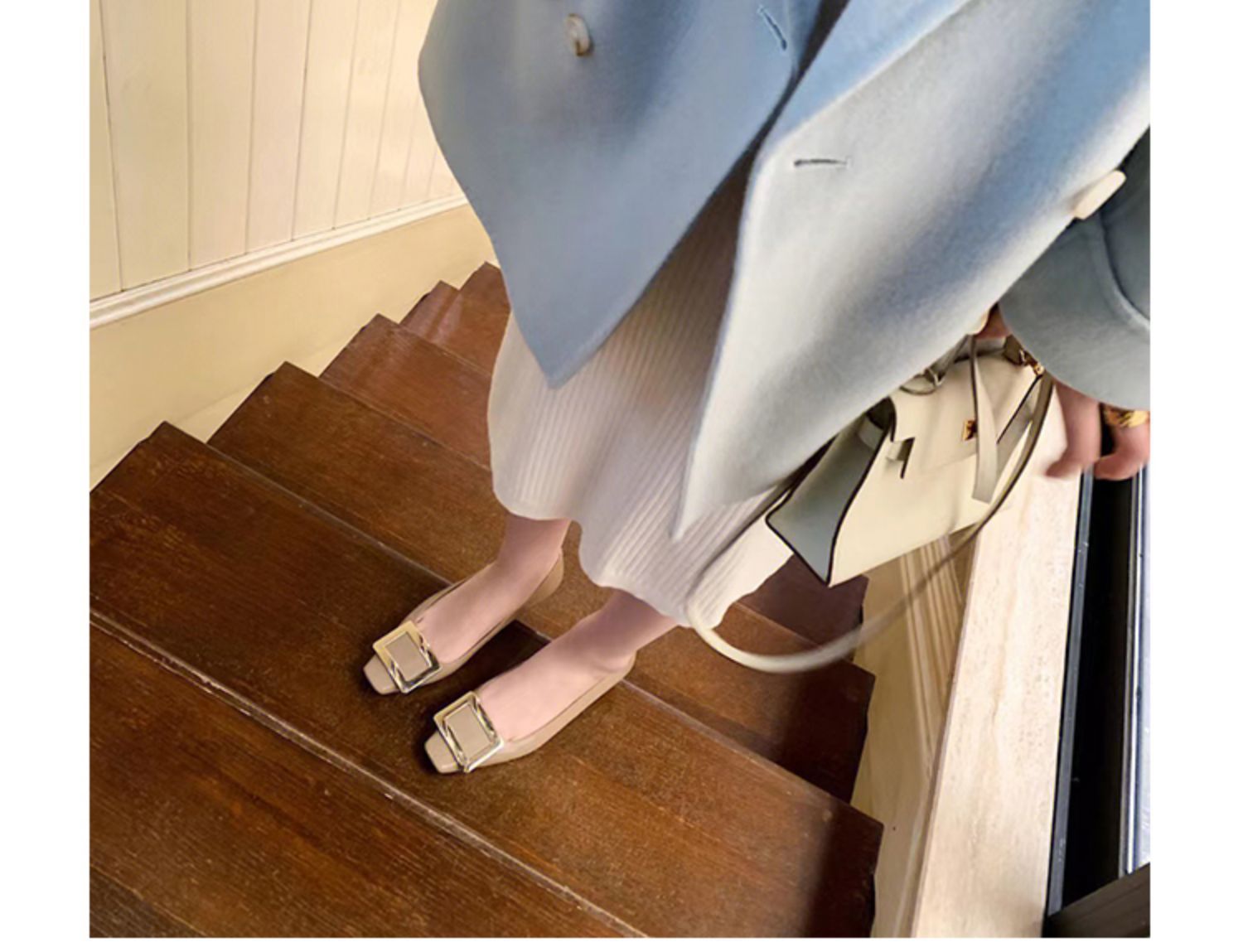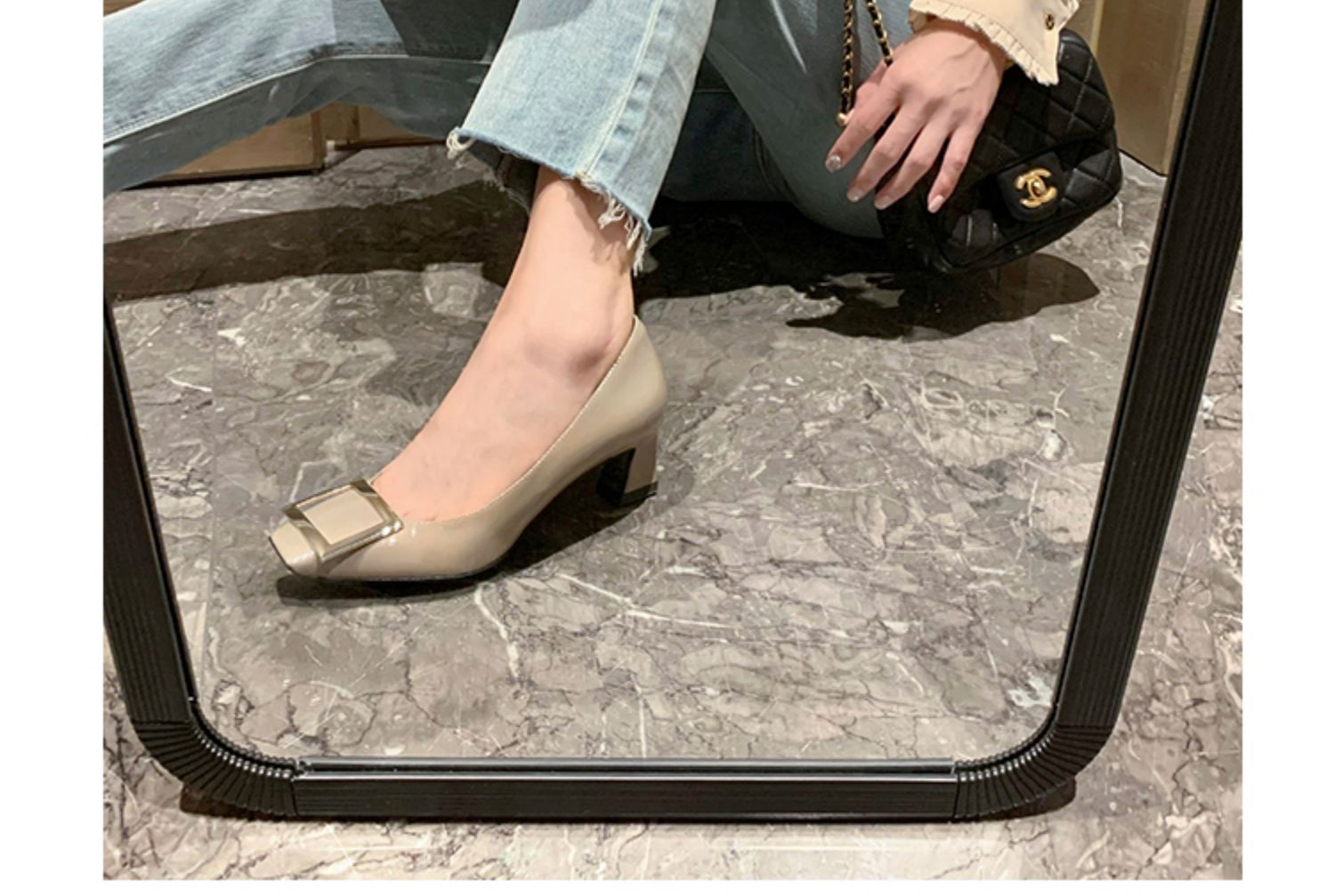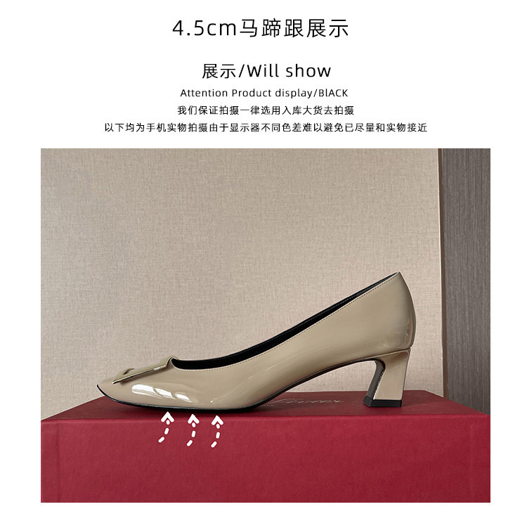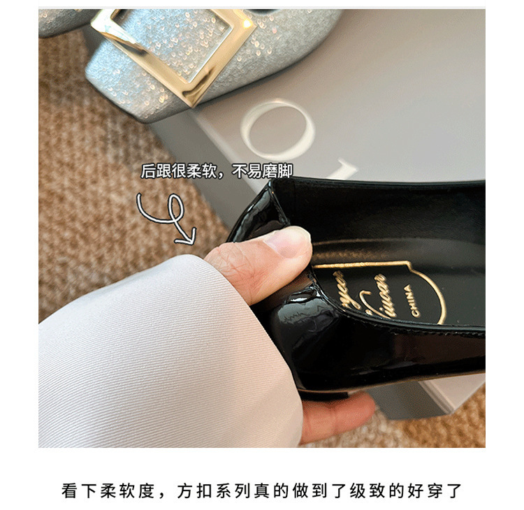 2025 정품 가죽 스퀘어 토우 두꺼운 힐 프렌치 RV 스퀘어 버클 싱글 슈즈 여성 하이힐 플랫 슈즈 스틸레토 여성 슈즈 하이 버전