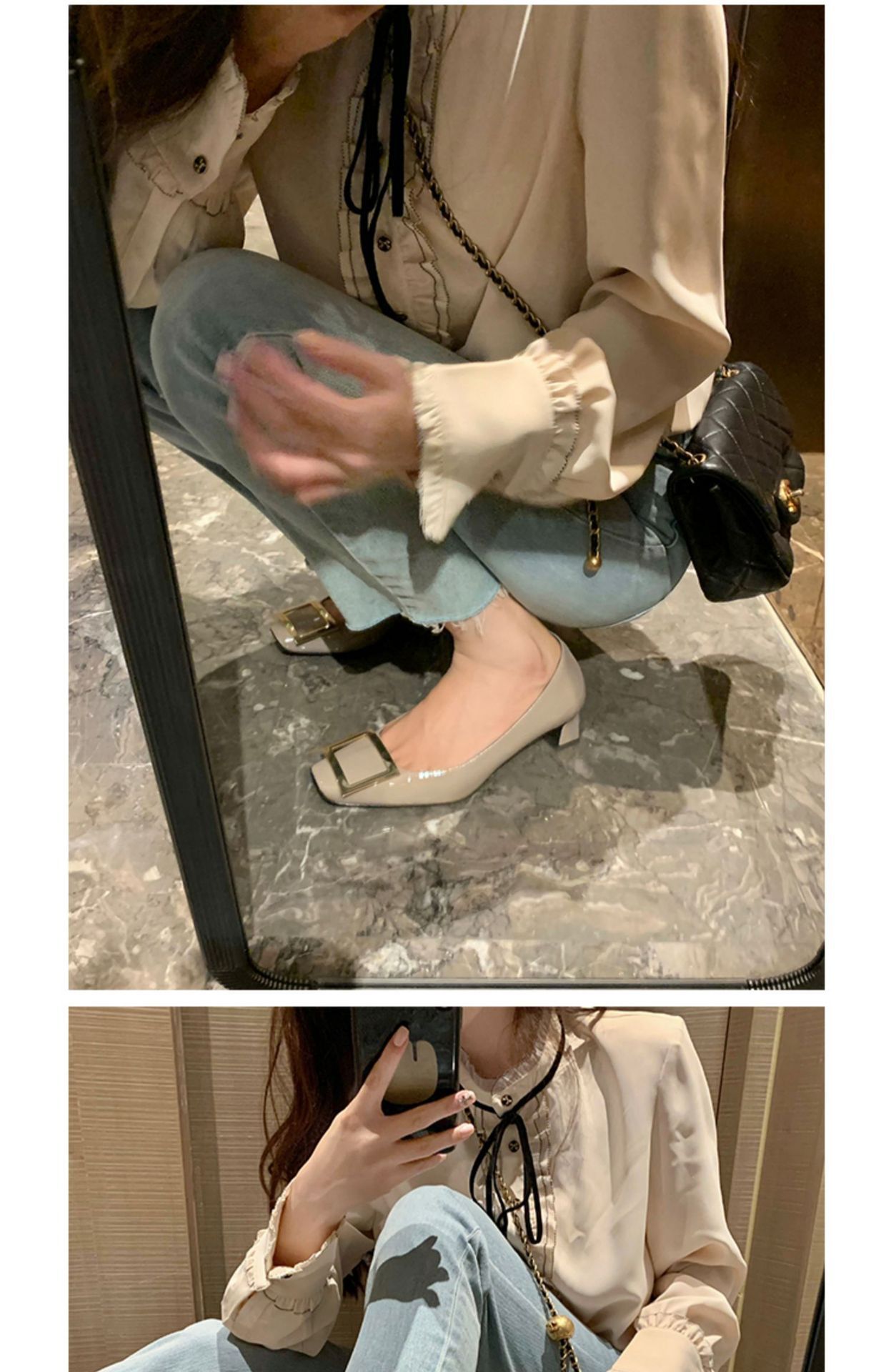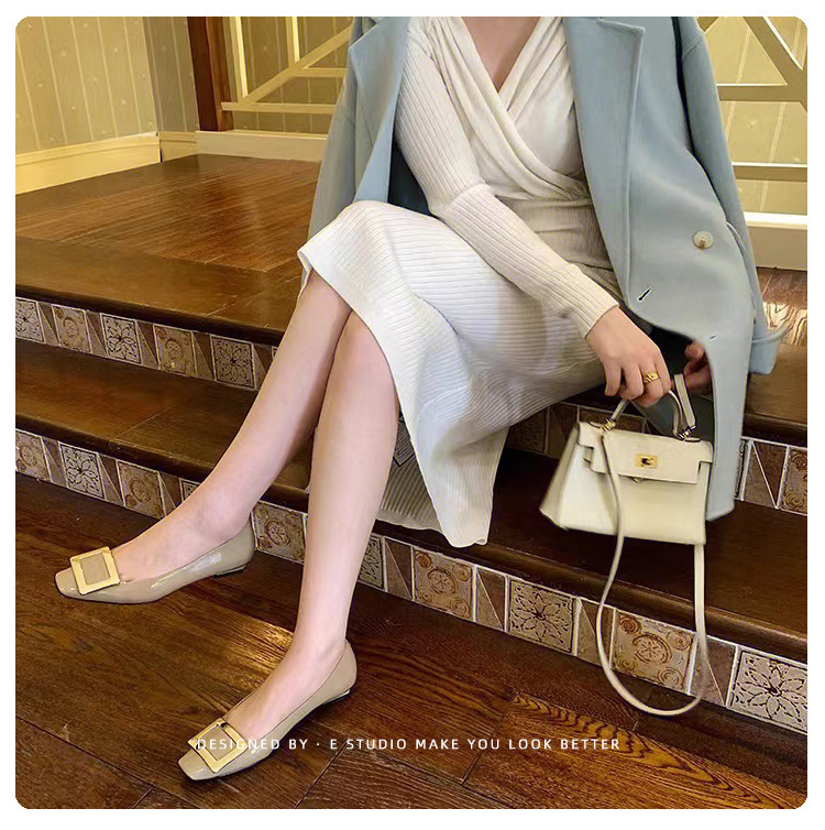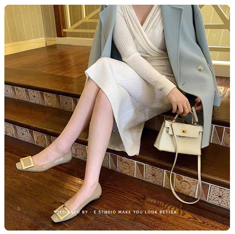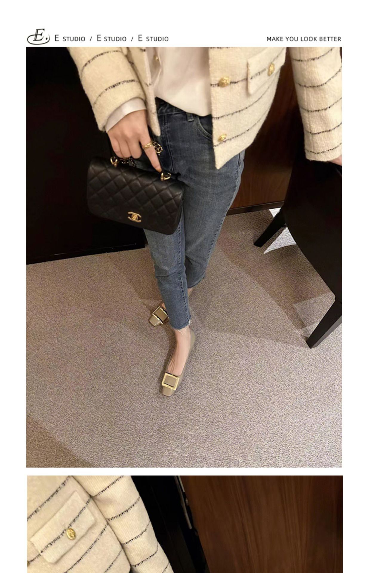 2025 정품 가죽 스퀘어 토우 두꺼운 힐 프렌치 RV 스퀘어 버클 싱글 슈즈 여성 하이힐 플랫 슈즈 스틸레토 여성 슈즈 하이 버전