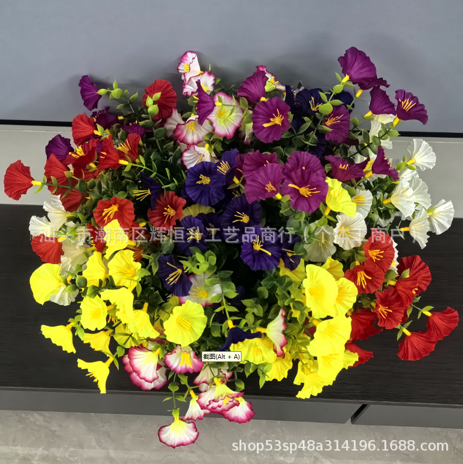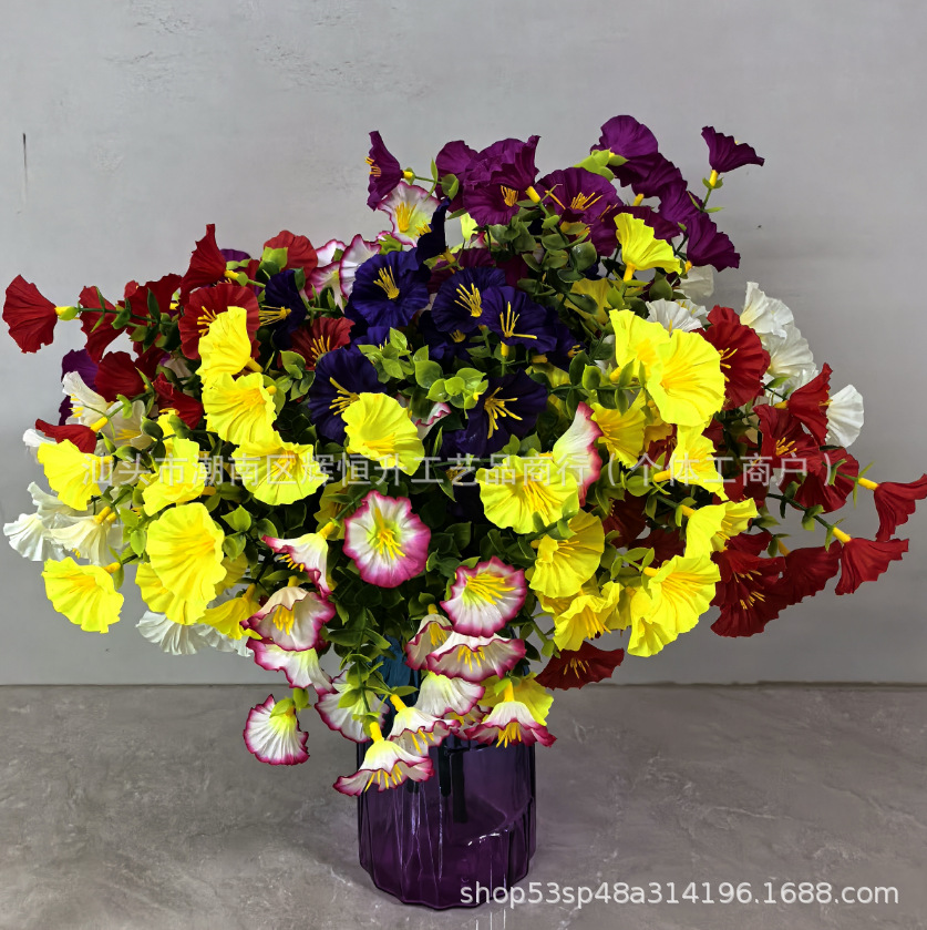 국경 간 아마존 시뮬레이션 7 갈래 유칼립투스 나팔꽃 홈 꽃다발 디스플레이 테이블 장식 가짜 꽃