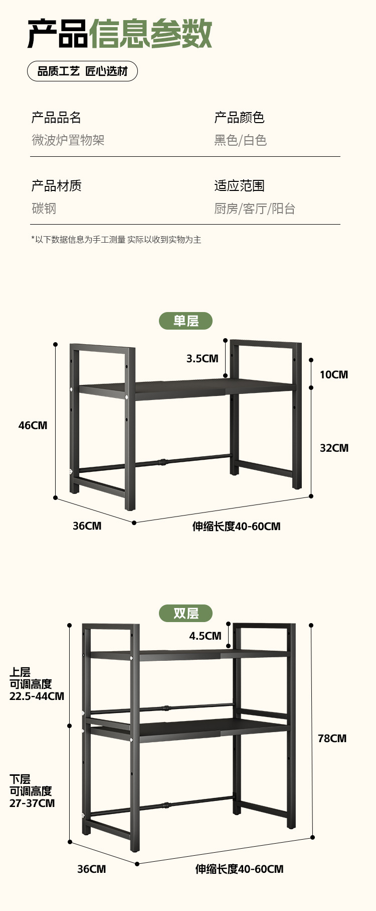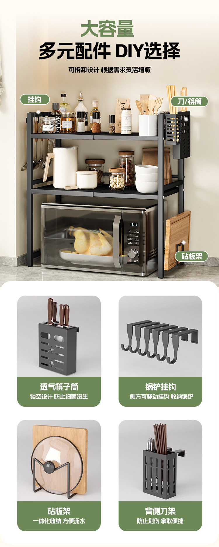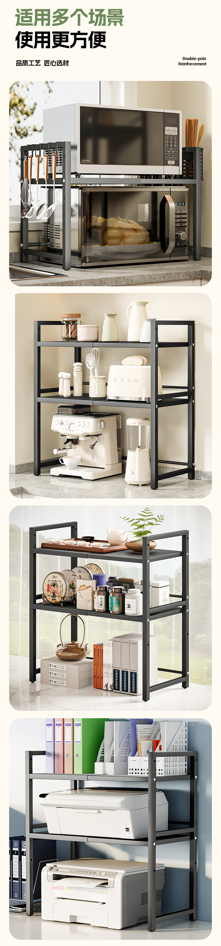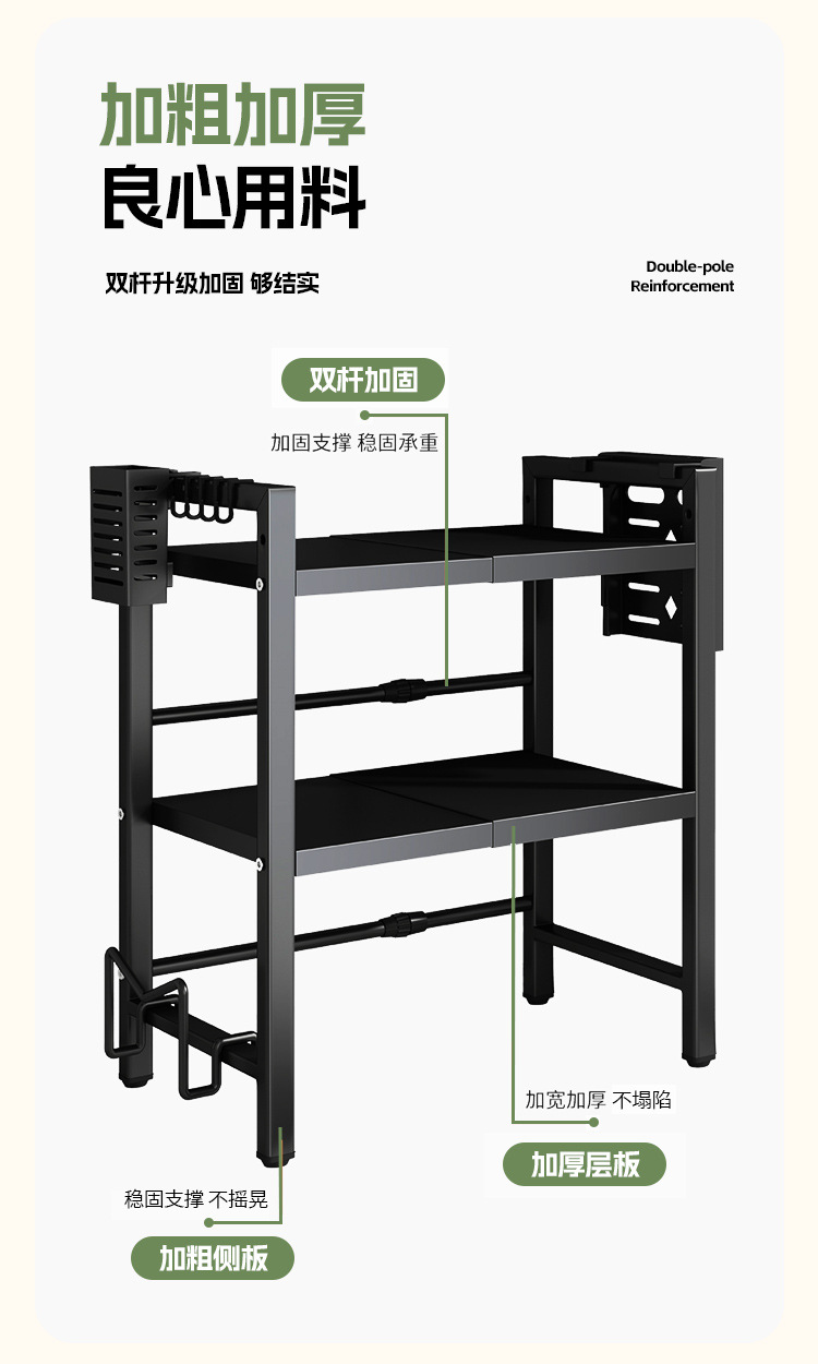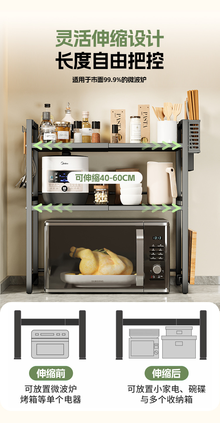 주방 수납 선반, 접이식 전자레인지 선반, 가정용 전기밥솥, 이중 레이어 조리대, 무타공, 해외배송