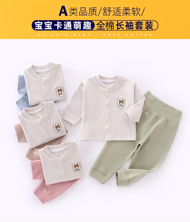 아동 속옷 세트, 순면, 남아용 하이웨이스트 가을 옷과 긴 바지, 순면, 남아용 잠옷, 아동용 면 스웨터 잠옷