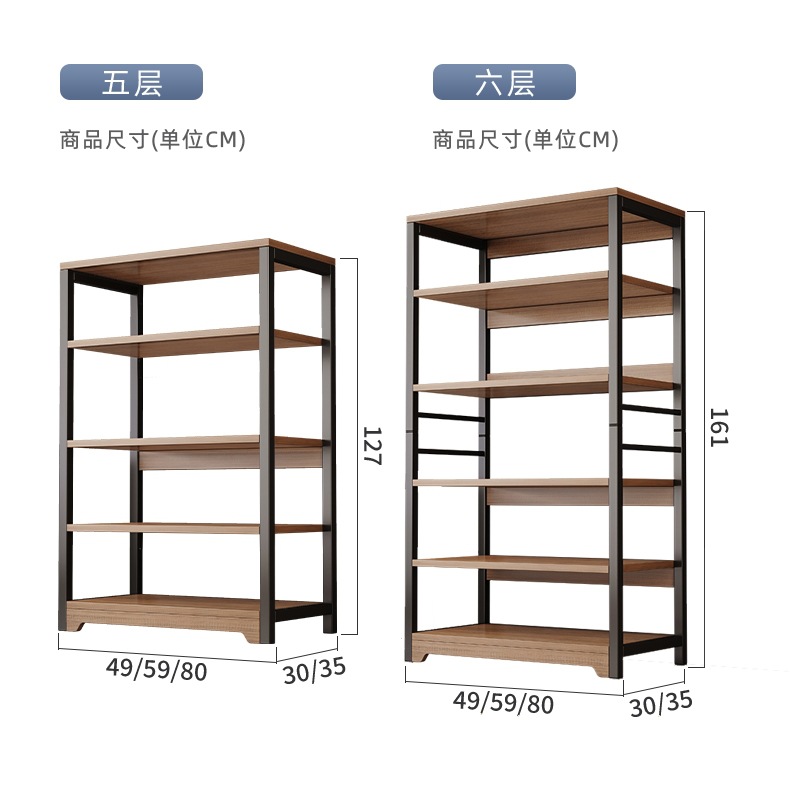 [굵게 두껍게] 5단 59X30X127cm 블랙오크 컬러 + 블랙 프레임, 안정적인 후면 풀 플레이트