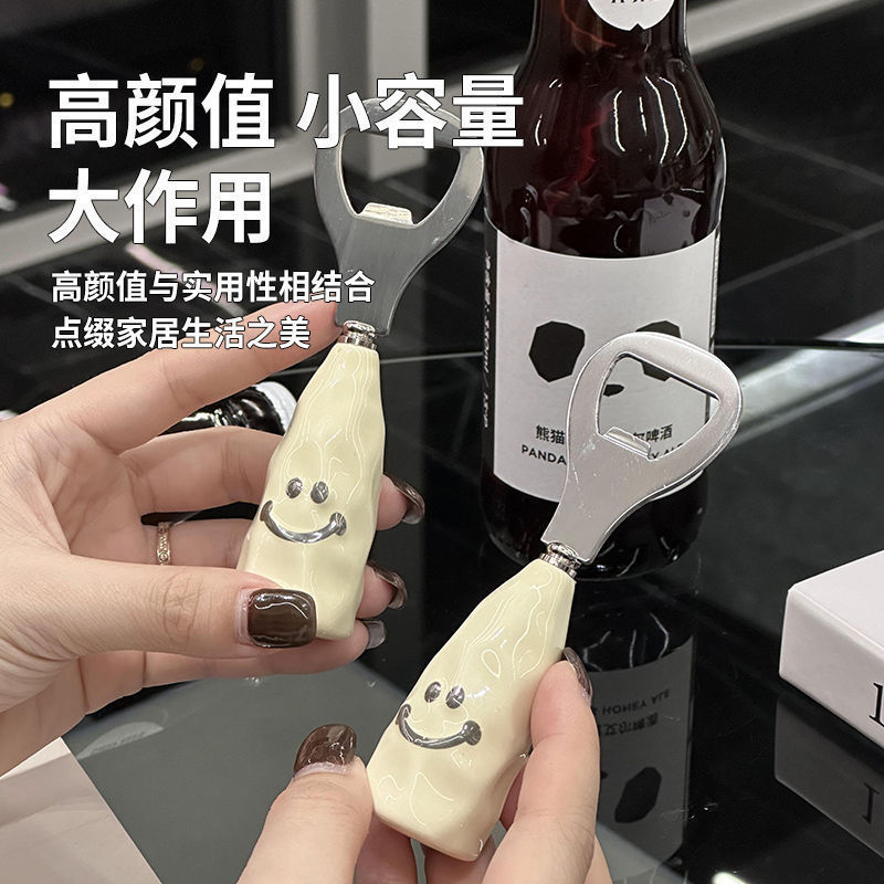 귀여운 웃는 얼굴 맥주 병따개, 스탠드형 와인 오프너, 가정용 창의적인 스테인리스 캡 오프너