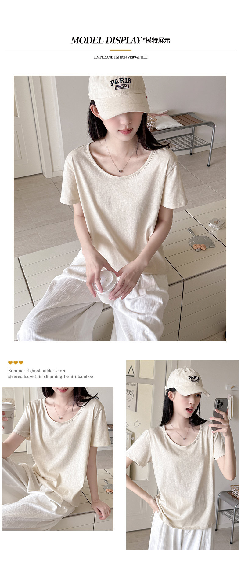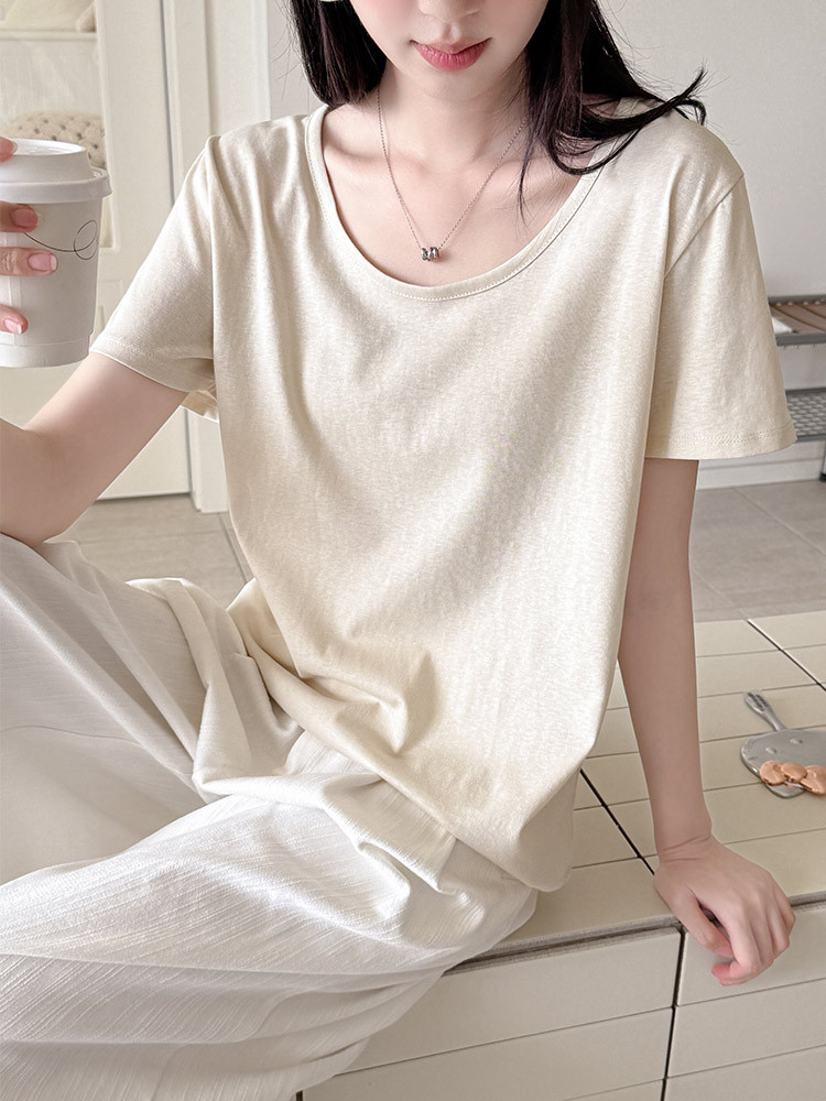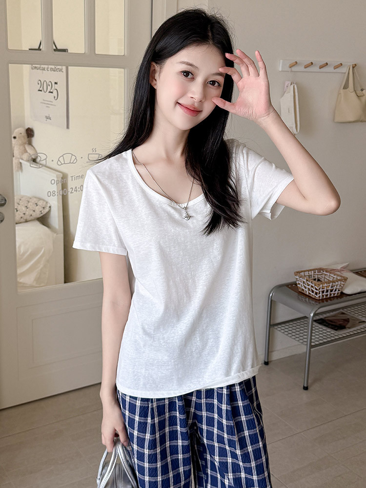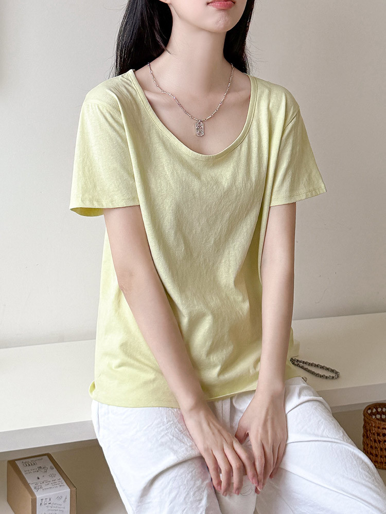 여름 여성용 아메리칸 스타일 오른쪽 어깨 반팔 티셔츠 여성용 새로운 스타일 U 넥 짧은 눈송이 코튼 바닥 셔츠 탑