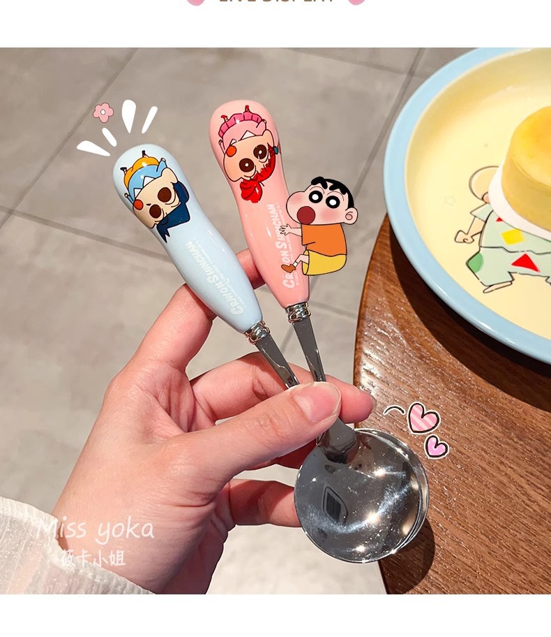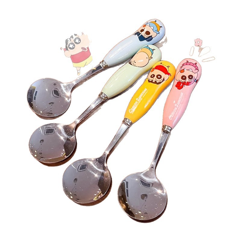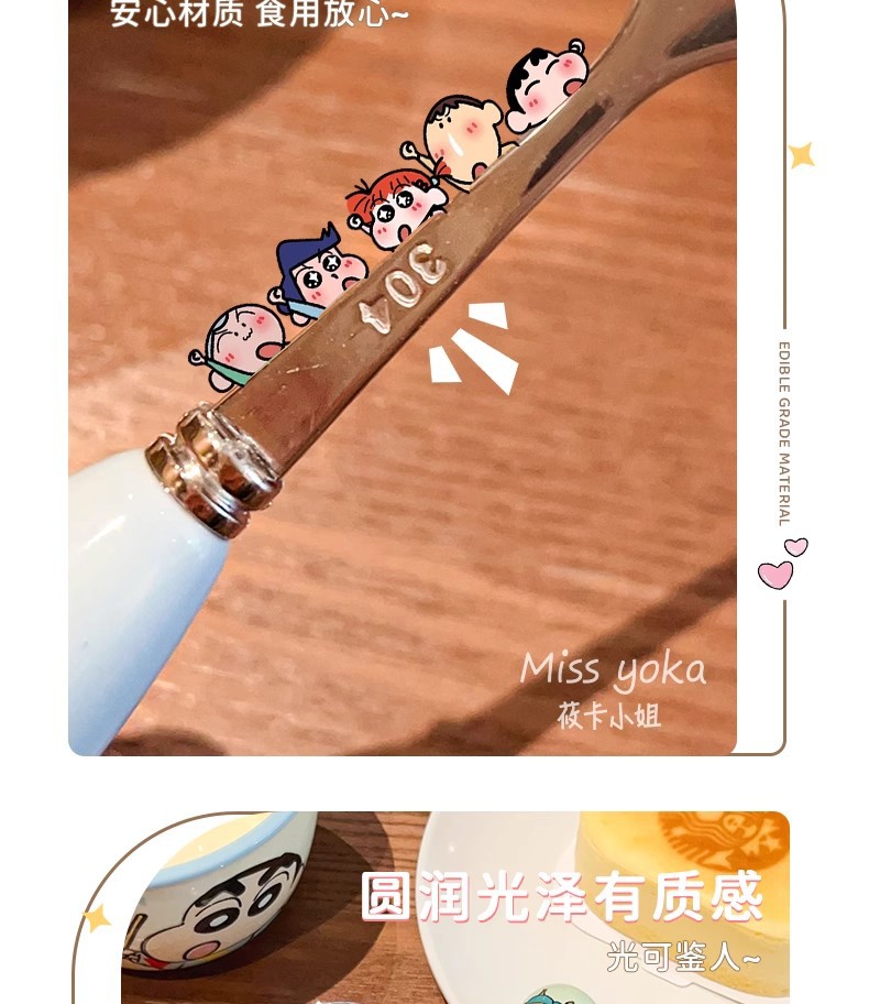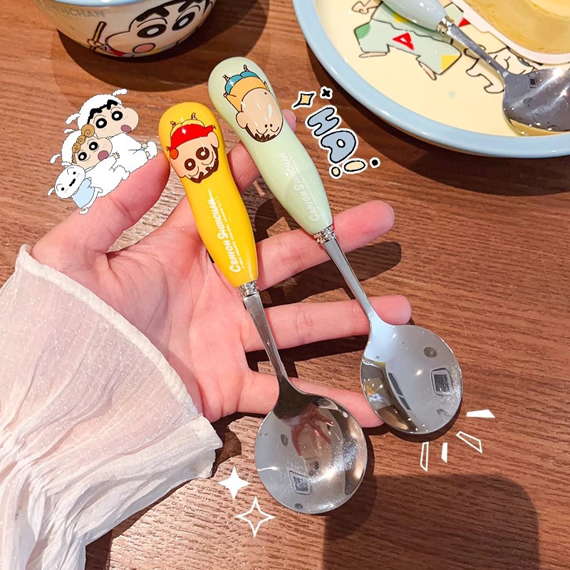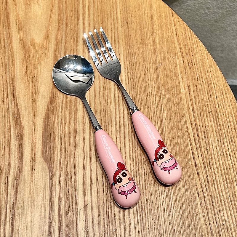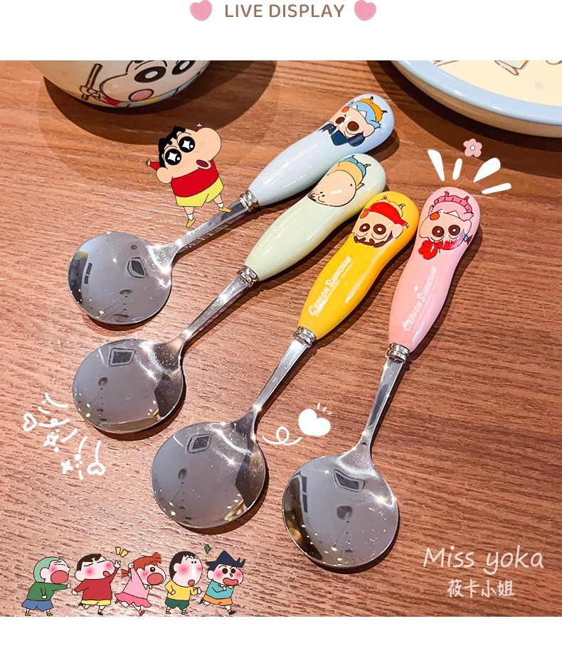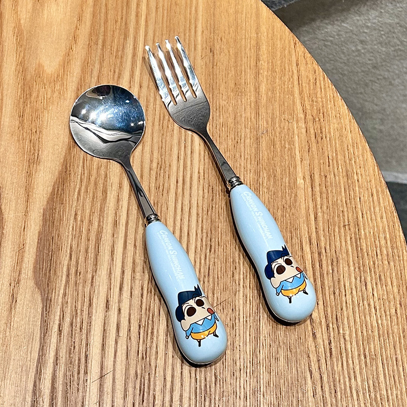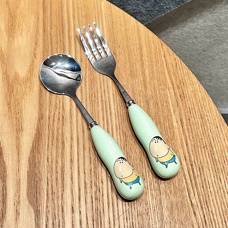 정품 크레용 신짱 어린이 세라믹 304 숟가락 젓가락 가정용 밥 숟가락 스테인레스 스틸 학생 휴대용 식기 상자