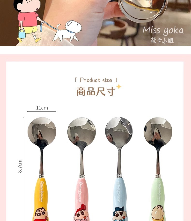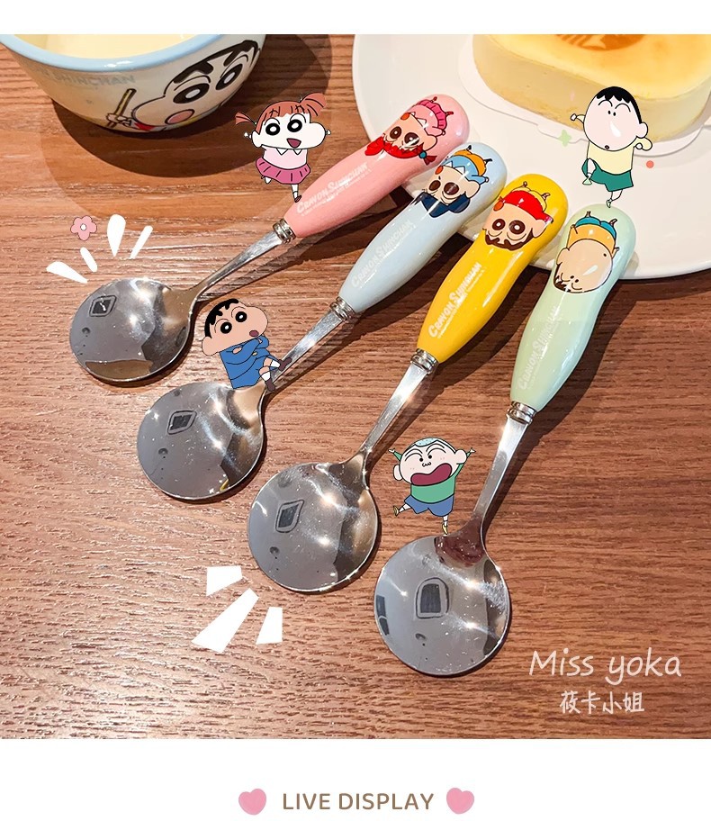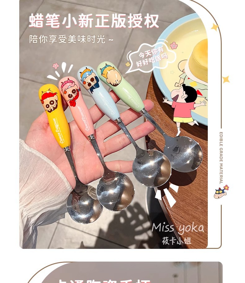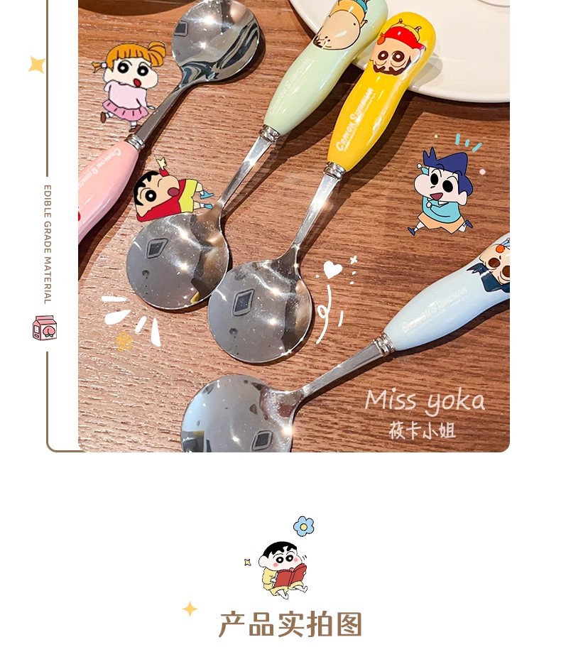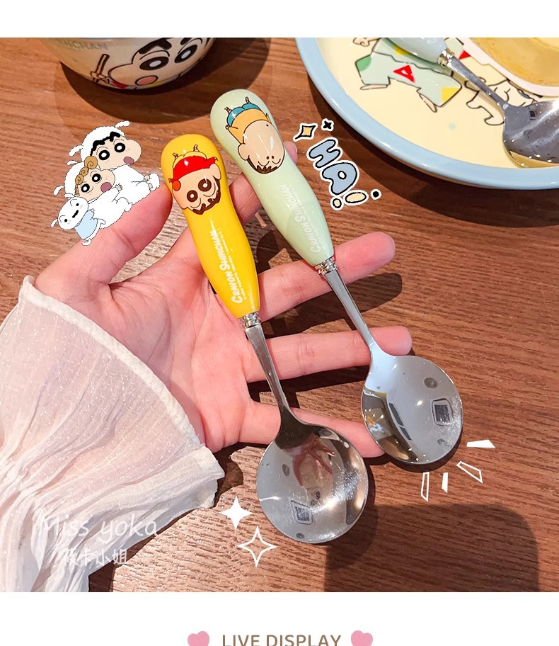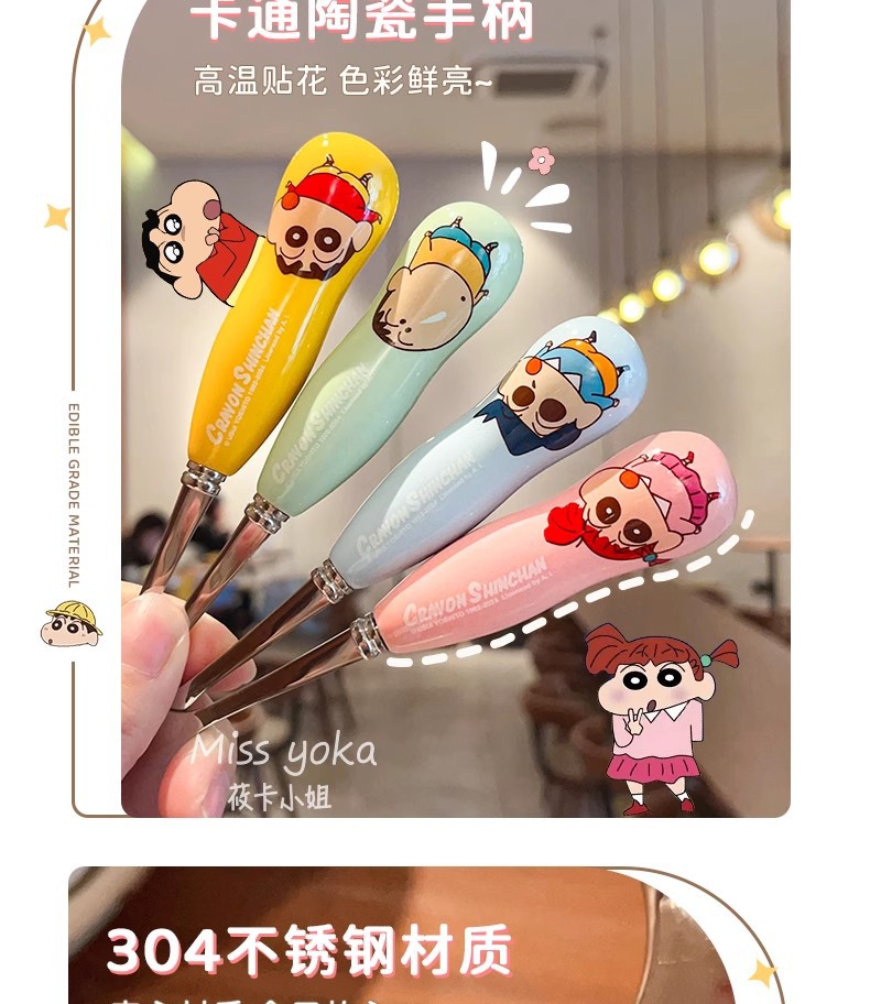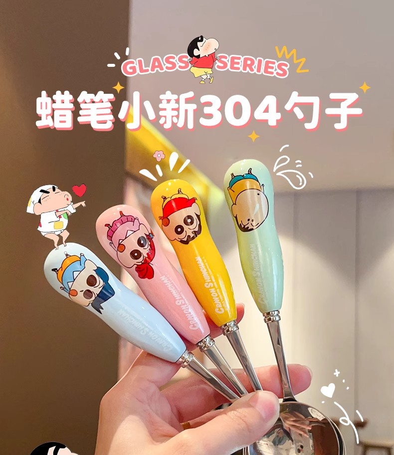 정품 크레용 신짱 어린이 세라믹 304 숟가락 젓가락 가정용 밥 숟가락 스테인레스 스틸 학생 휴대용 식기 상자