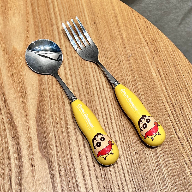 노란색 짱구 수저 세트 (수저 + 포크 + 304 스테인리스 젓가락)