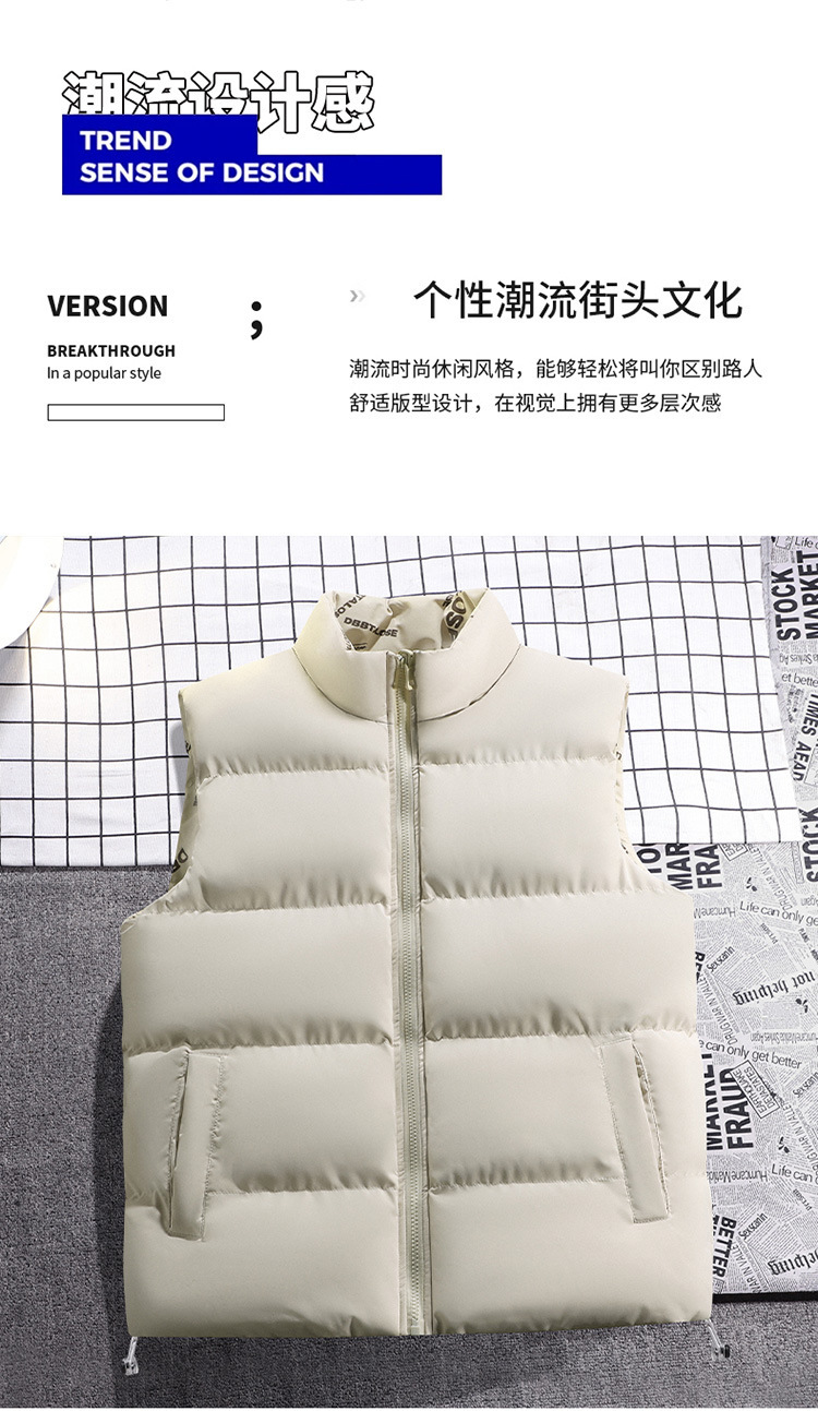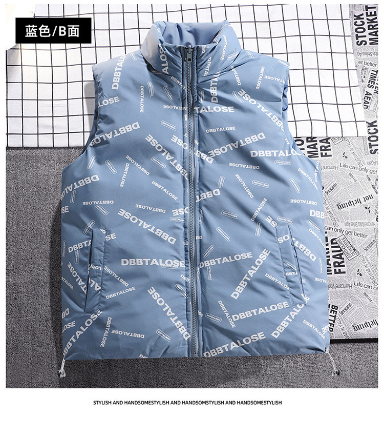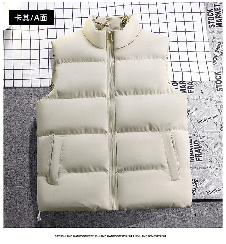 가을 겨울 남성용 양면 면 조끼, 스탠드 칼라, 따뜻한 조끼, 다운 면 조끼, 재킷, 남성용 상의