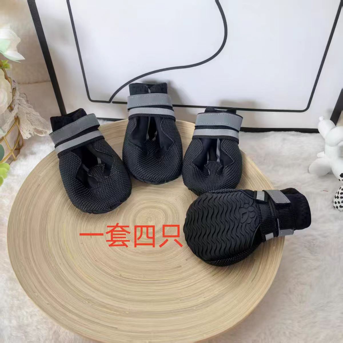 부드러운 밑창의 테디 프렌치불독 신발, 부드러운 밑창 신발 세트 4개, 비숑 프리즈 통기성 미끄럼 방지 애완동물 신발 커버, 통기성 미끄럼 방지