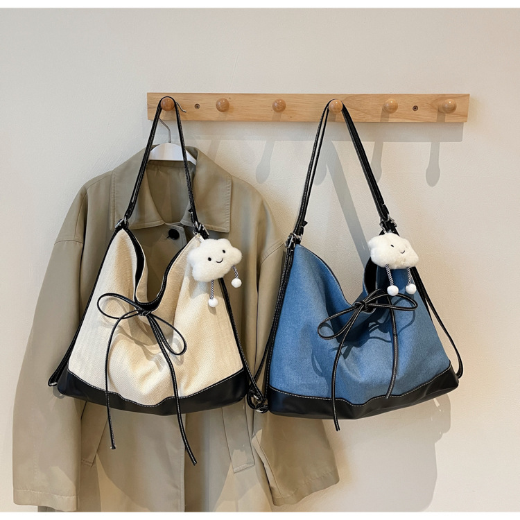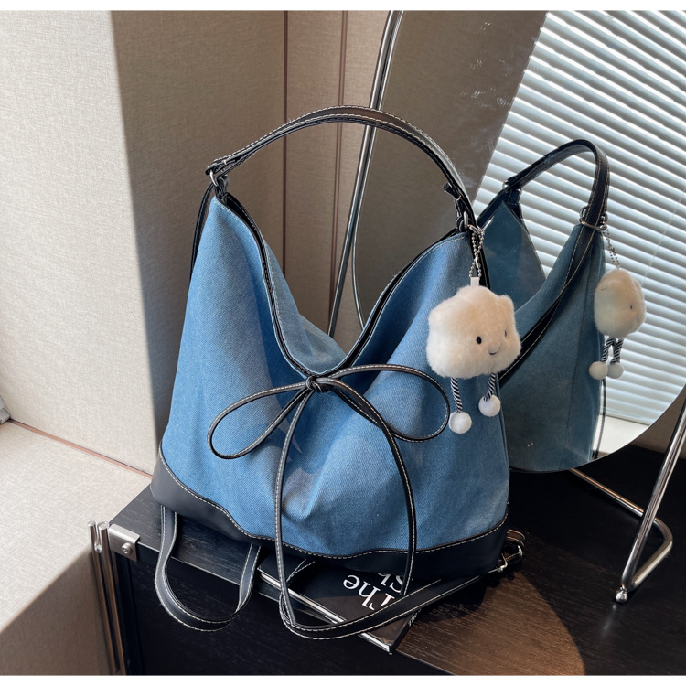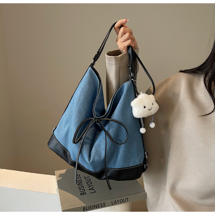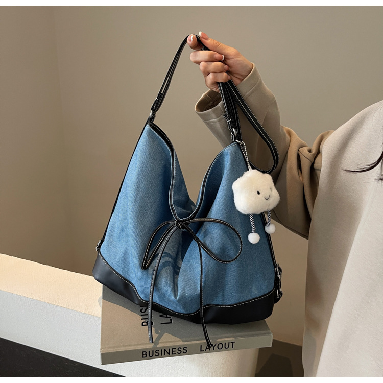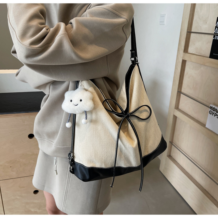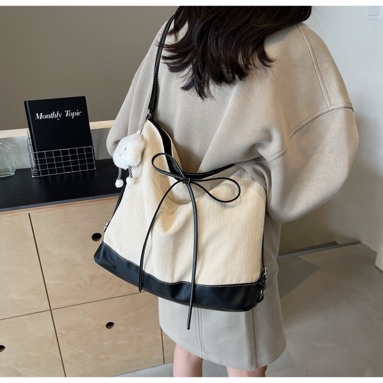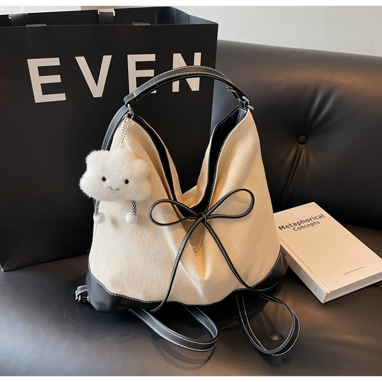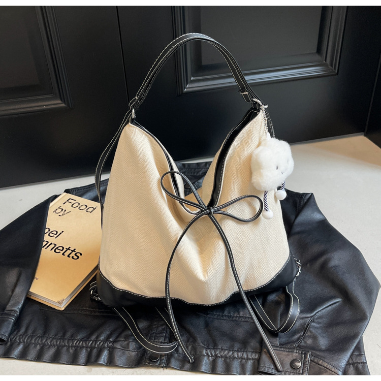 니치 디자인 토트백, 새로운 스타일의 심플한 리본, 출퇴근용 숄더 크로스백, 여성용 다용도 백팩