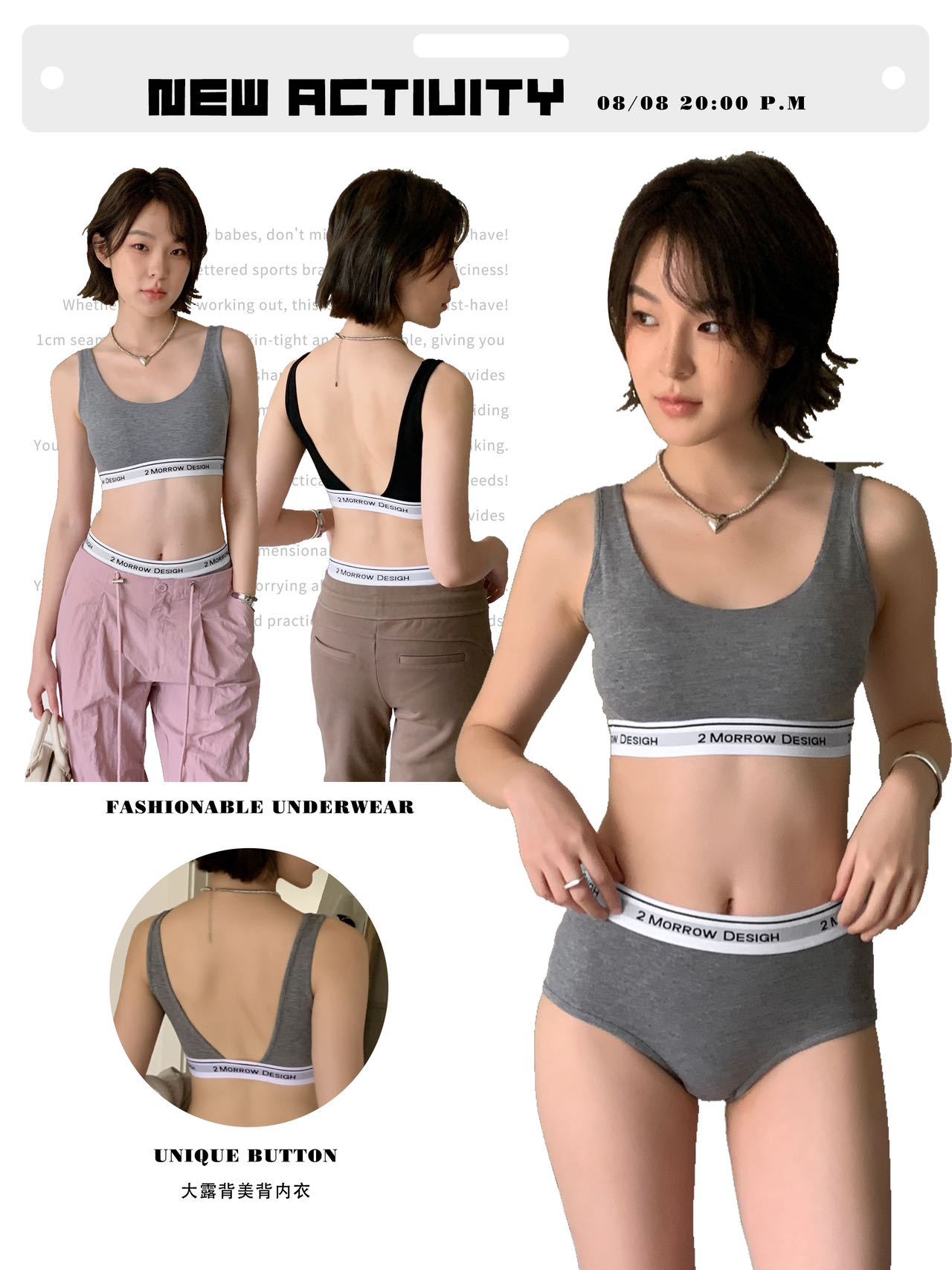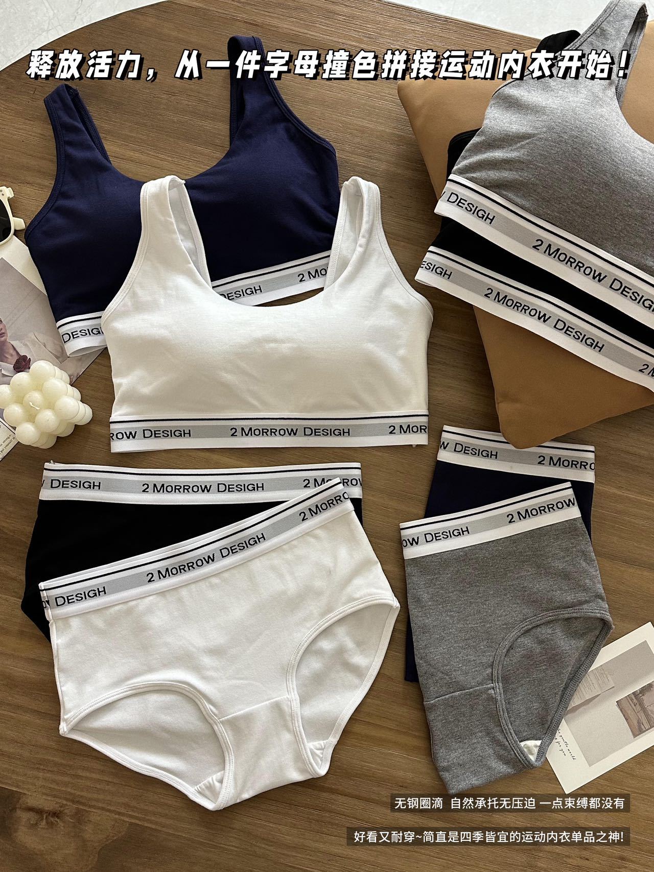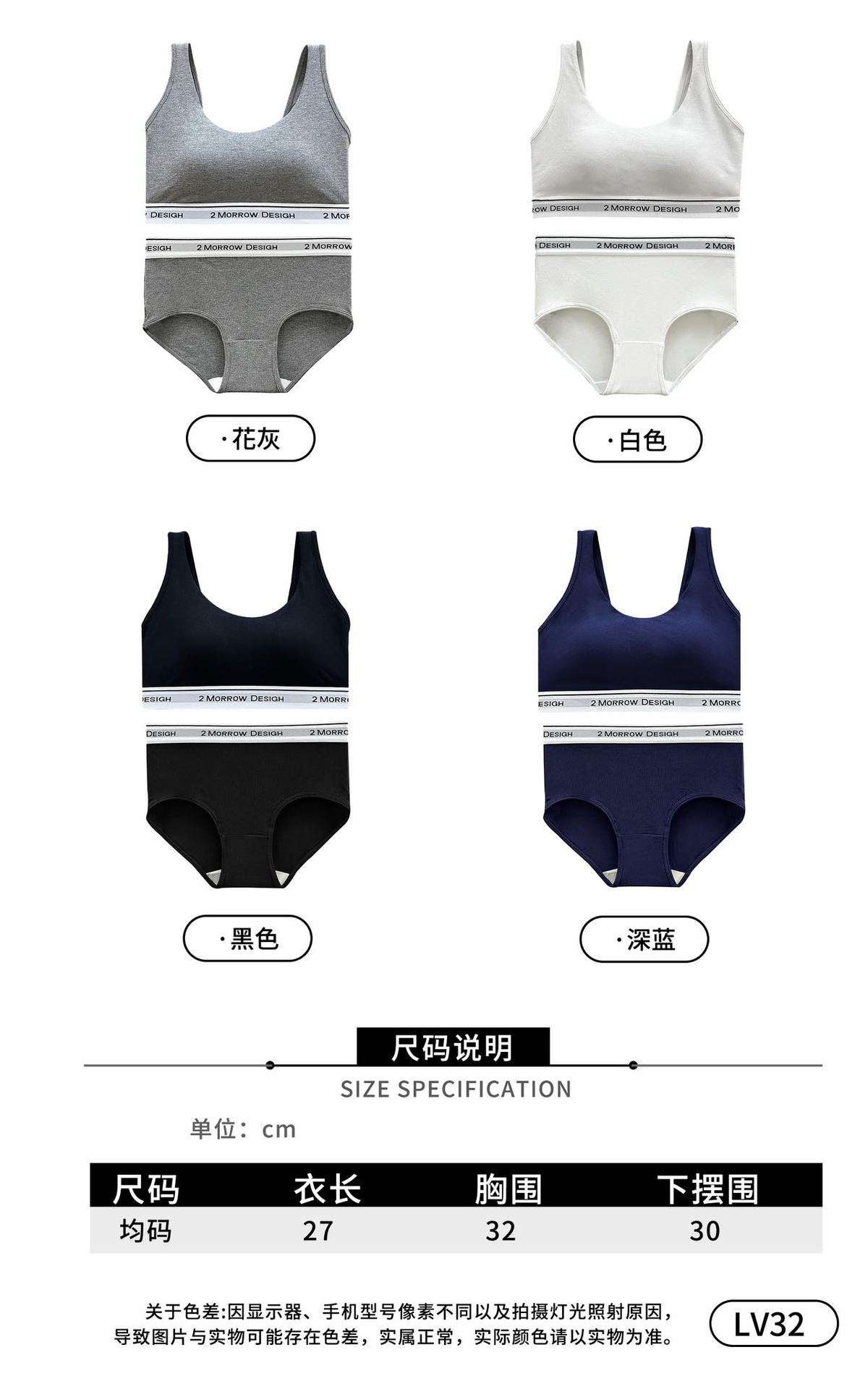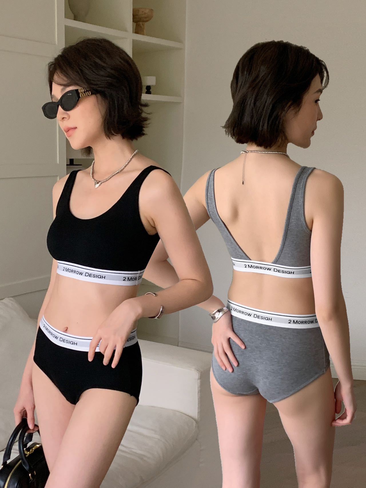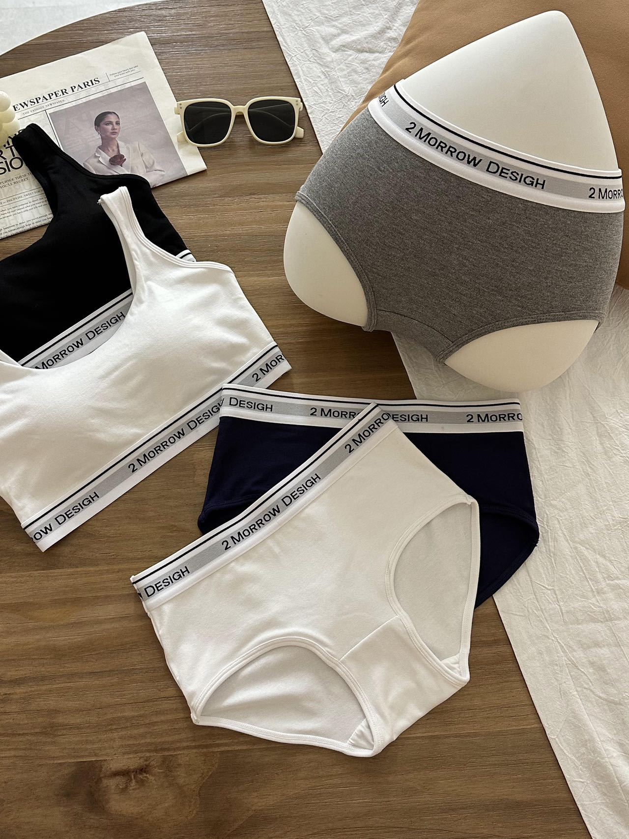 LV32 문자 바닥 대비 색상 클래식 디자인 스포츠 브라 대형 백리스 통기성 패브릭 브라 세트 팬티