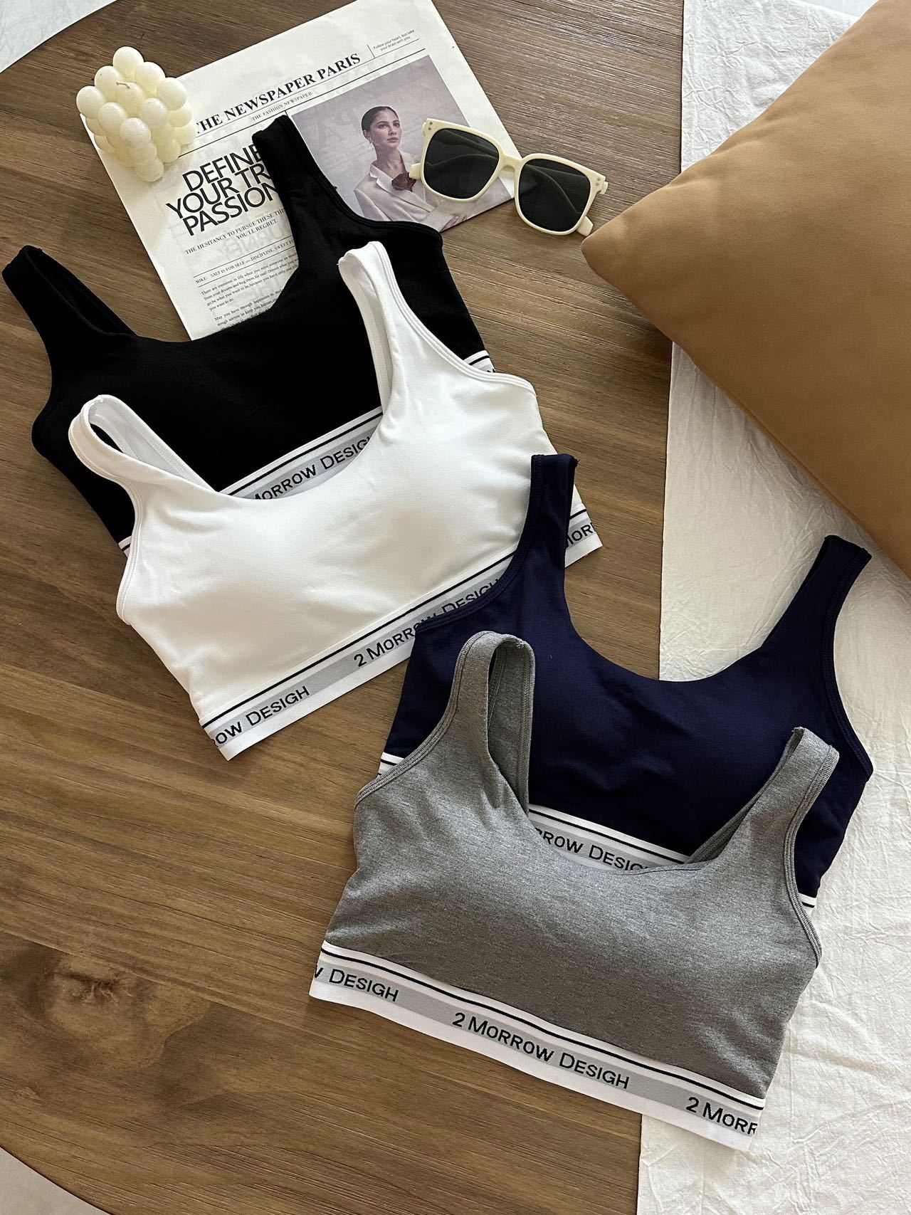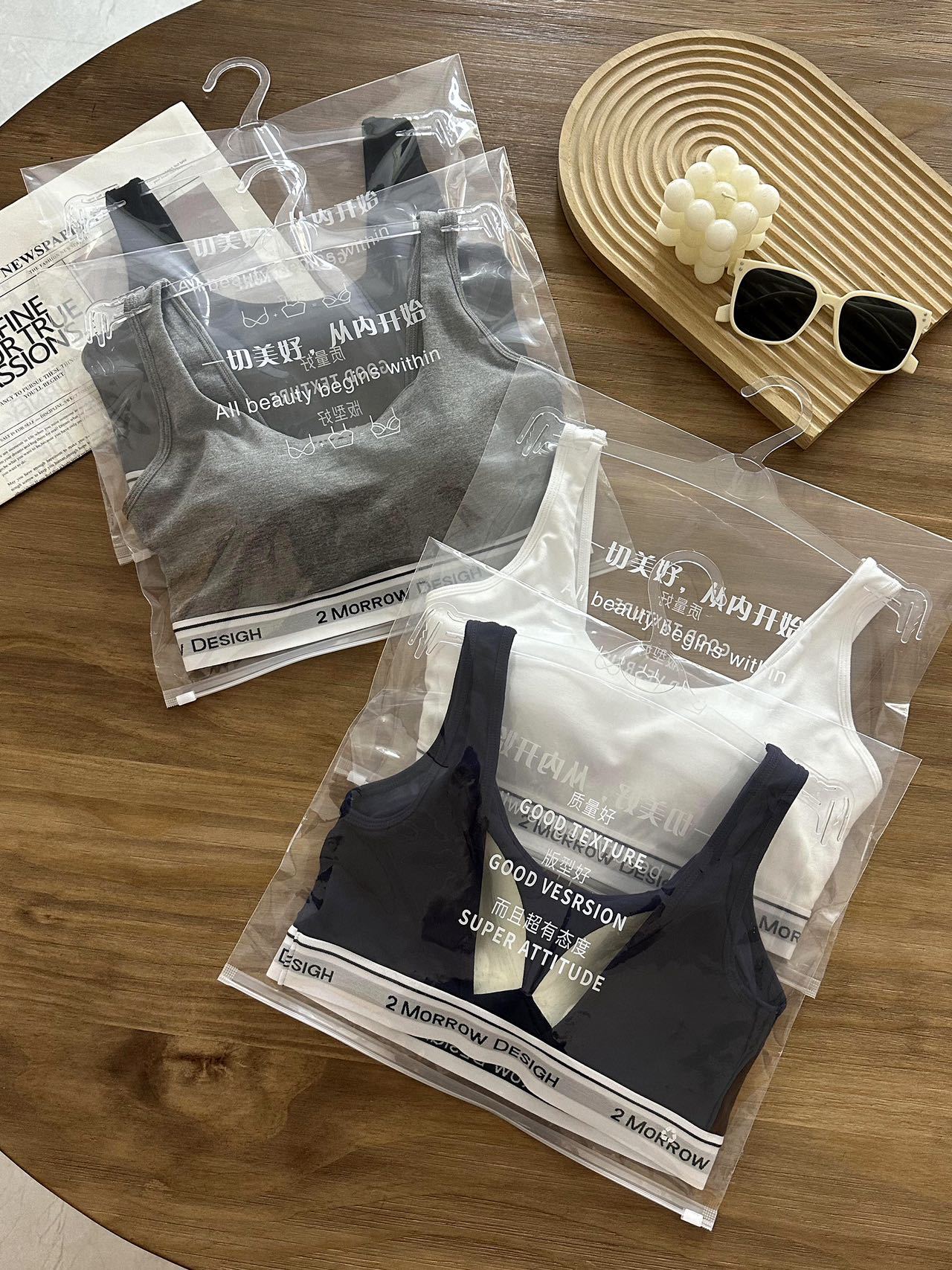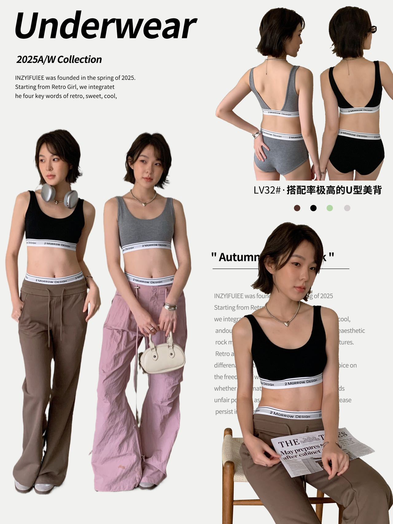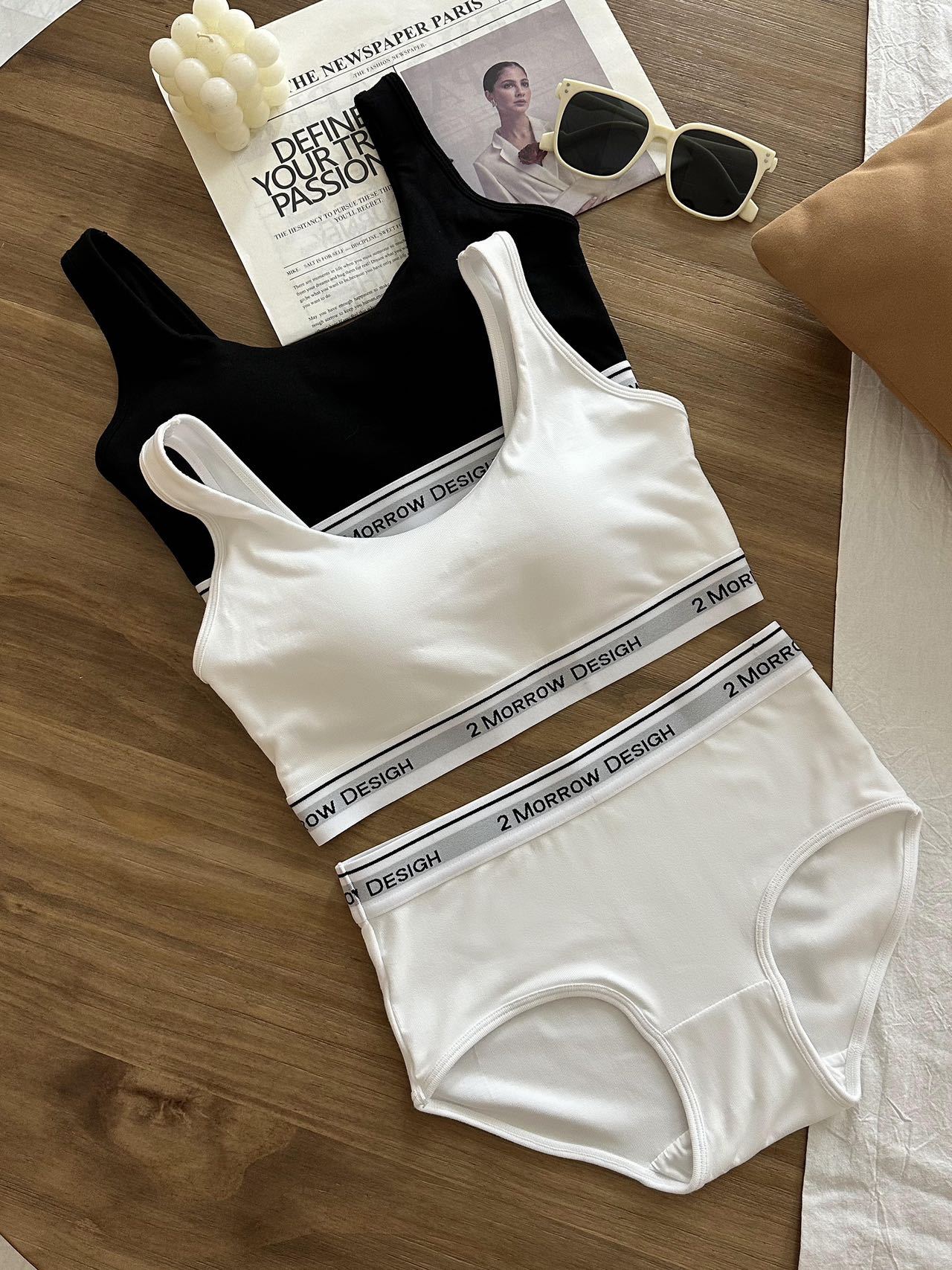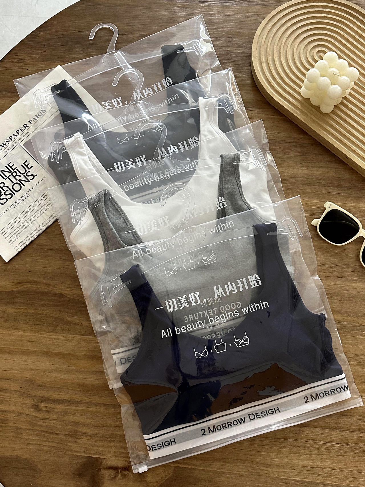 LV32 문자 바닥 대비 색상 클래식 디자인 스포츠 브라 대형 백리스 통기성 패브릭 브라 세트 팬티