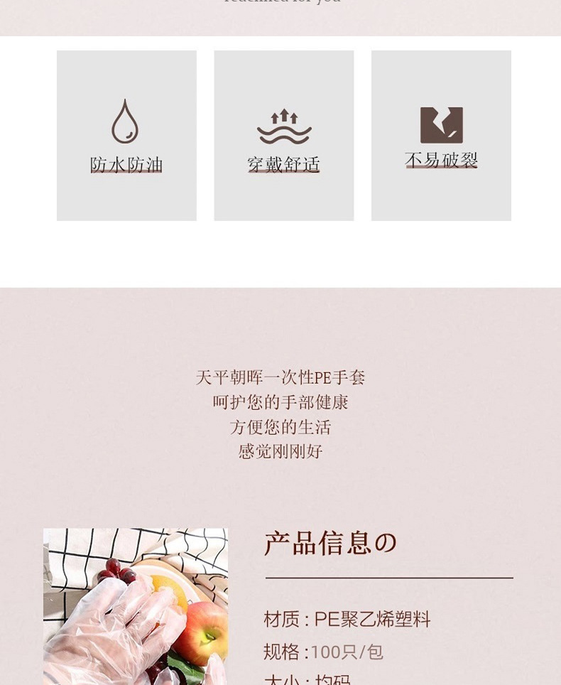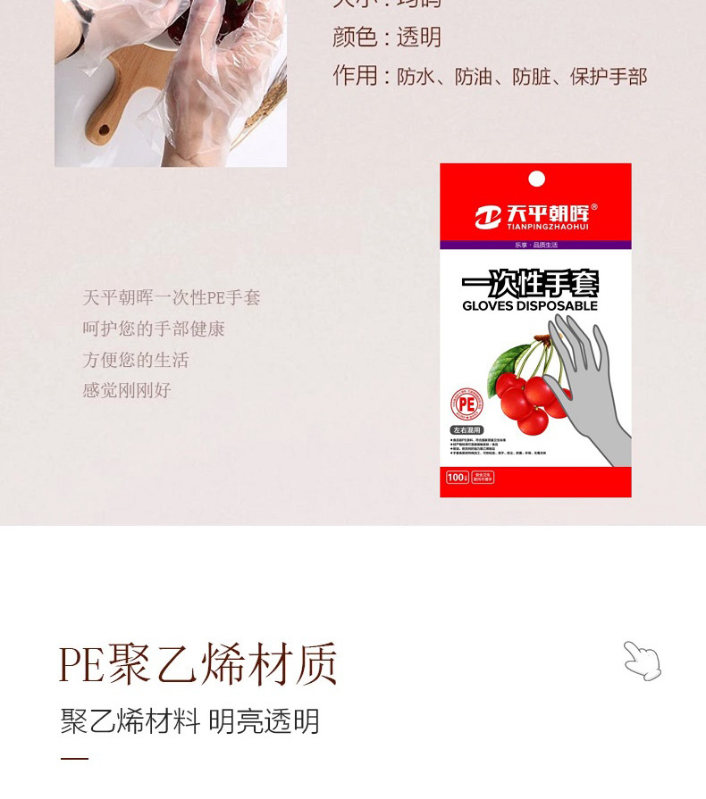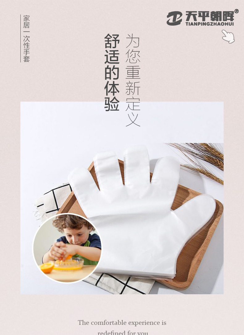 Tianping Chaohui PE 일회용 장갑 식품 등급 테이크 아웃 케이터링 뽀송뽀송 두꺼운 공장 도매